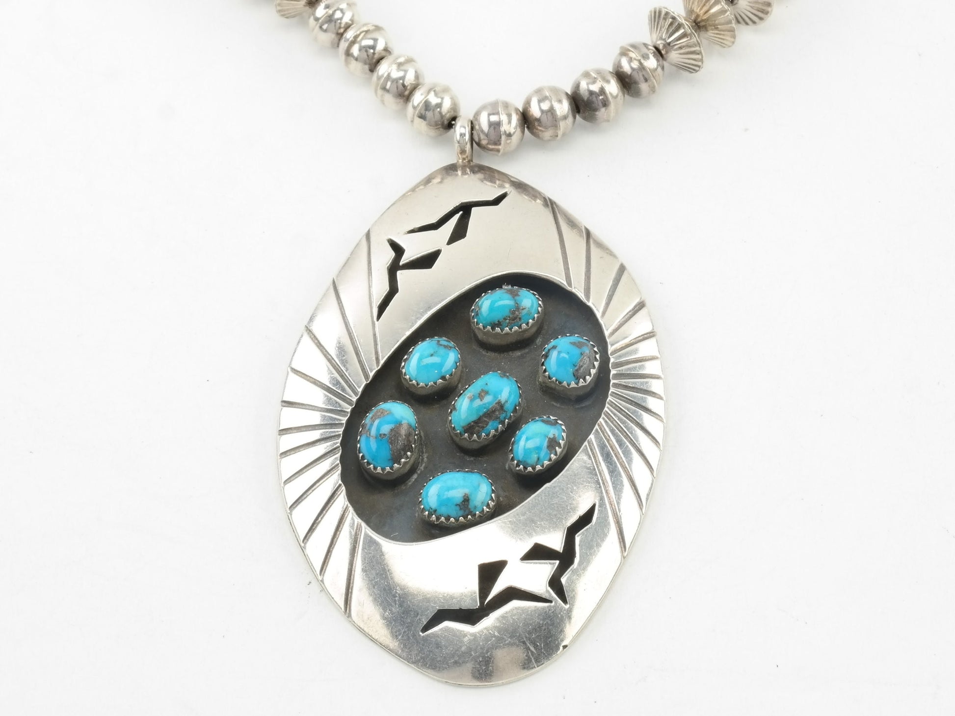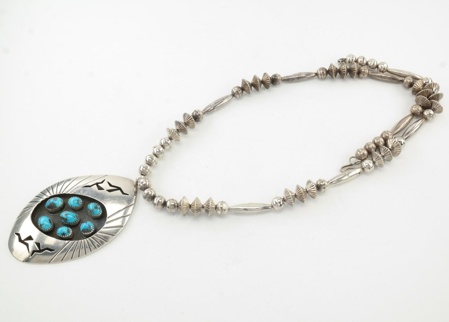 Vintage Native American Sterling Silver Turquoise Cluster Shadowbox Navajo Beads Necklace