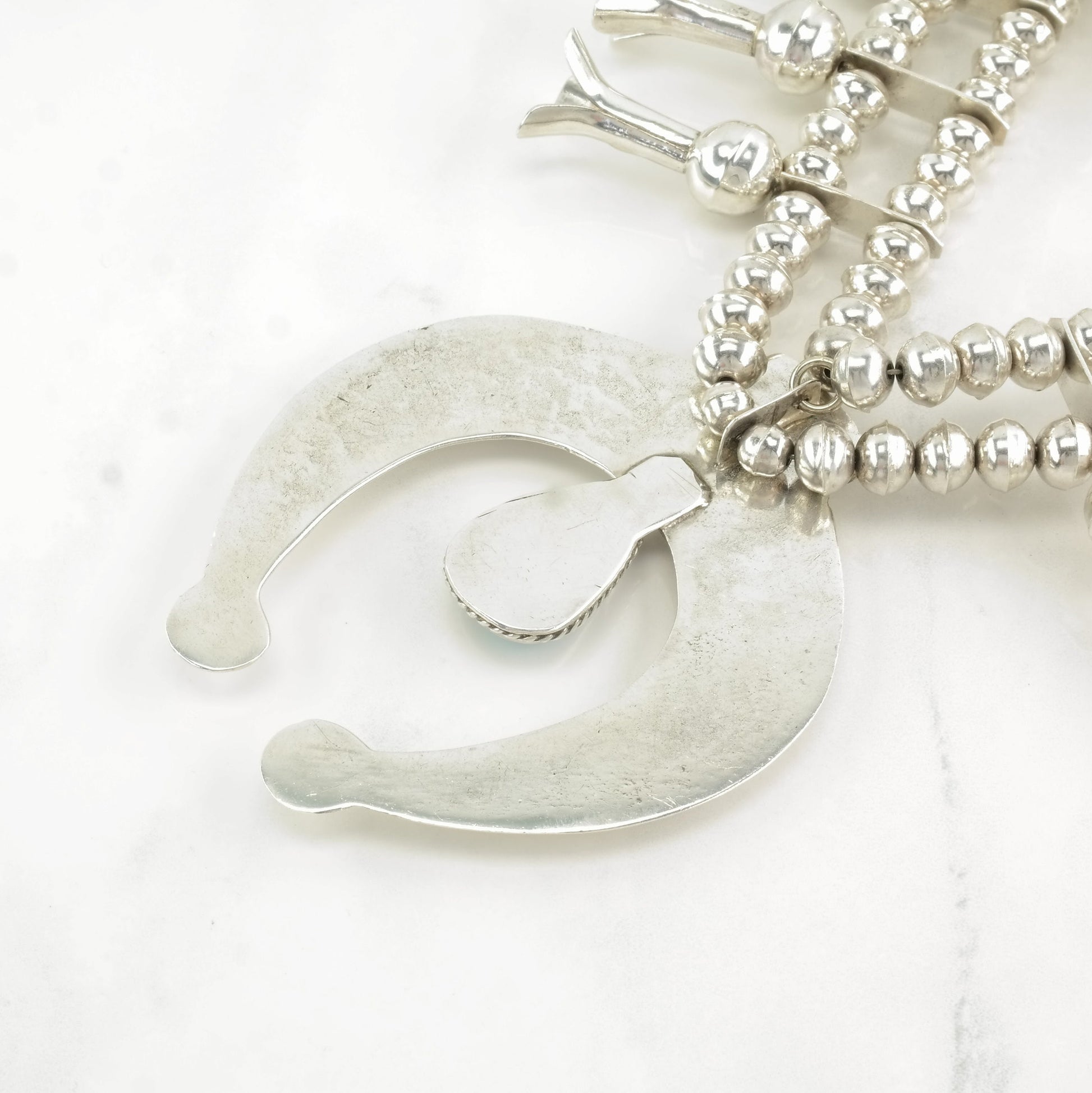 Vintage Native American Sterling Silver Turquoise Squash Blossom Necklace