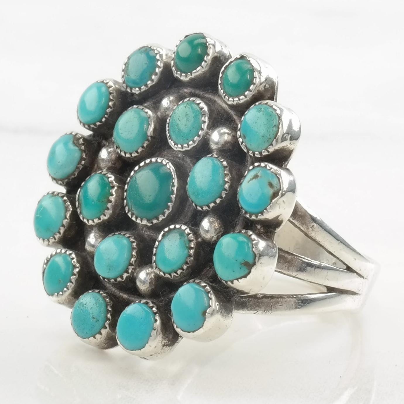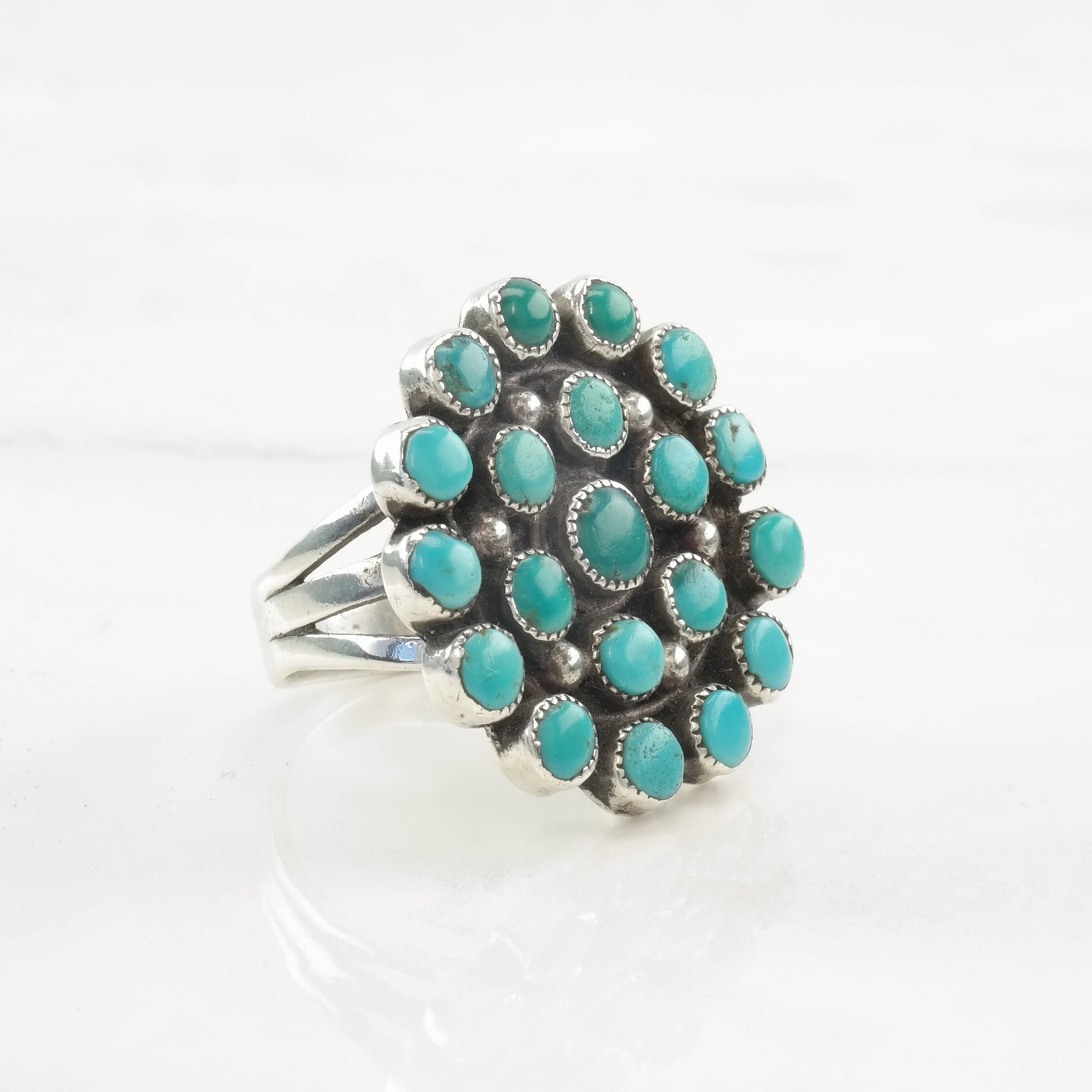 Vintage Native American Turquoise Cluster Ring, Sterling Silver, Size 8 1/2, Circa 1970s