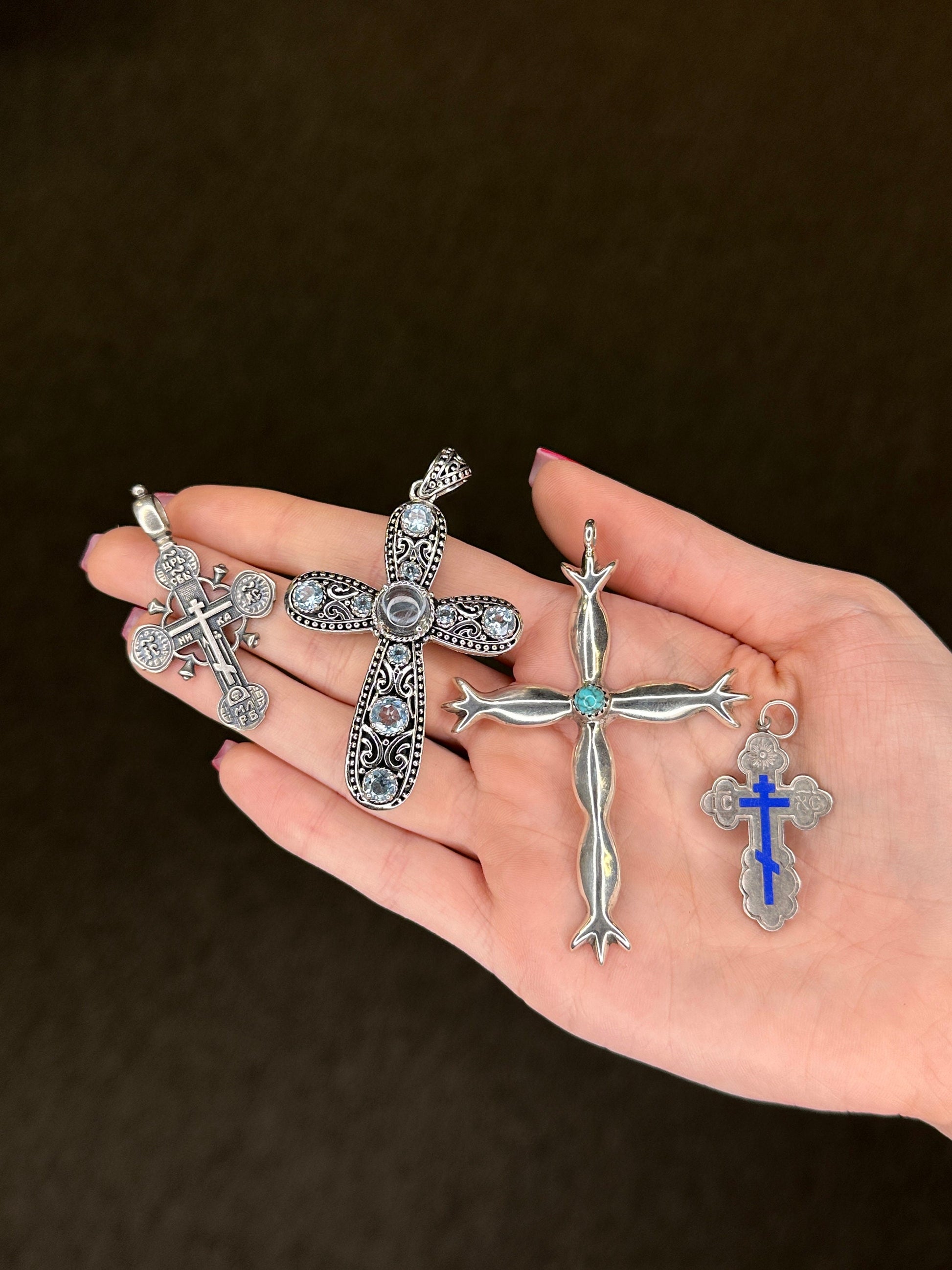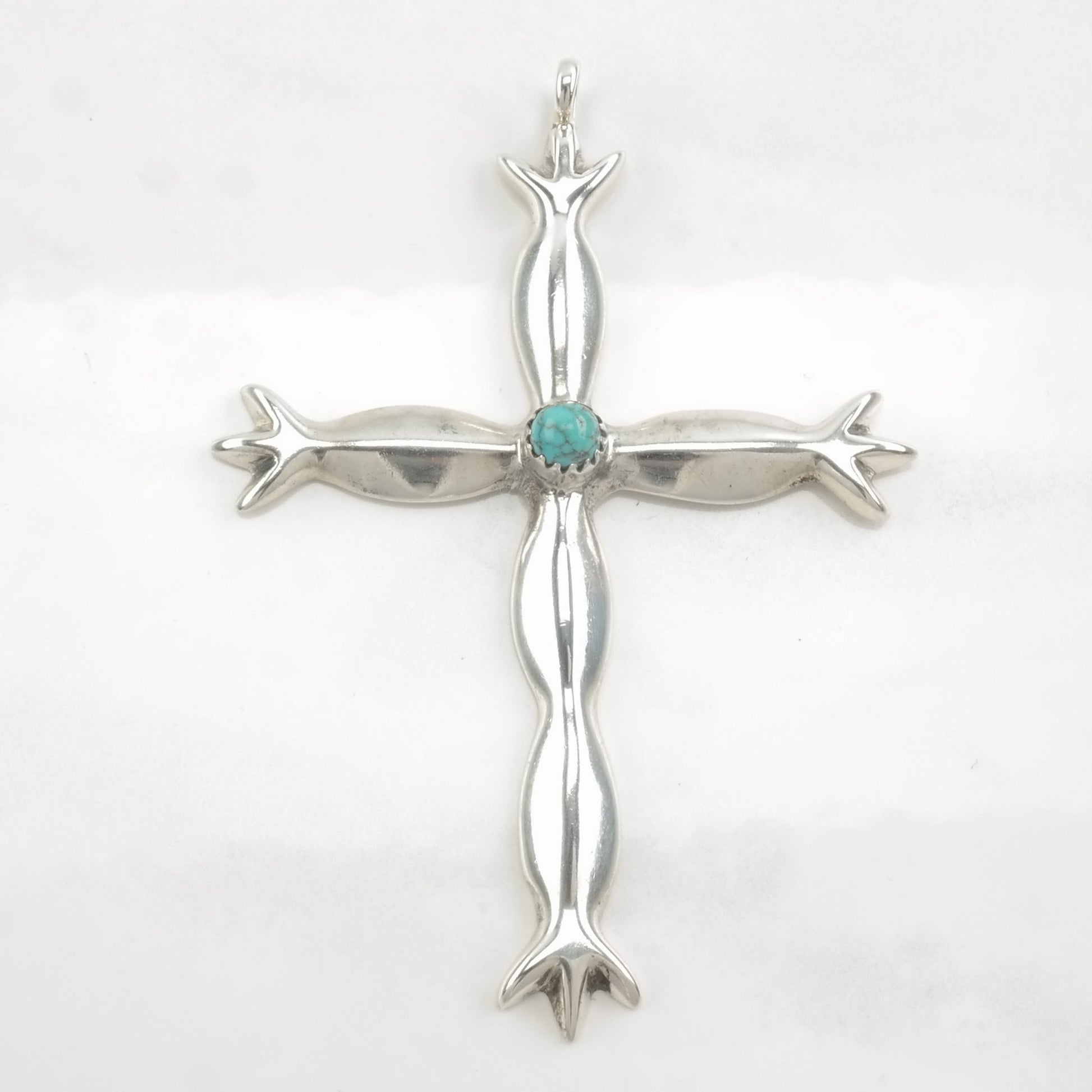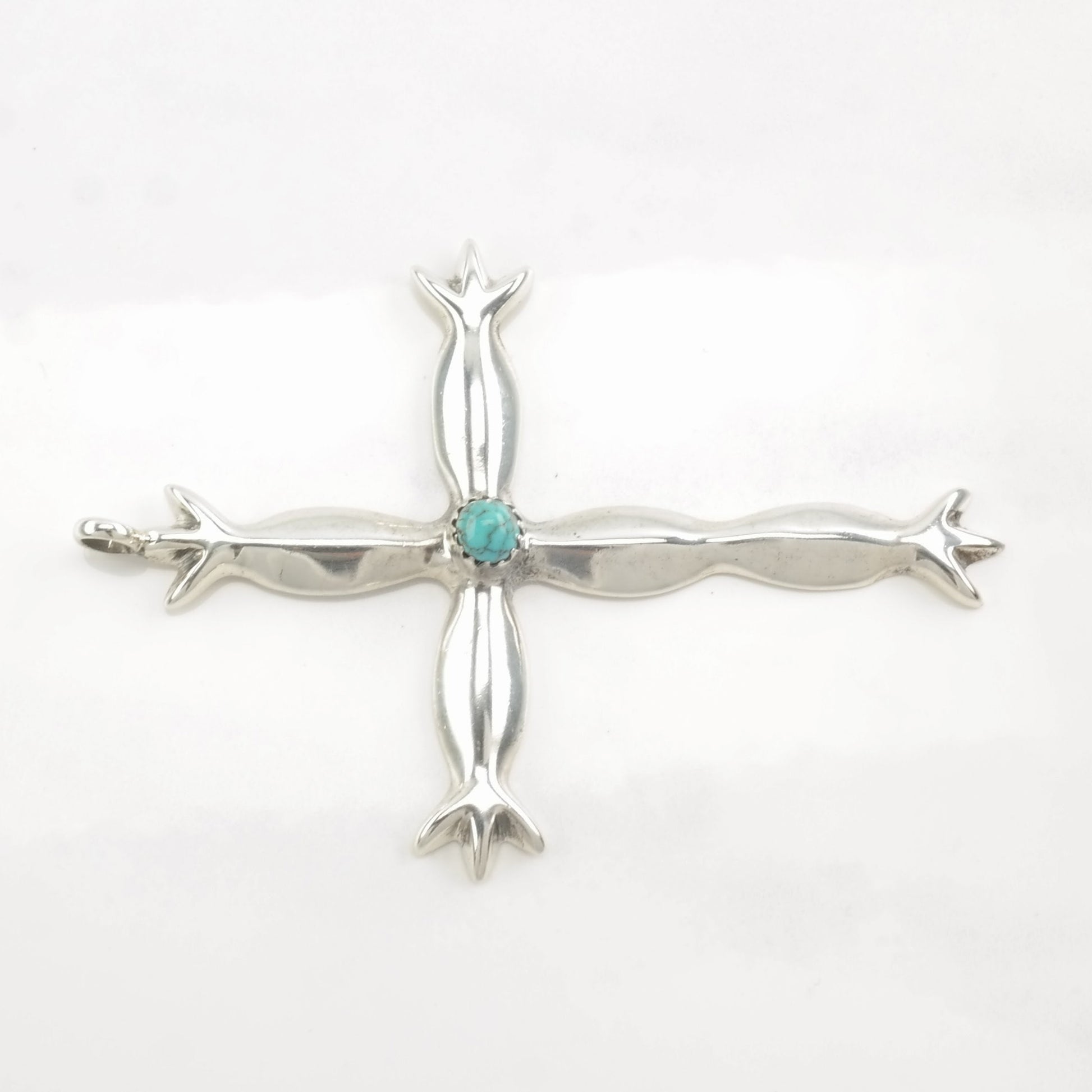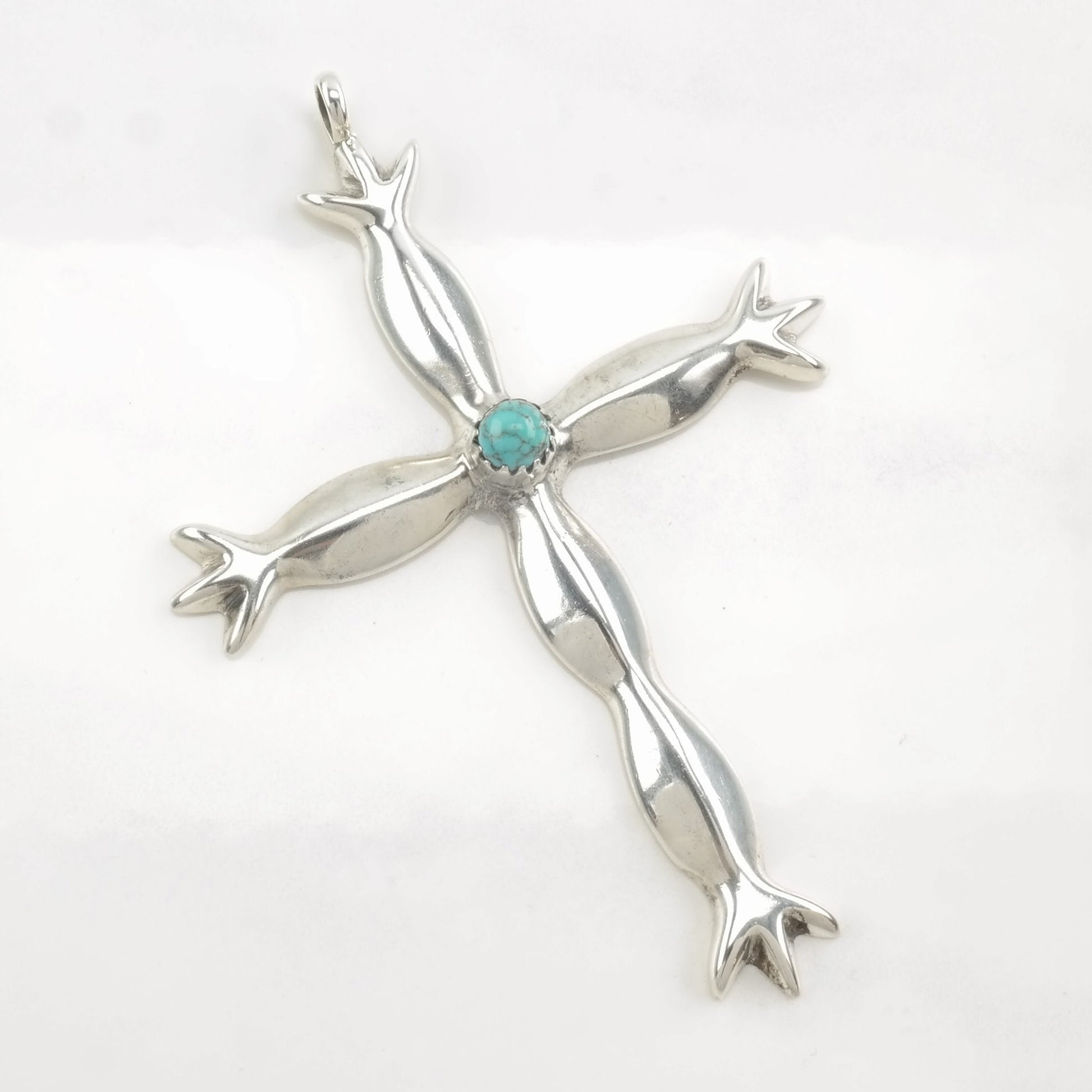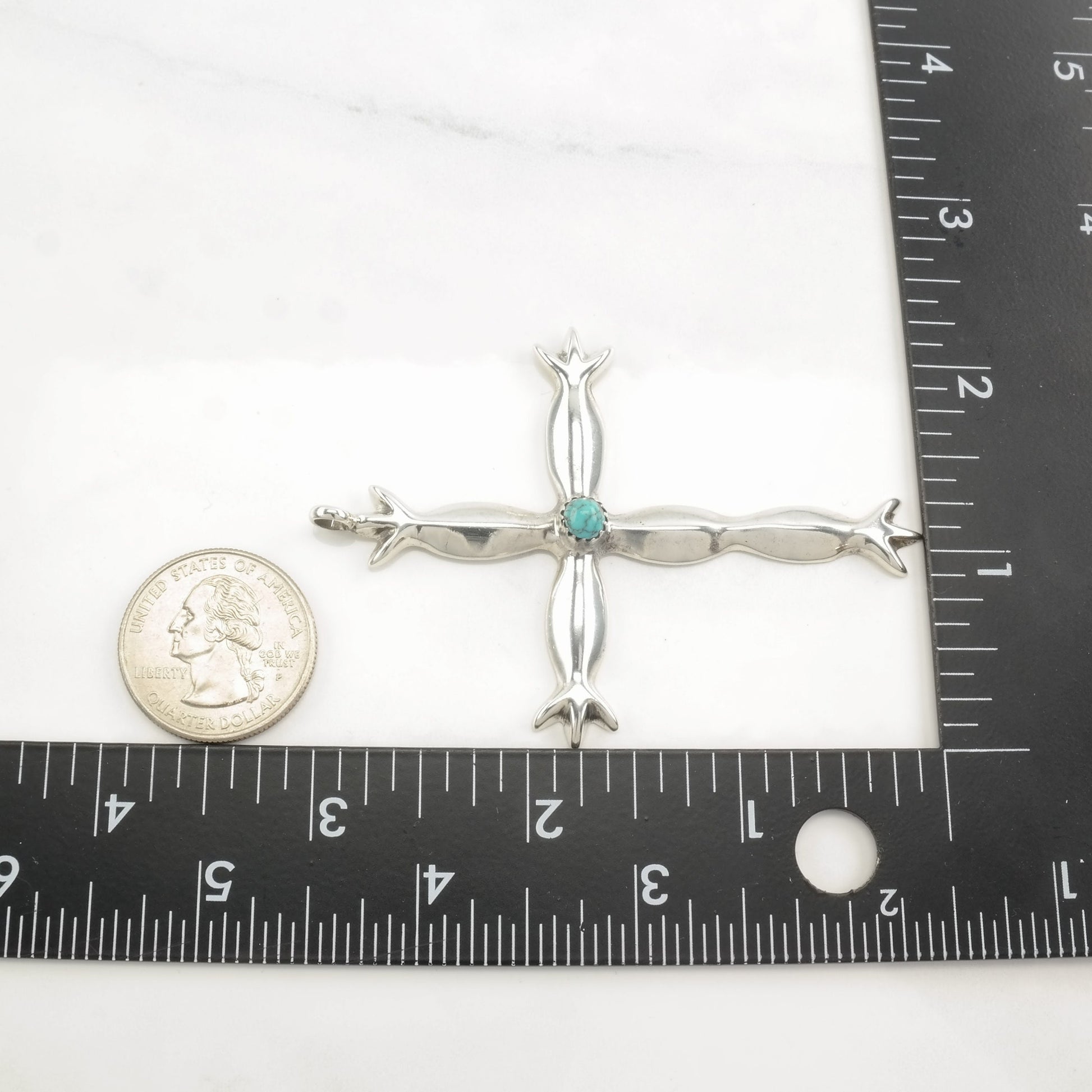 Vintage Native American Turquoise Cross Sterling Silver Pendant