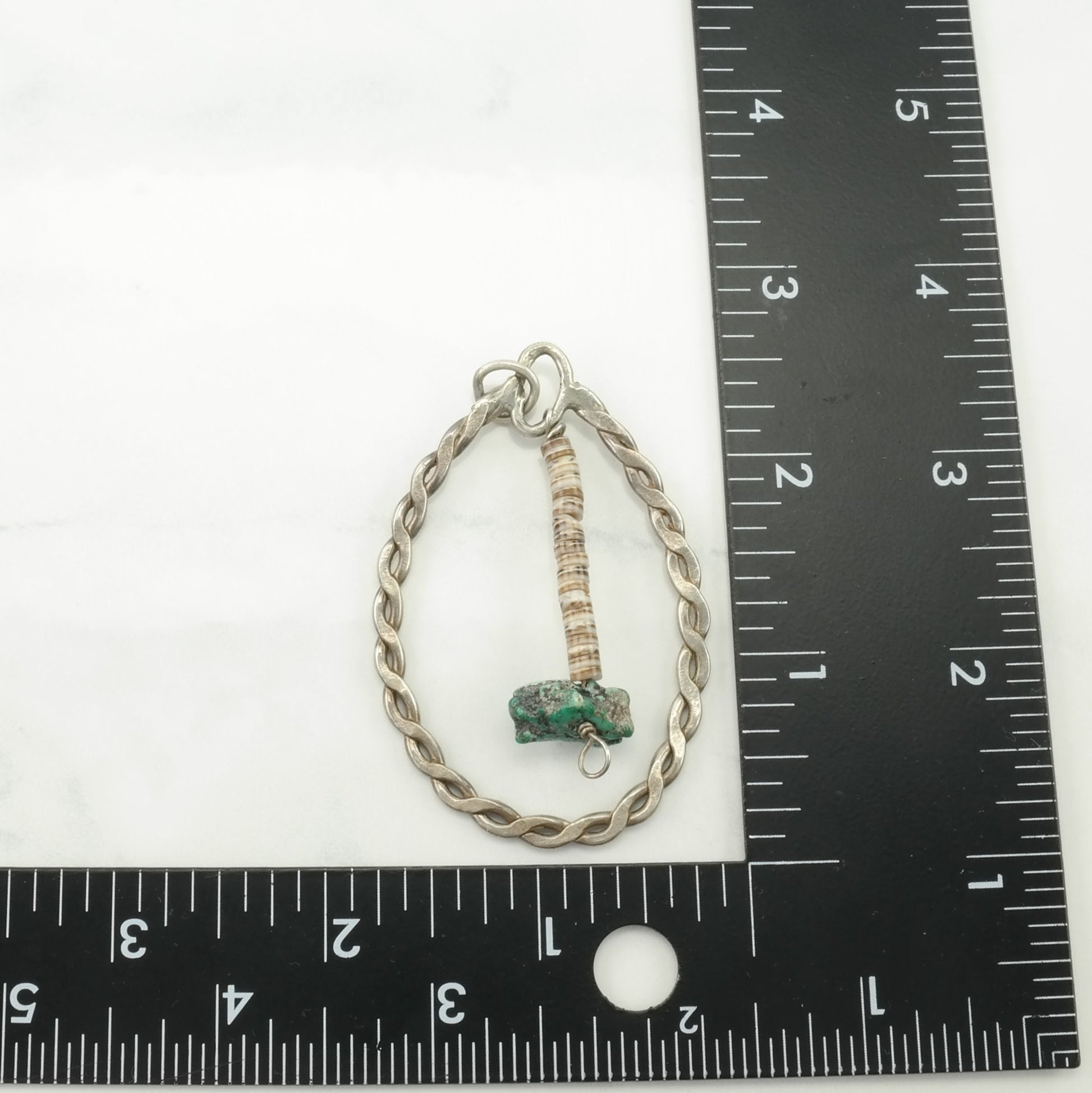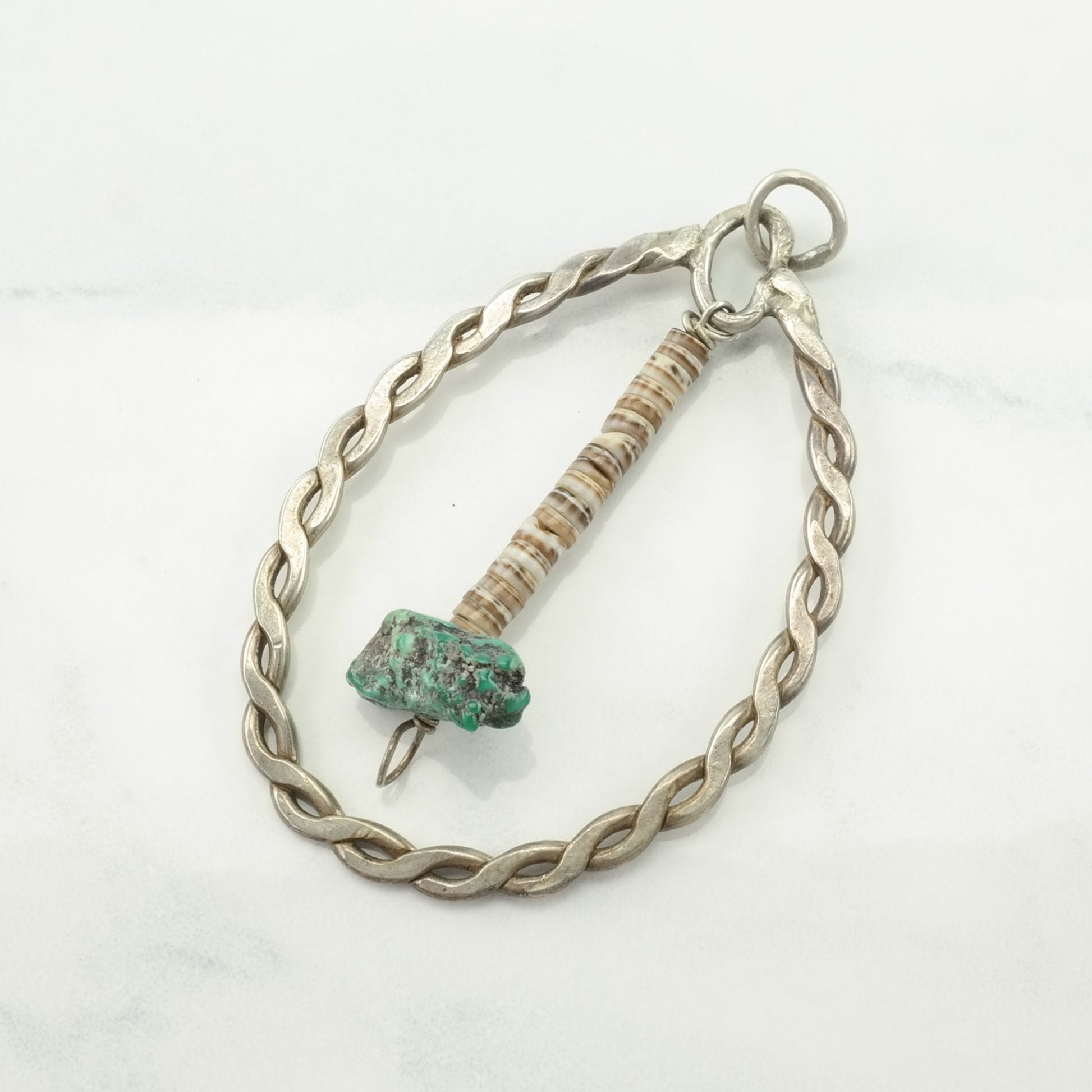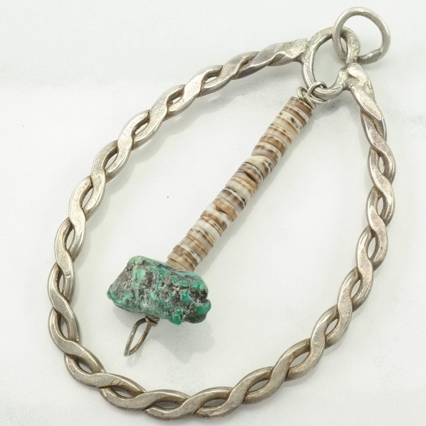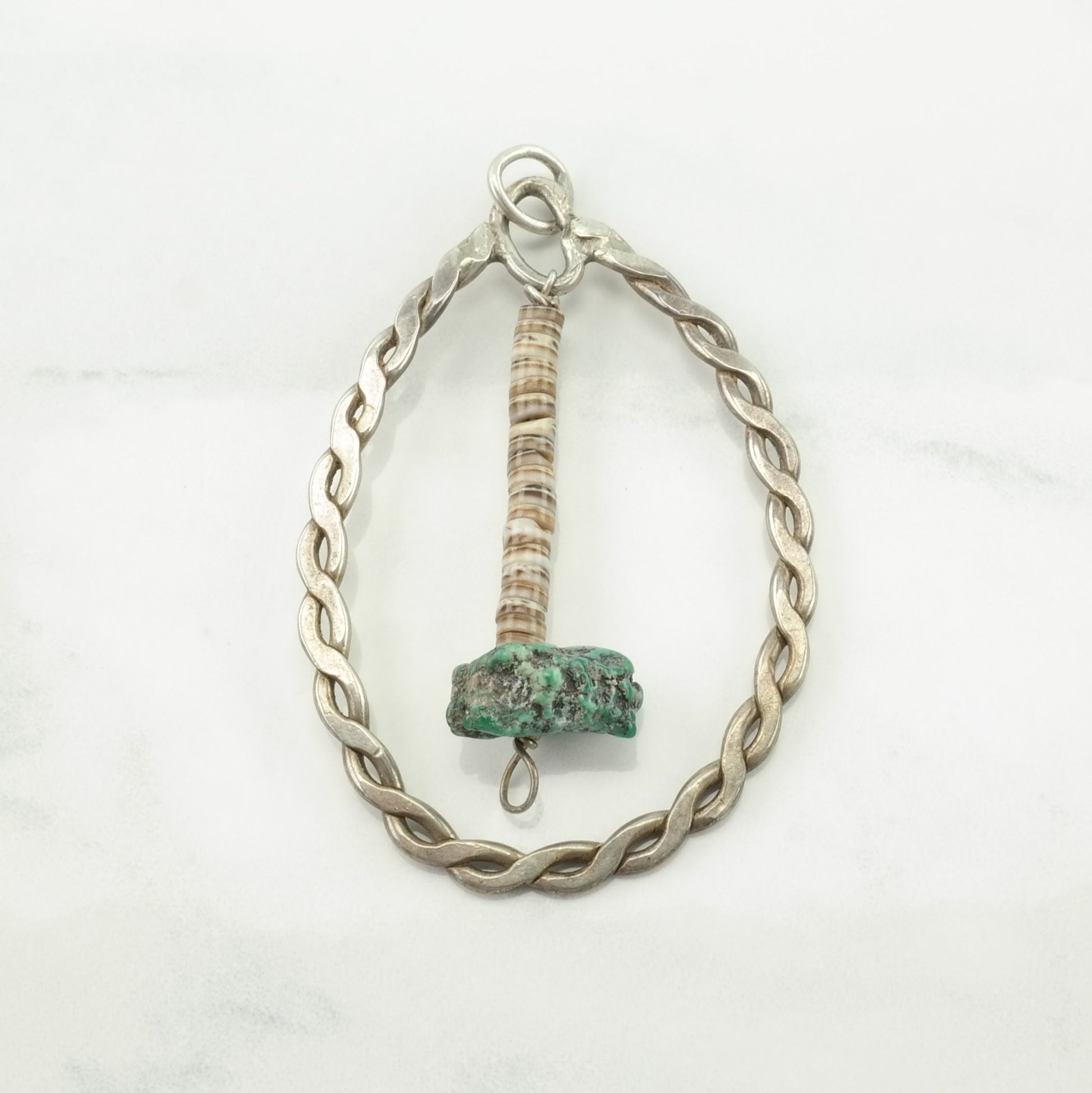 Vintage Native American Turquoise, Heishi Dangling Tomahawk Sterling Silver Pendant