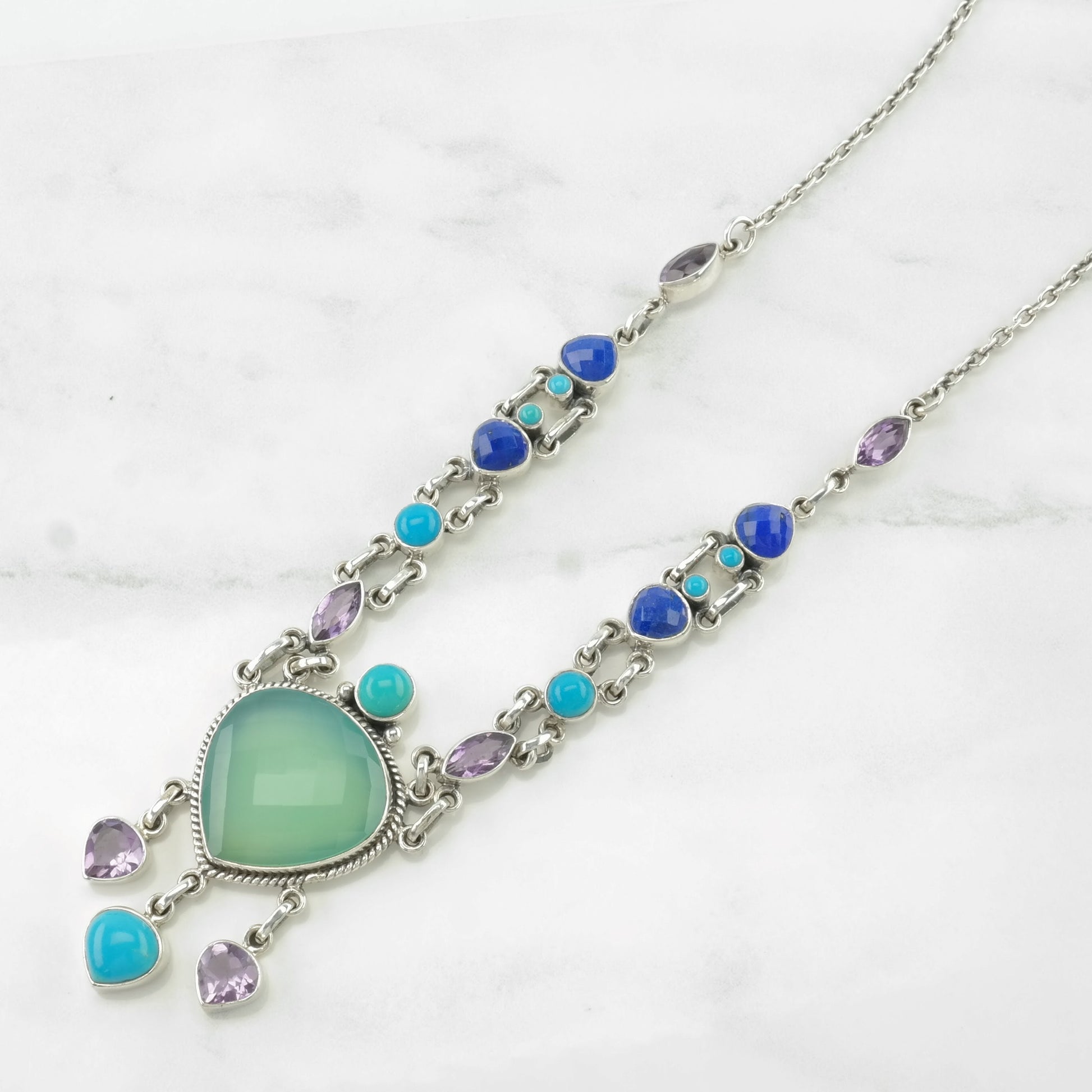 Vintage Nicky Butler Sterling Silver Blue, Purple Turquoise, Lapis Lazuli, Chalcedony Cluster Necklace