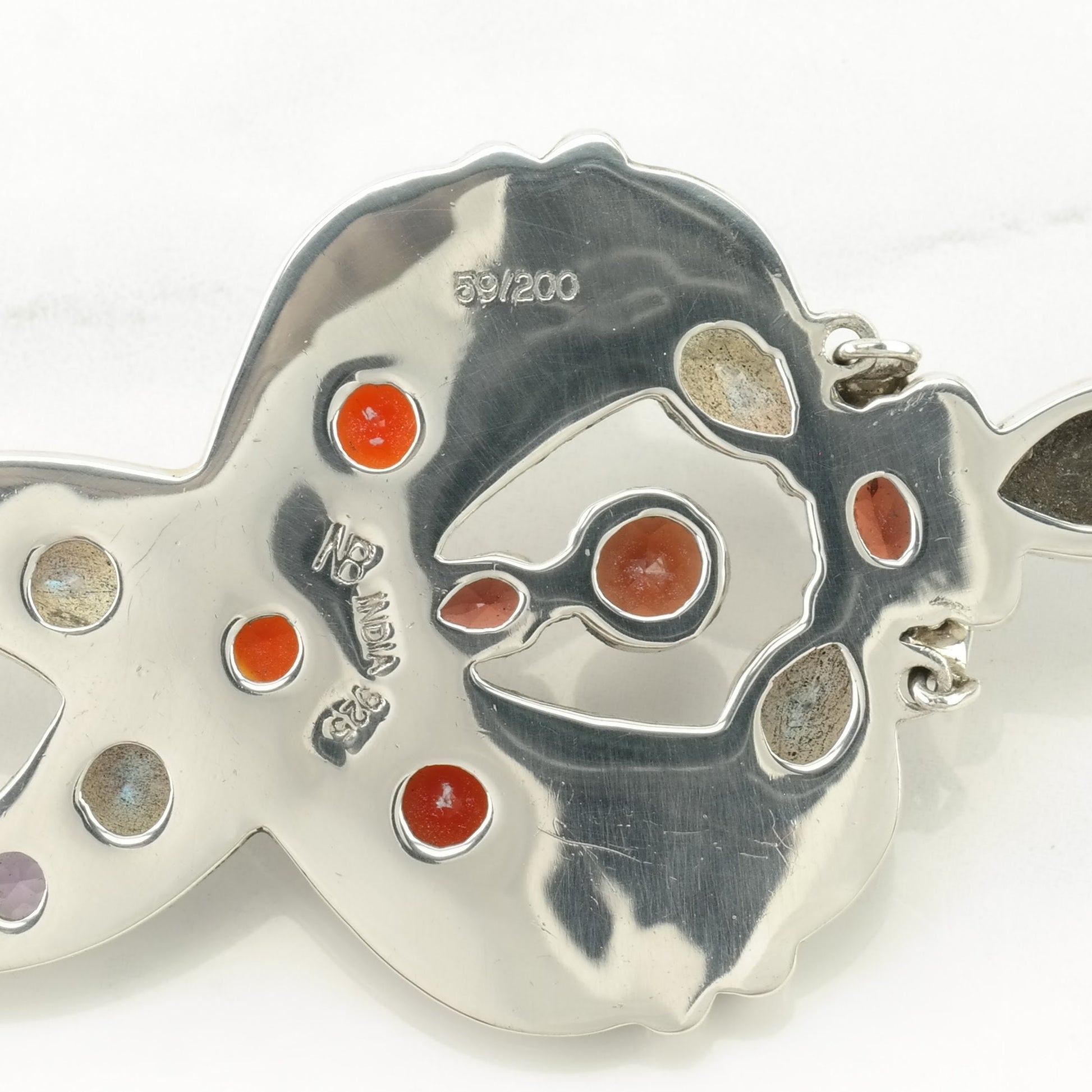 Vintage Nicky Butler Sterling Silver Garnet, Amethyst, Prasiolite, Labradorite Cluster Necklace