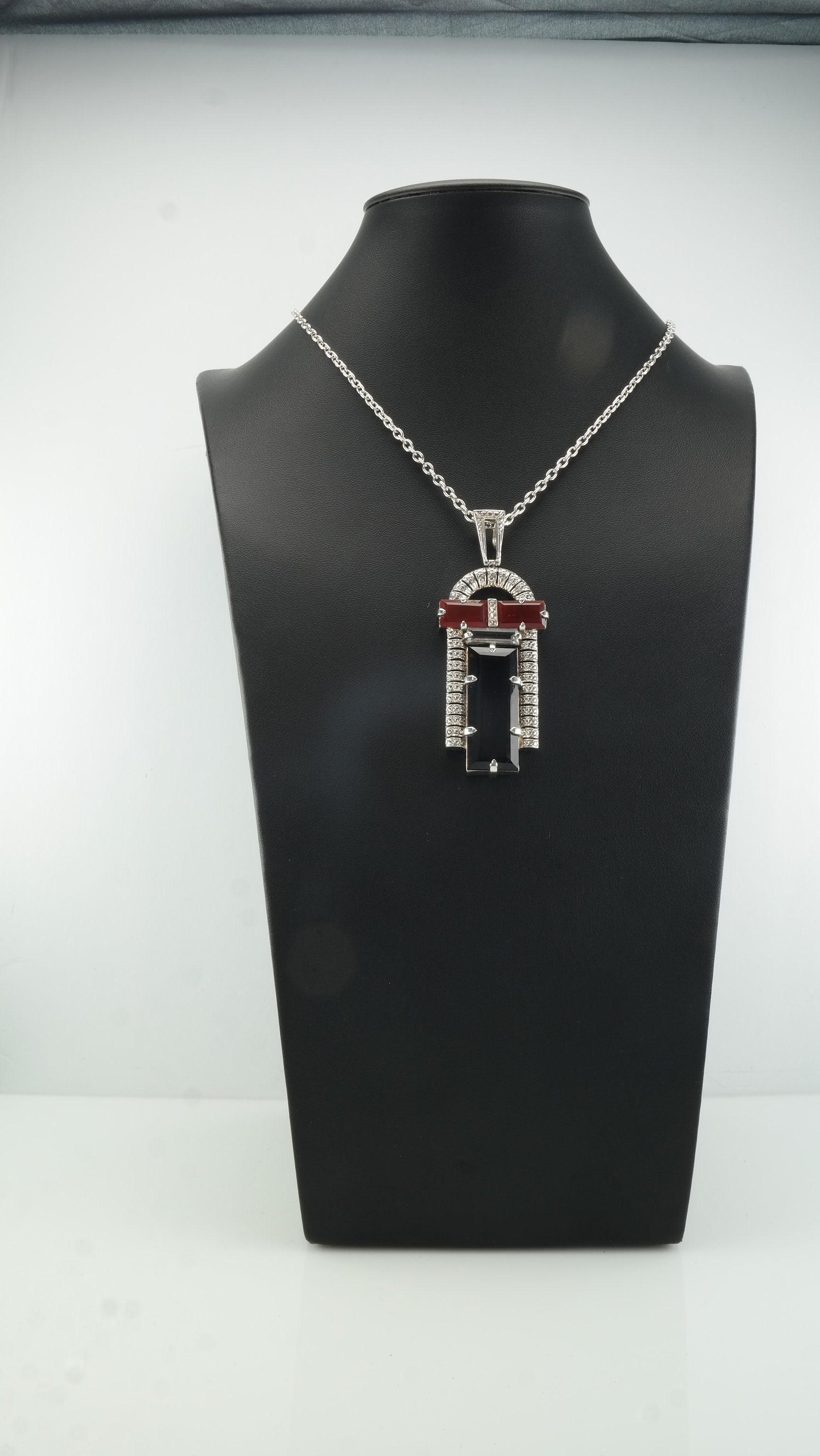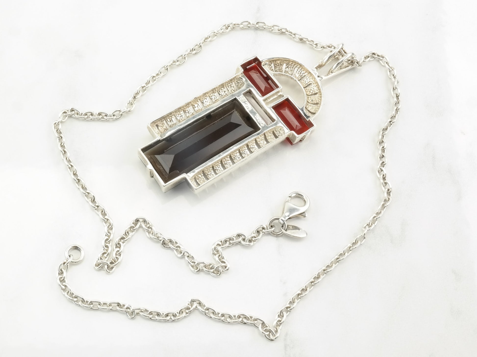 Vintage Nicky Buttler Art Deco Style Sterling Silver Smoky Quartz Carnelian Deco Arch Necklace