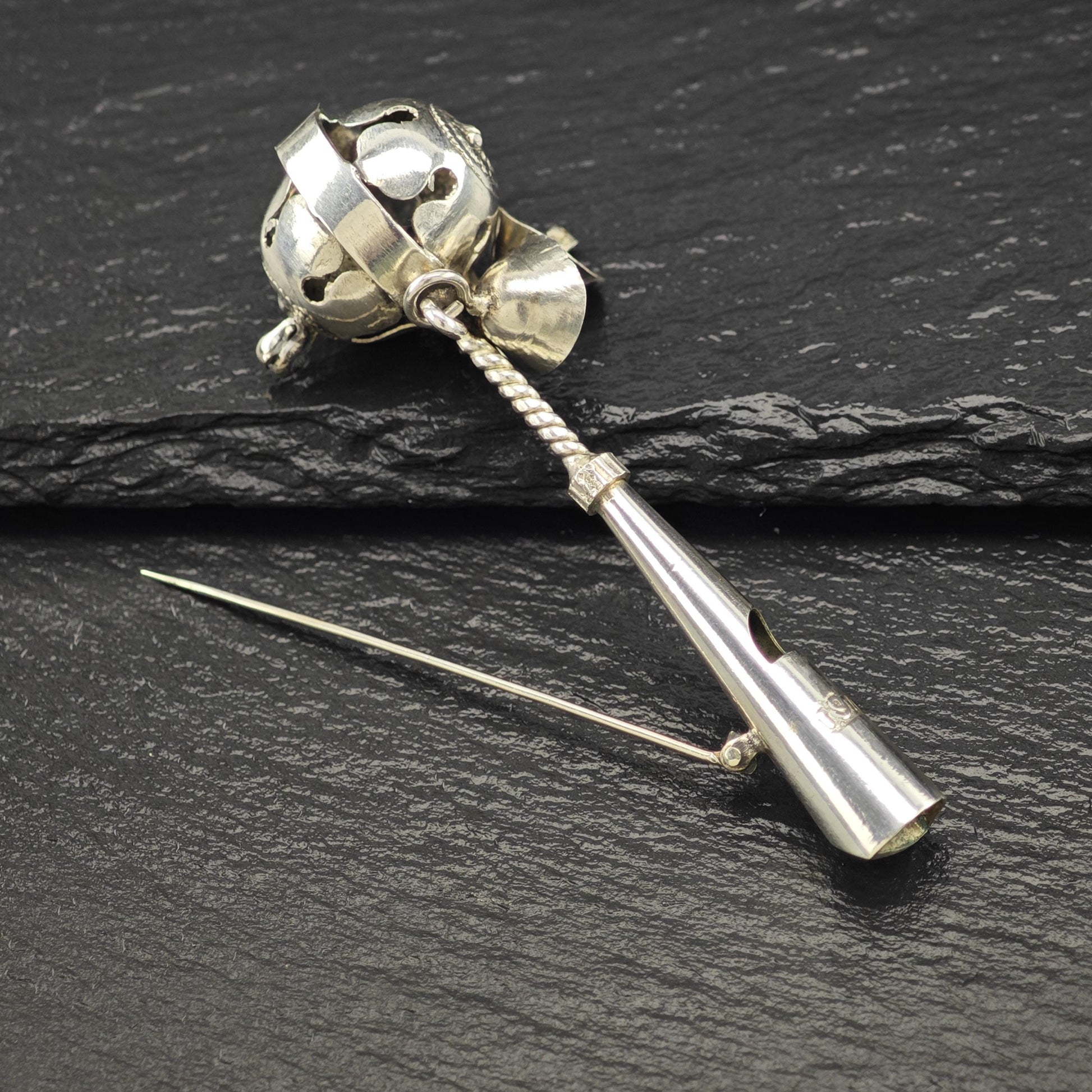 Vintage Old Sterling Silver Brooch Bells, Whistle