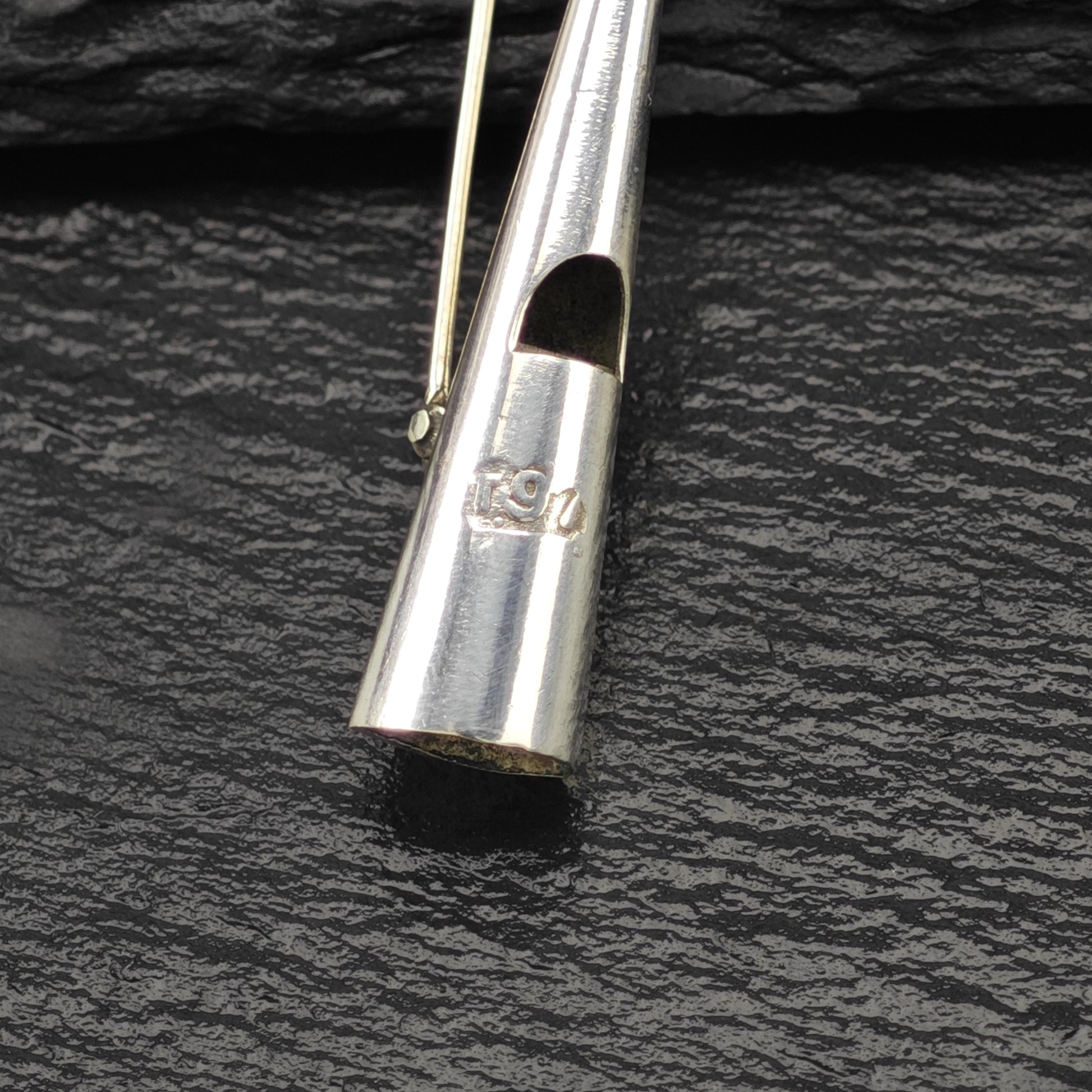 - Circa 1940 vintage sterling silver brooch with whistle bells motif