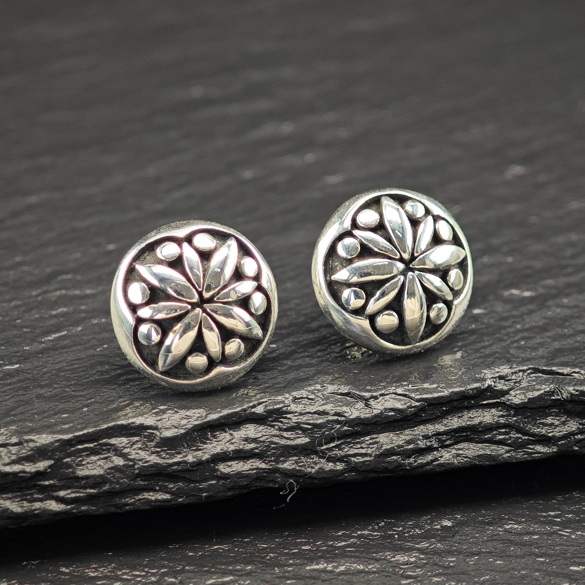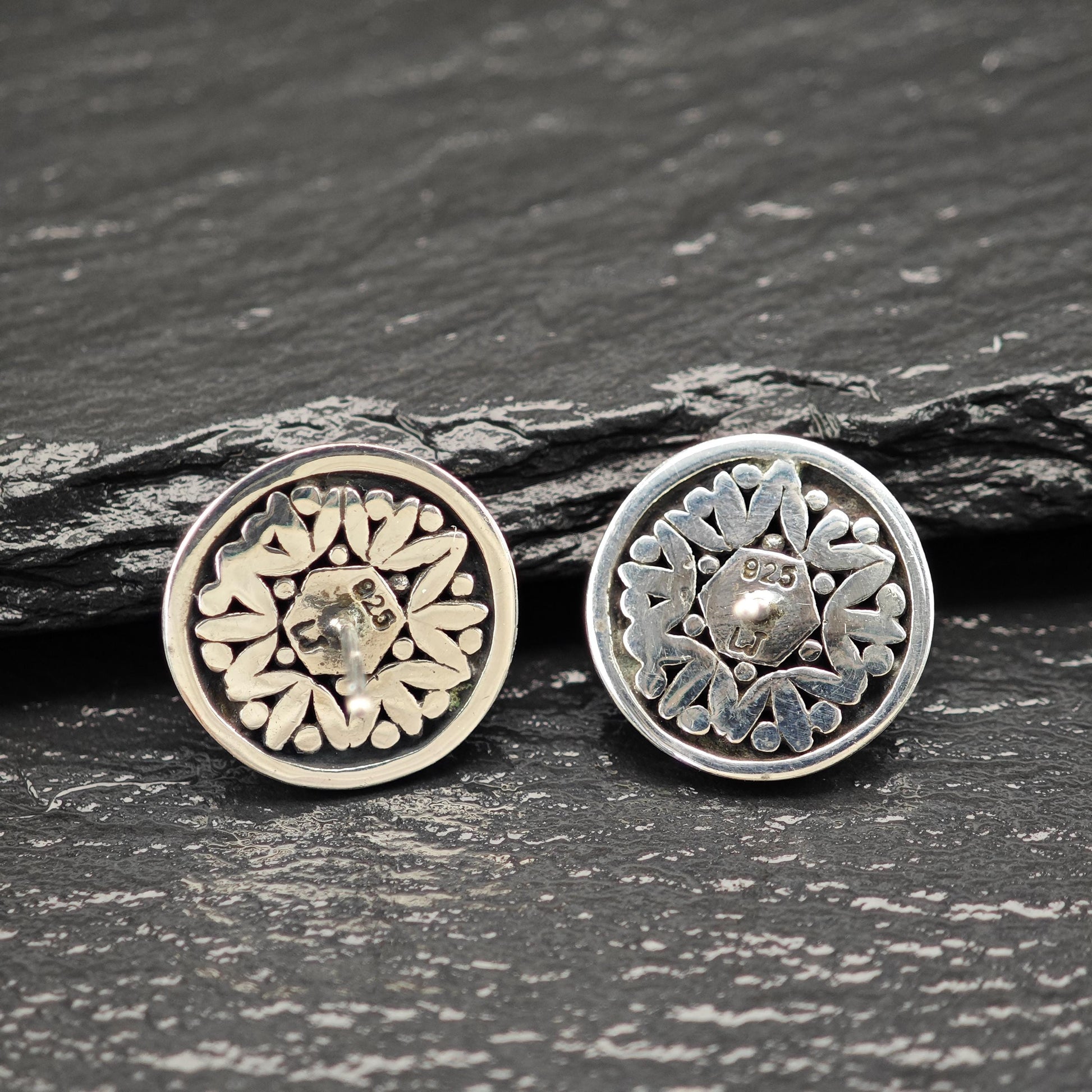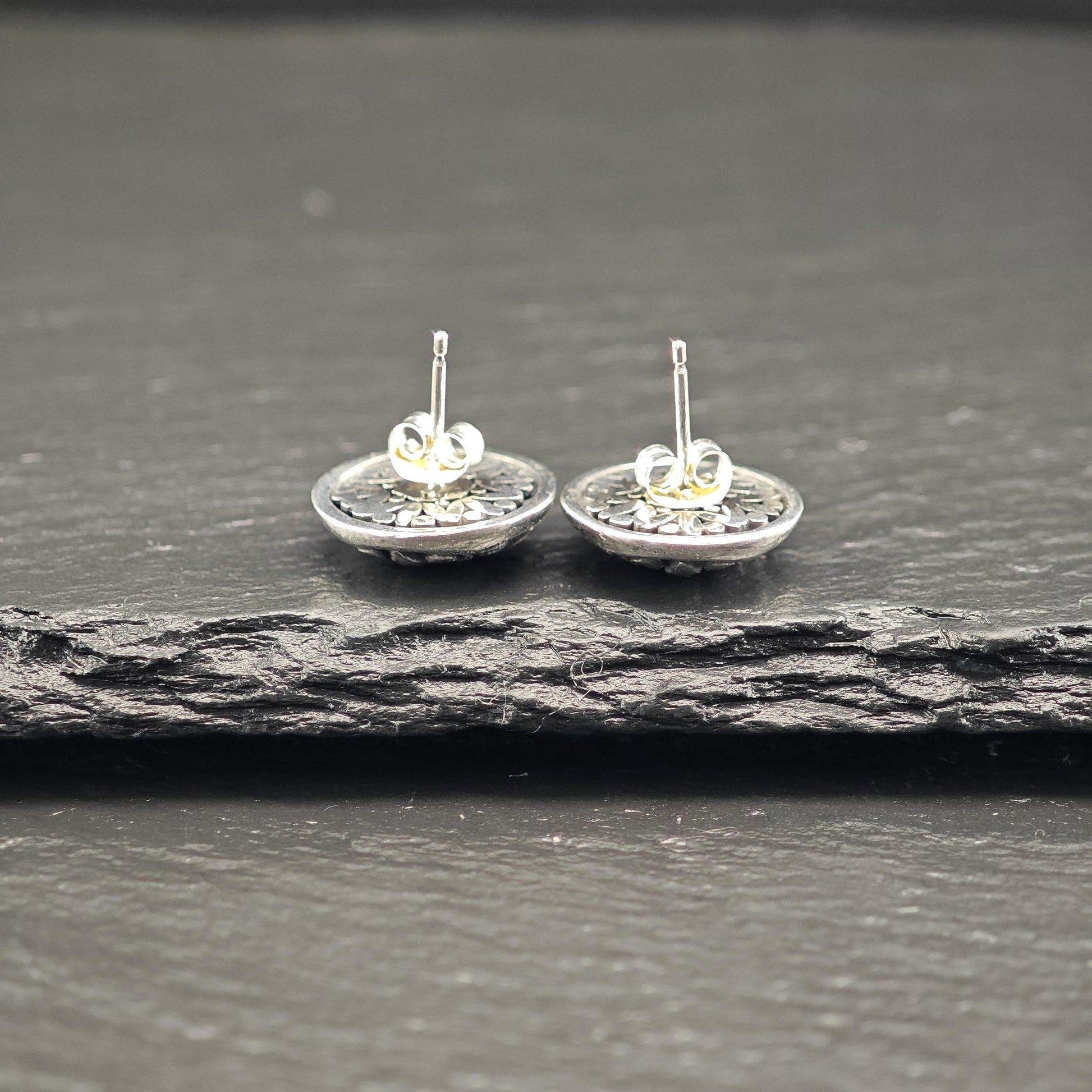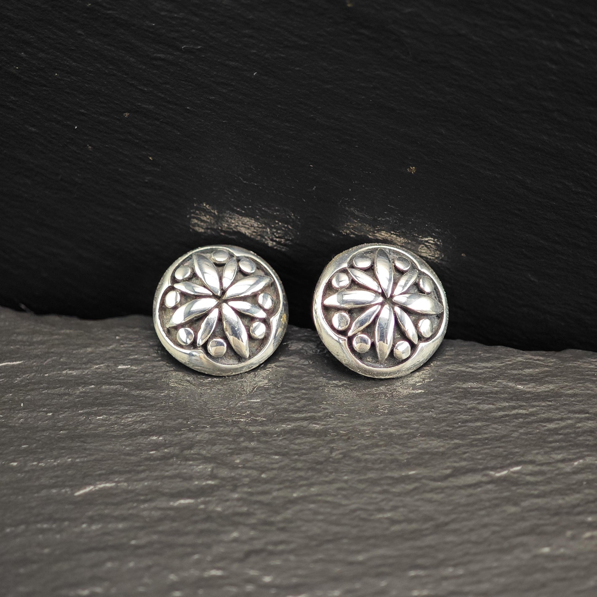 Vintage Overlay Floral Stud Earrings Sterling Silver