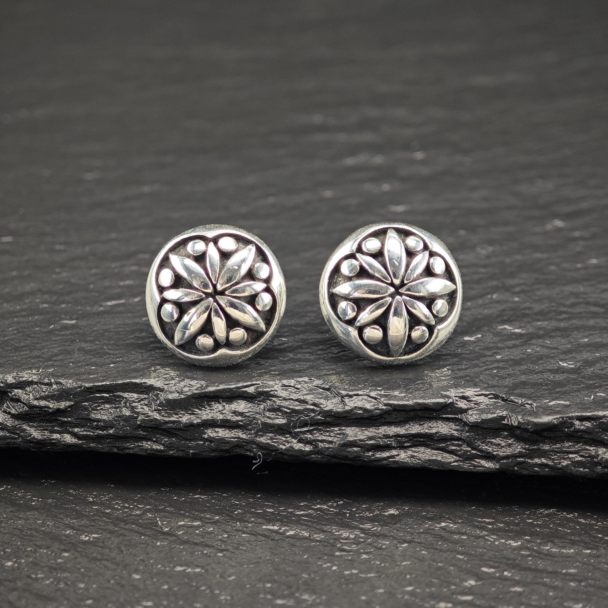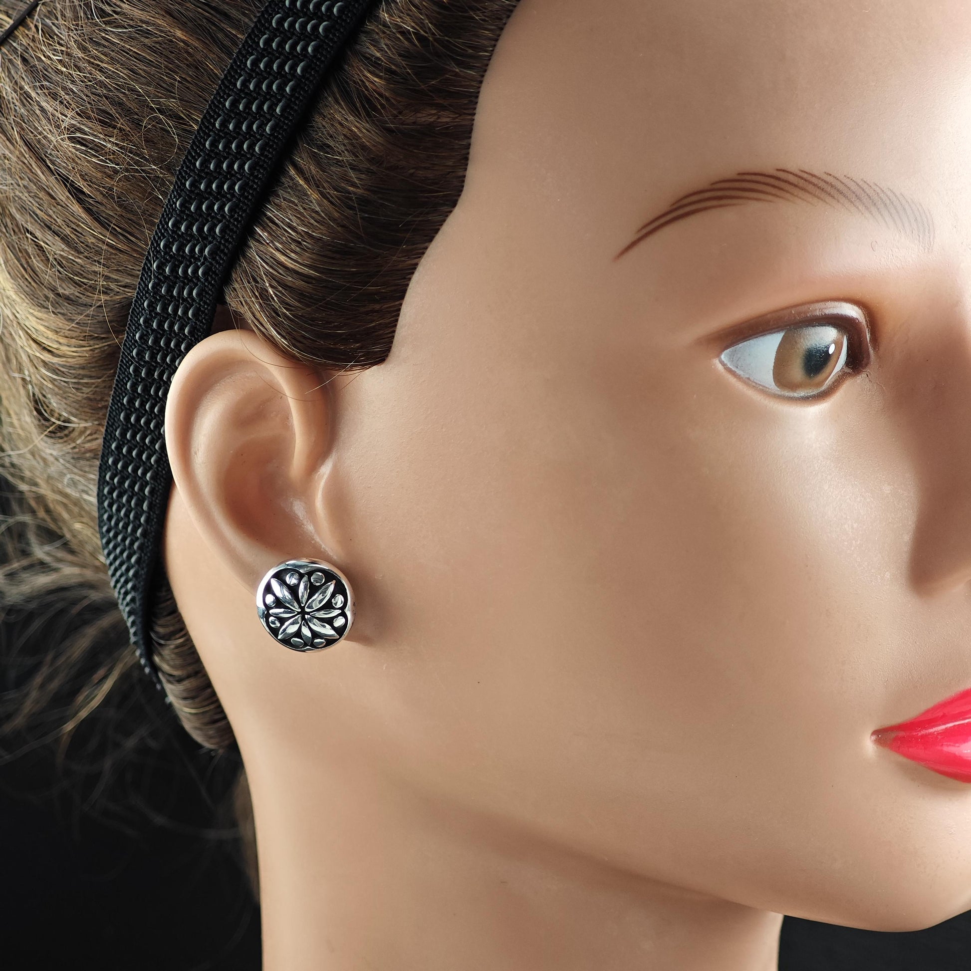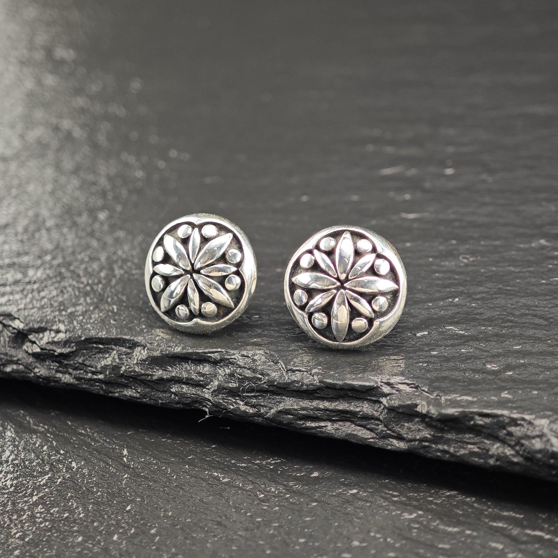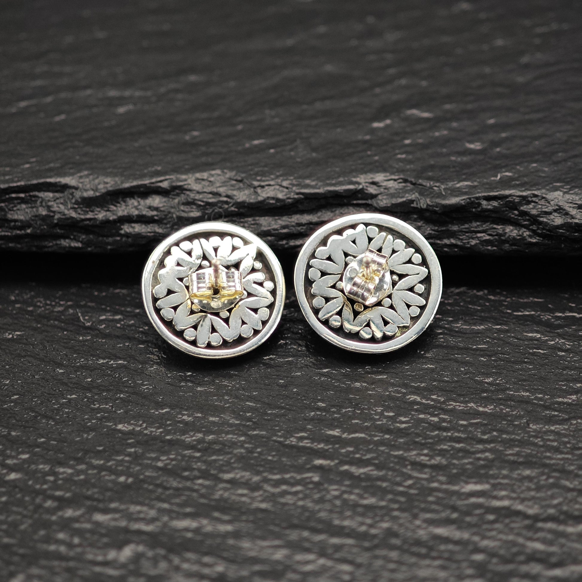 Vintage Overlay Floral Stud Earrings Sterling Silver