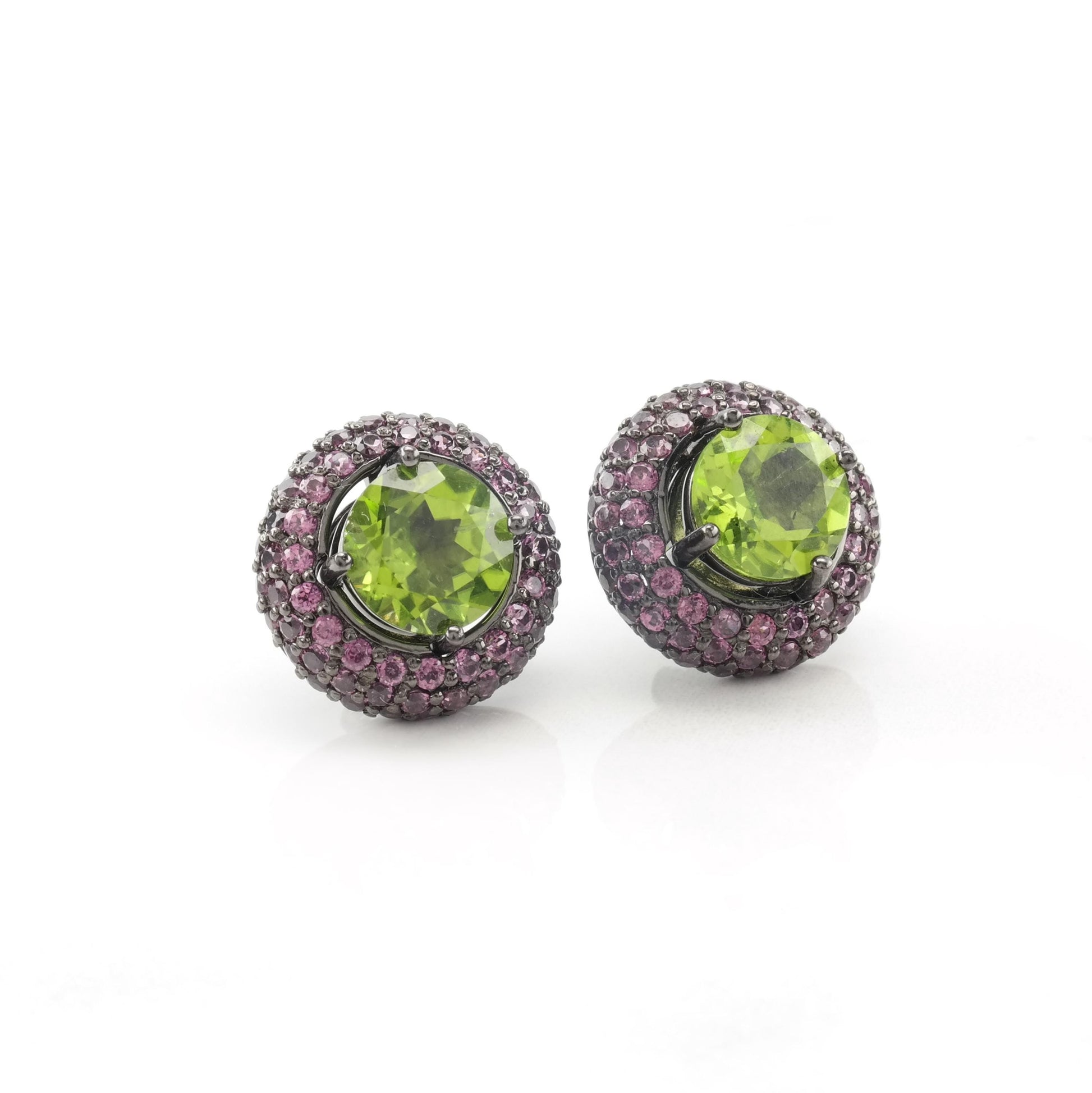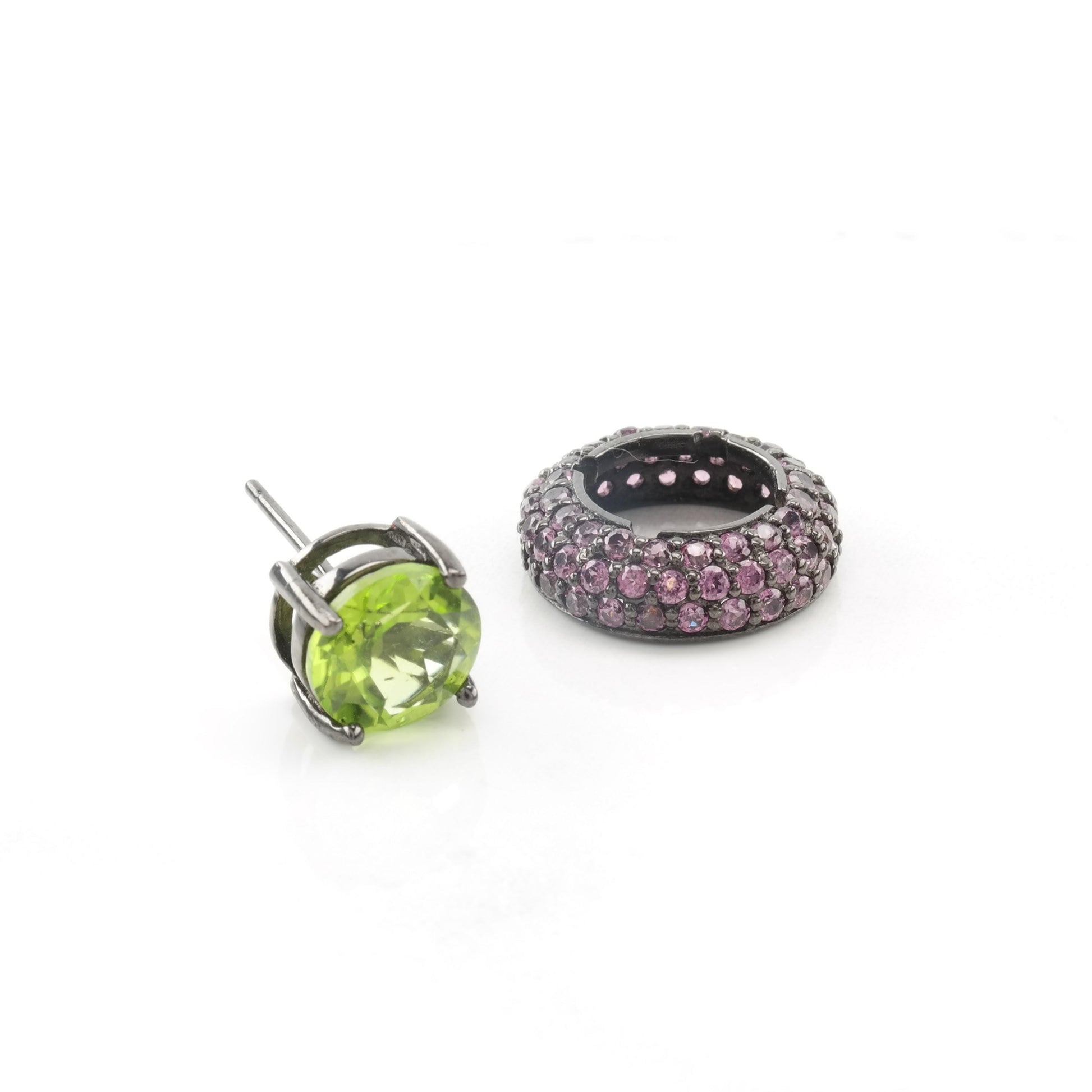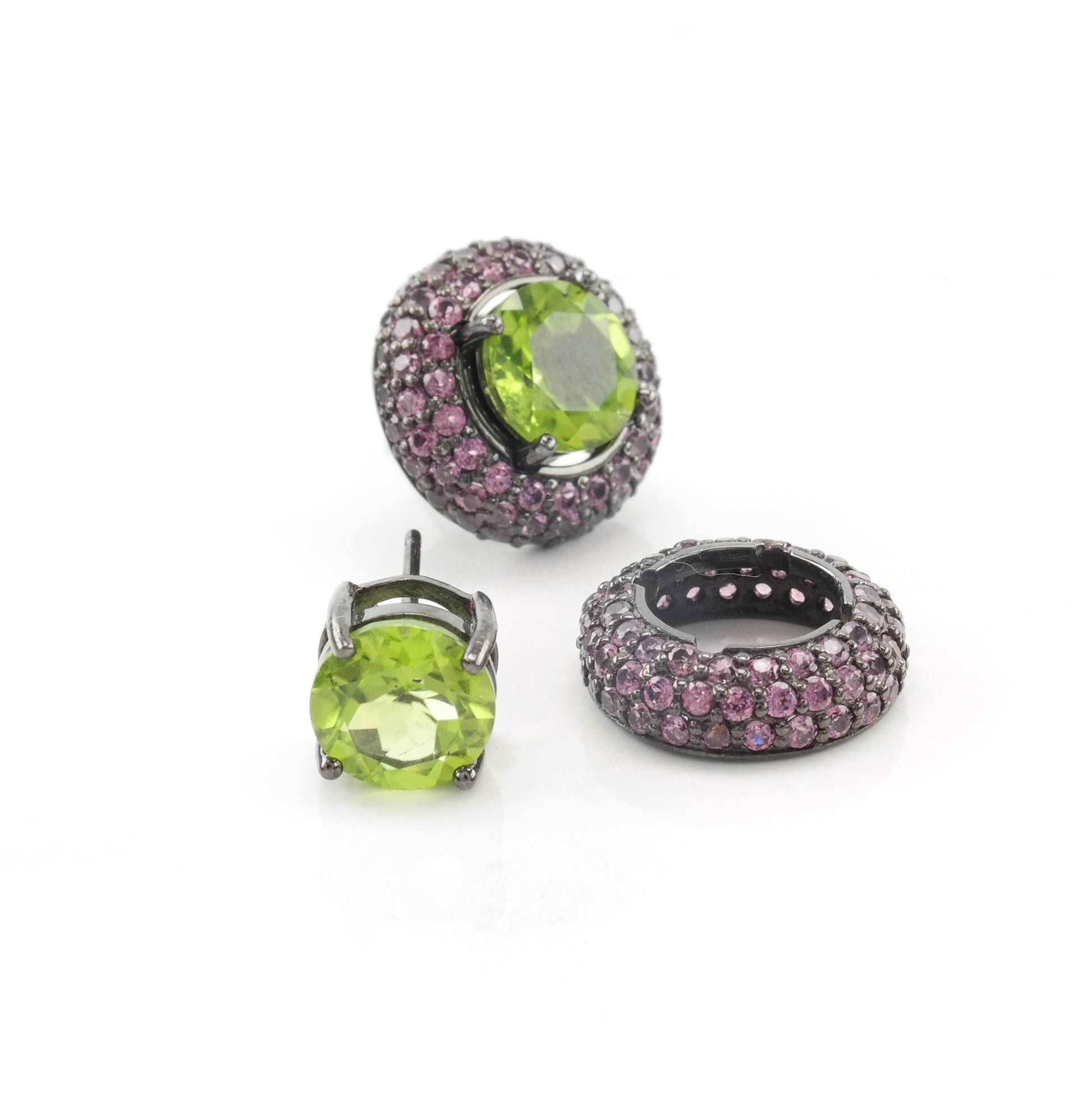 The Stone/Theme is Green Natural Peridot, Pink Pave set Garnets Natural