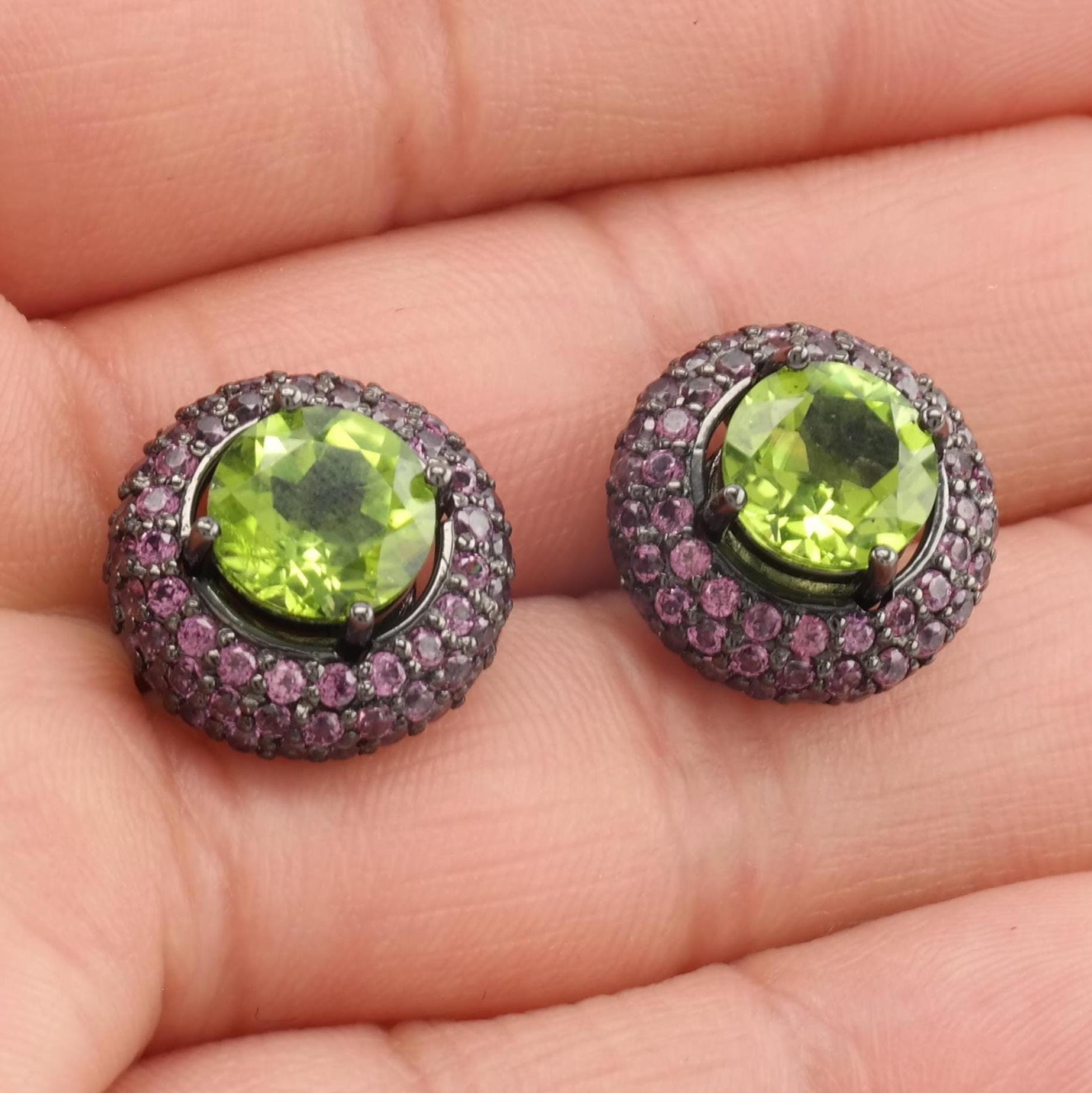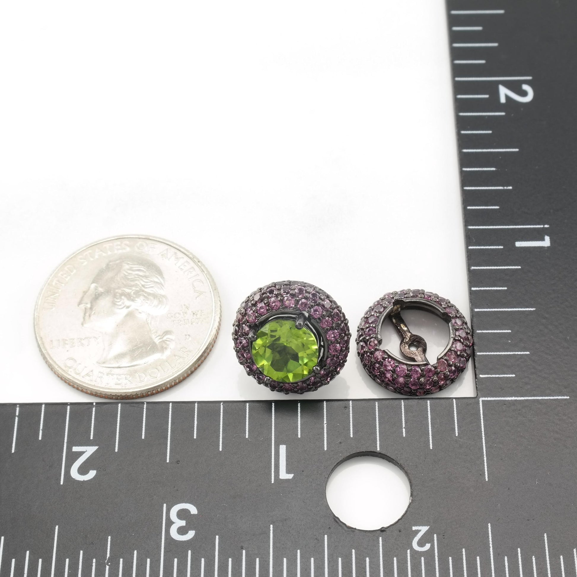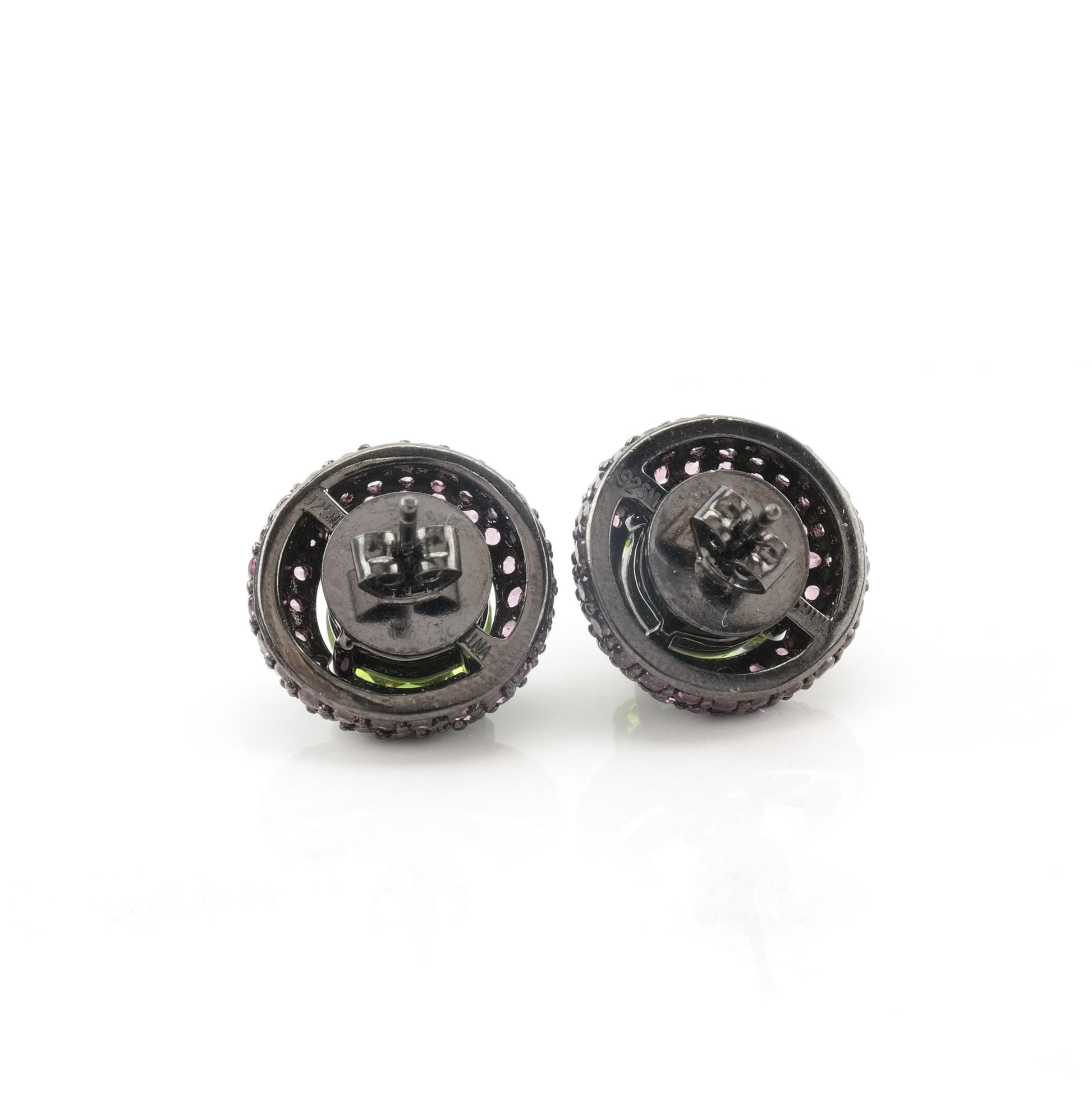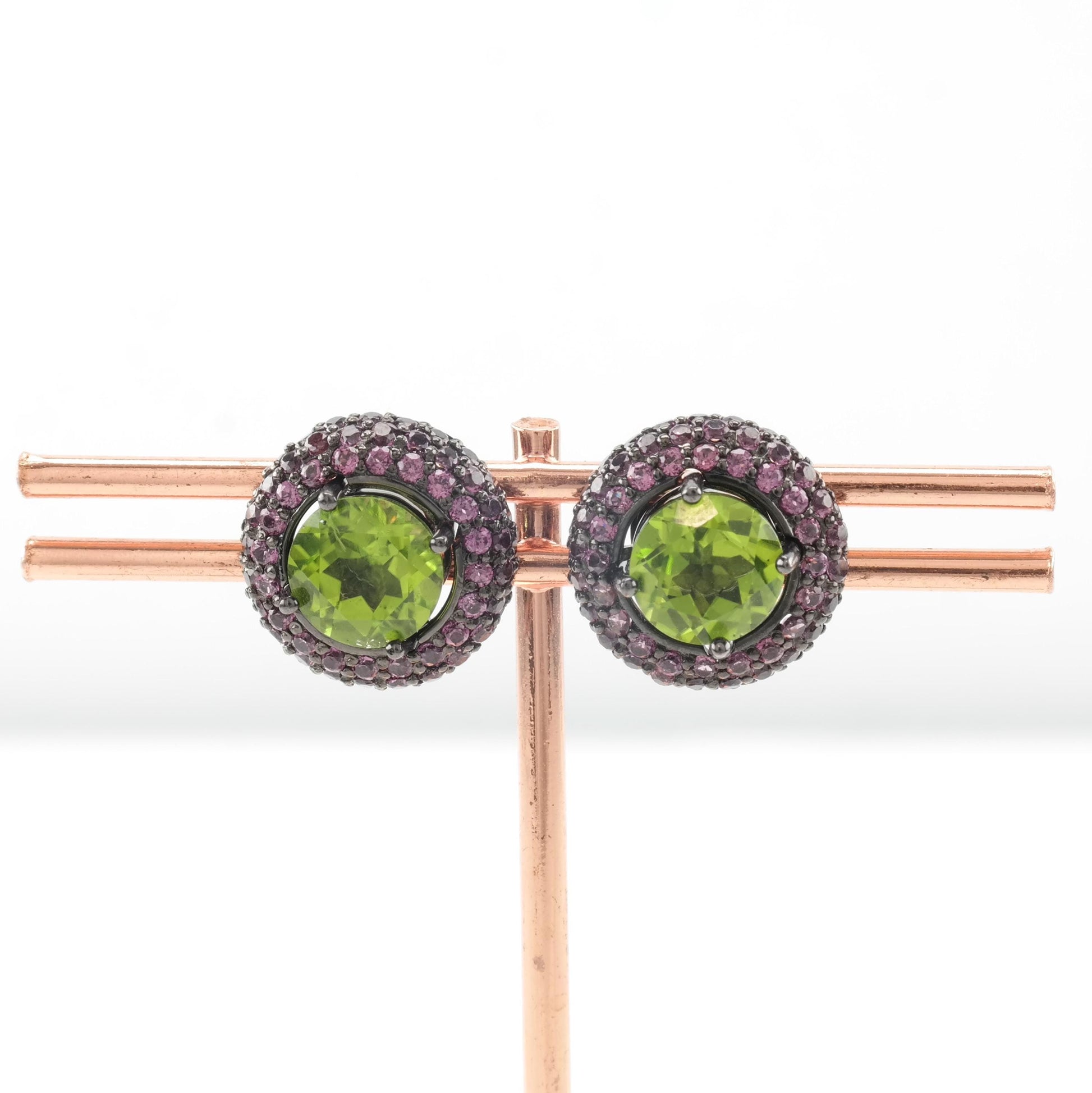 Vintage Oxidized Sterling Silver Stud Earrings Natural Peridot Garnet