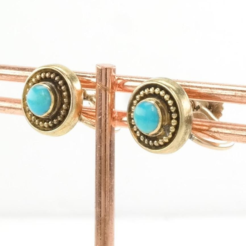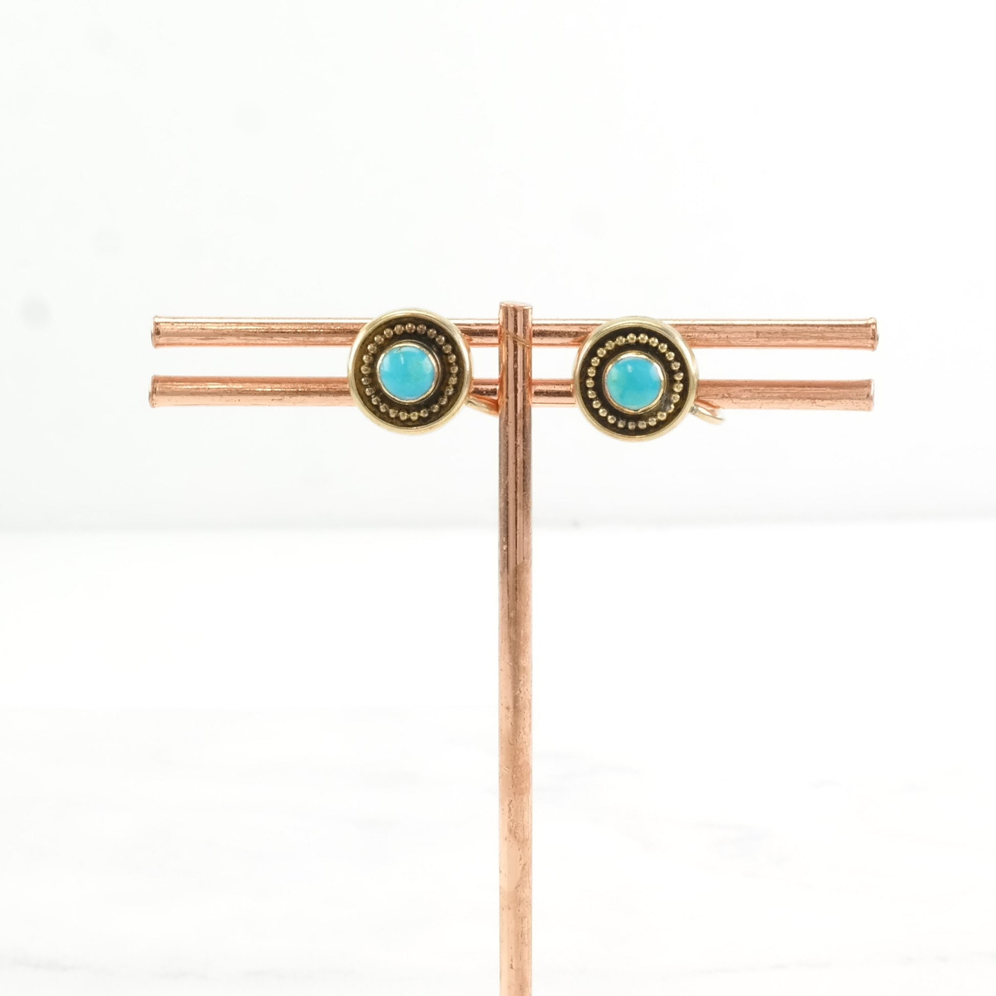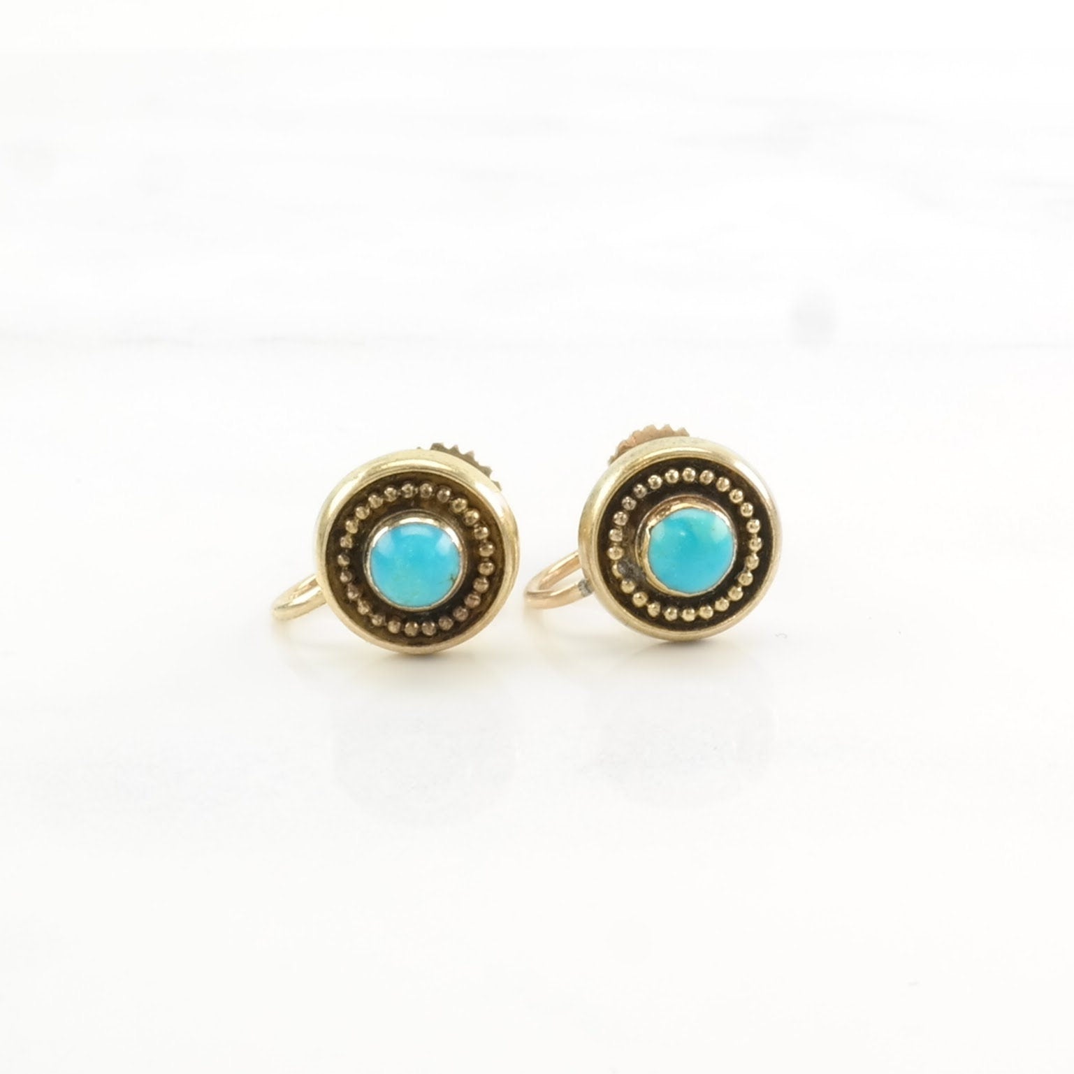 Vintage Persian Blue Turquoise 9kt Gold Earrings Screw back