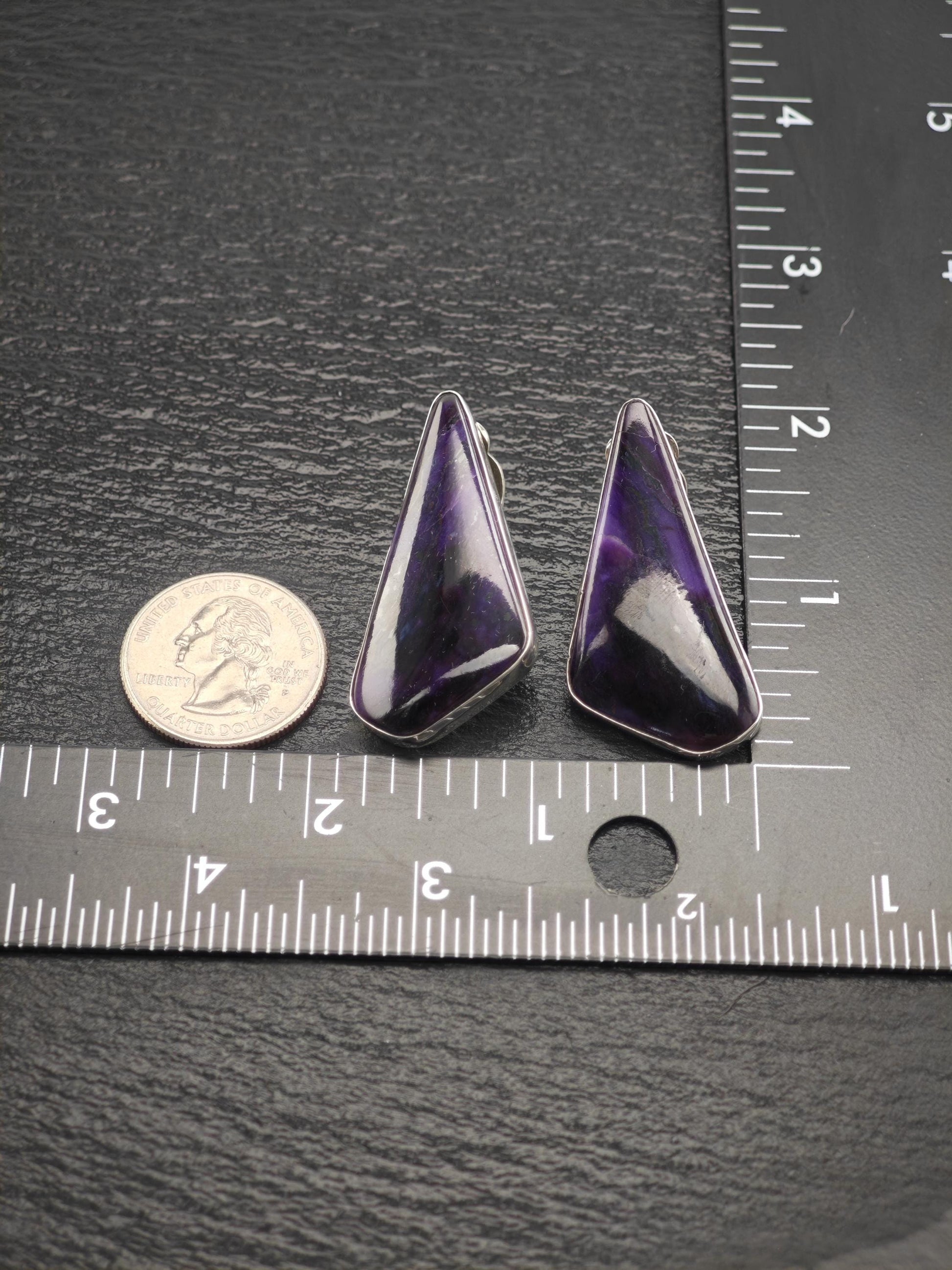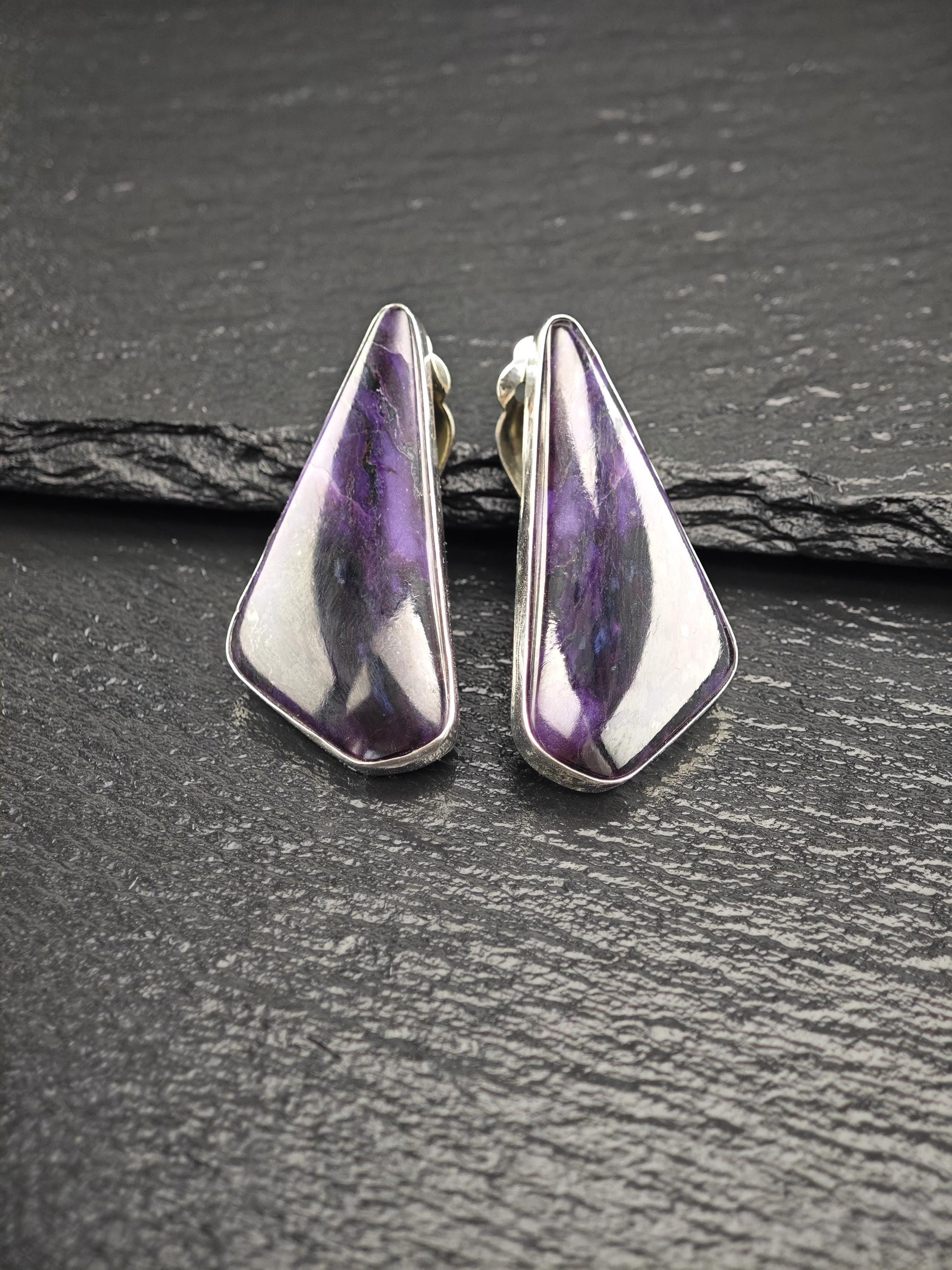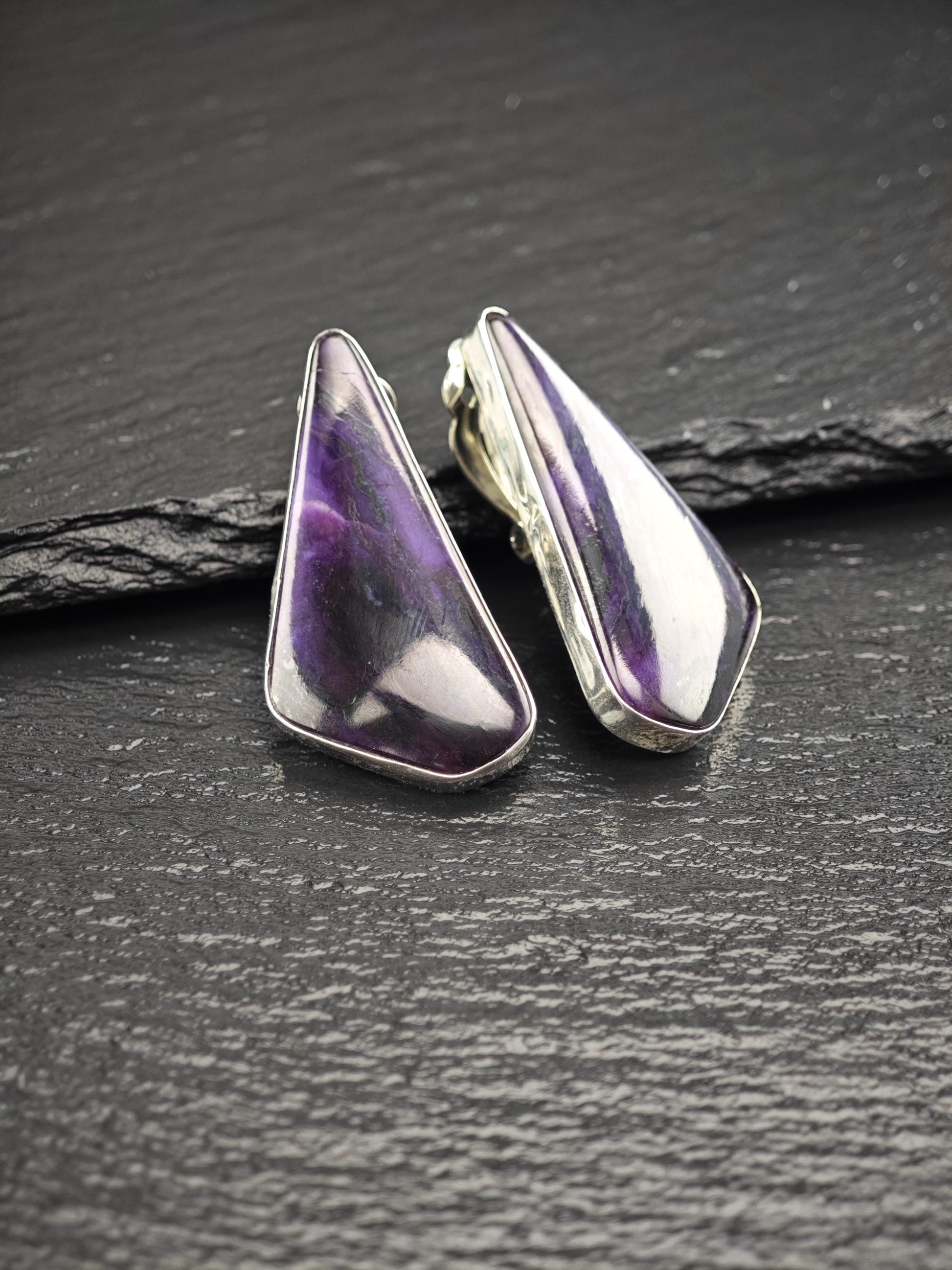 Vintage Purple Sugilite Sterling Silver Clip-On Earrings - Unique Abstract Design