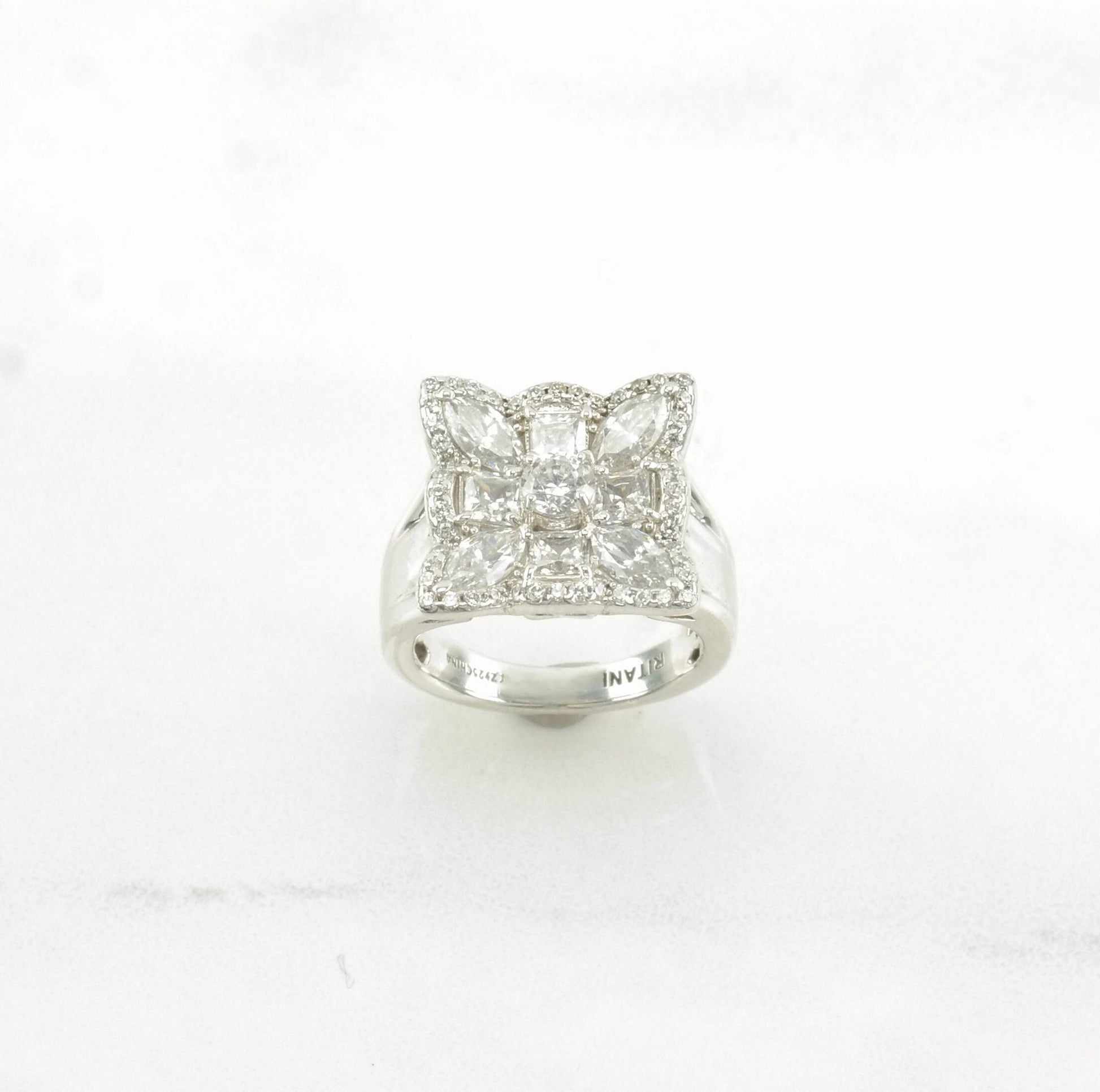 Vintage Ritani Silver Ring CZ Square Sterling Size 5