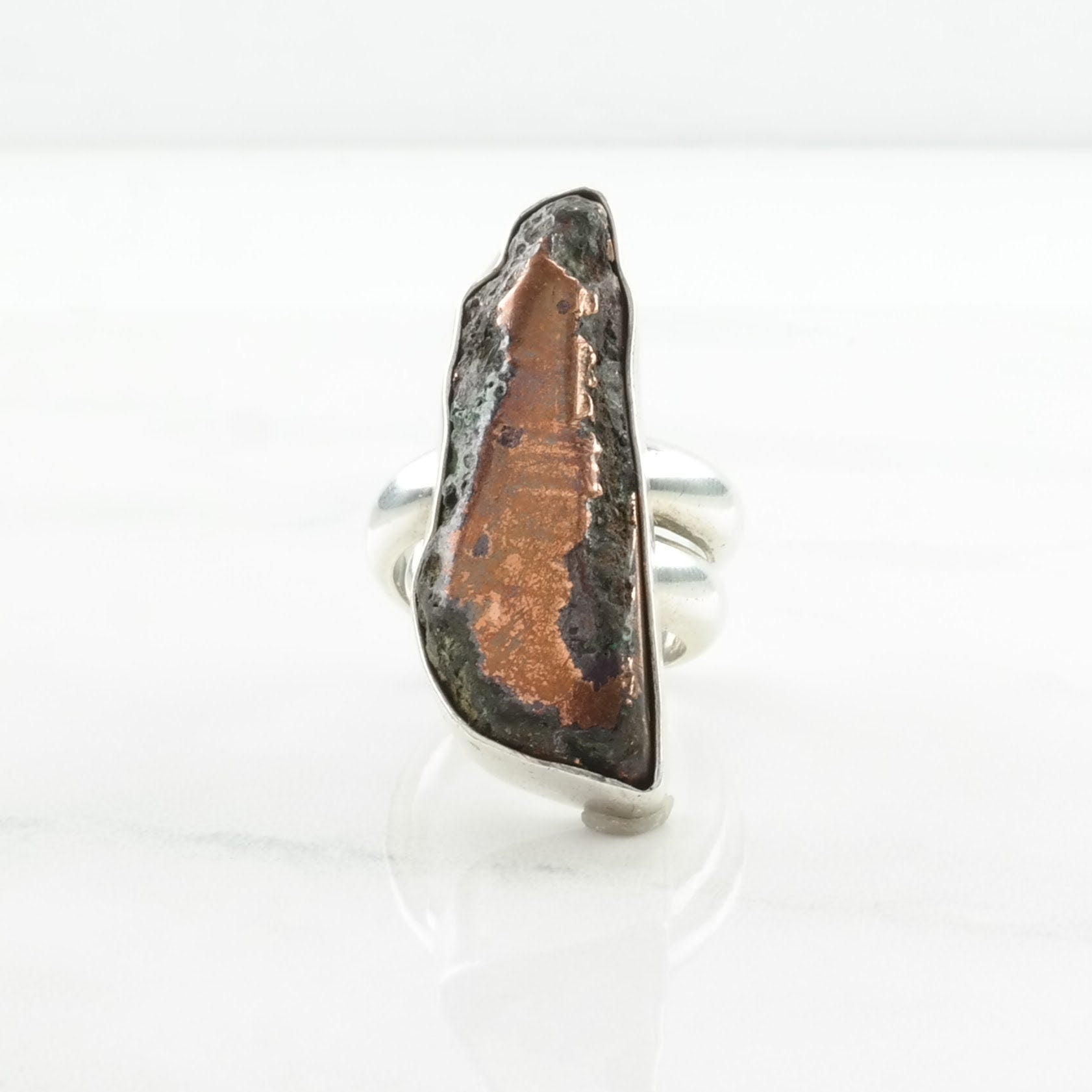 Vintage RLA, Richard Lindsay Silver Ring Chrysocolla in Copper Navette Sterling Brown Size 6 1/2