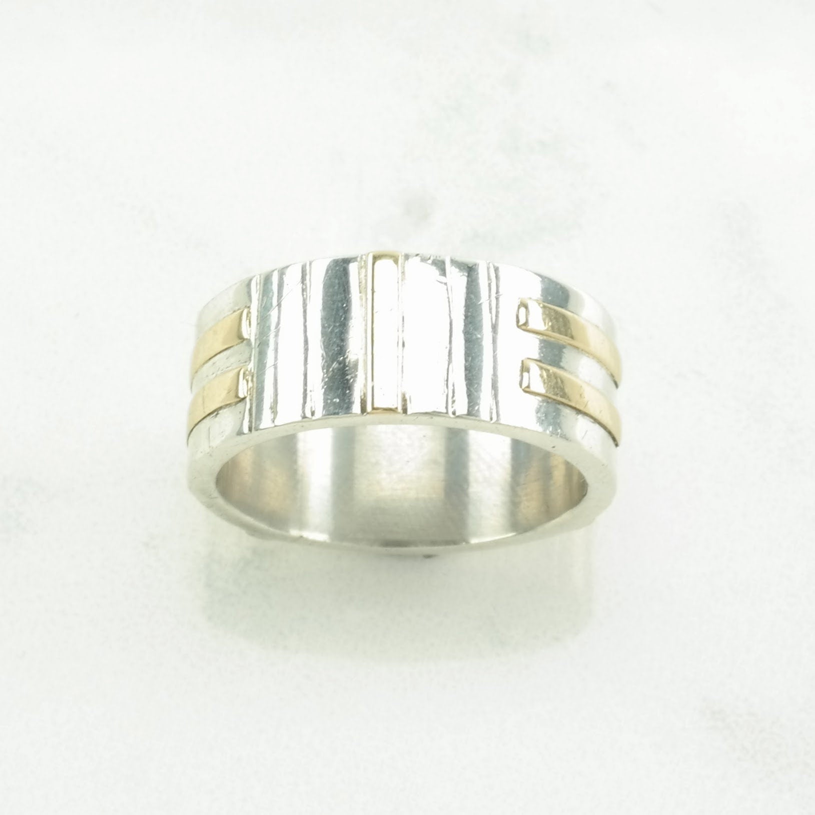 Vintage Ruff Silver Ring Band Gold Toned Accents Sterling Size 6 1/2