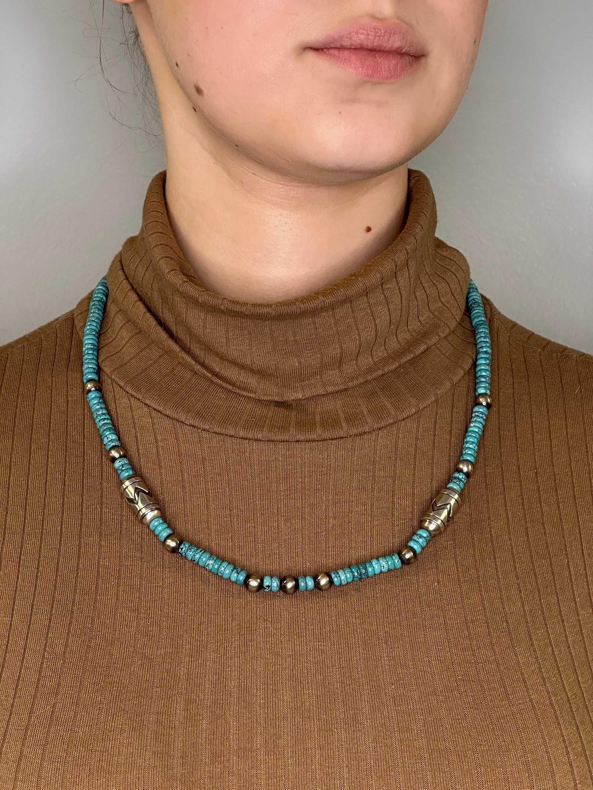 The stone/design of this necklace is Turquoise Bead - Natural, Industry standard treatment if any