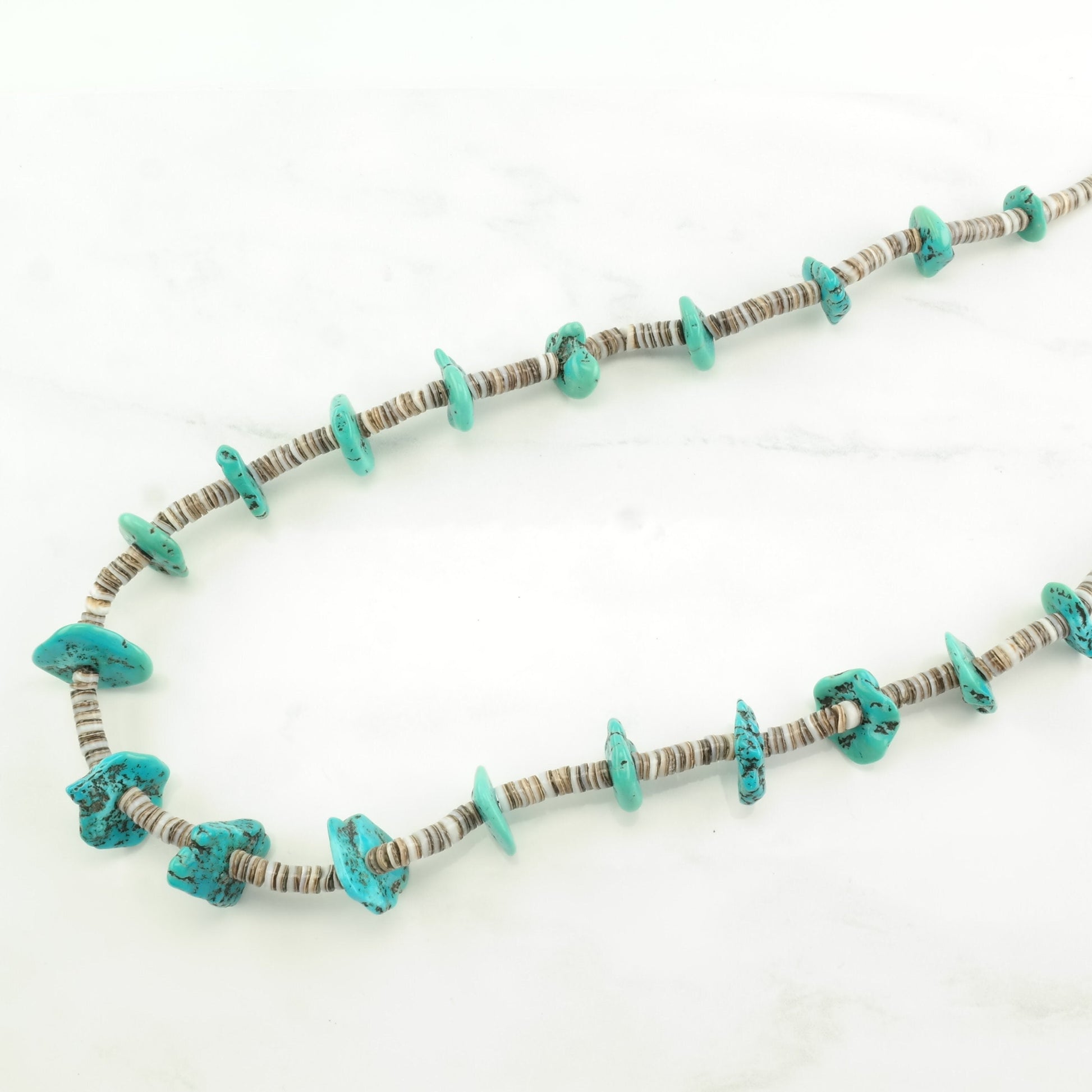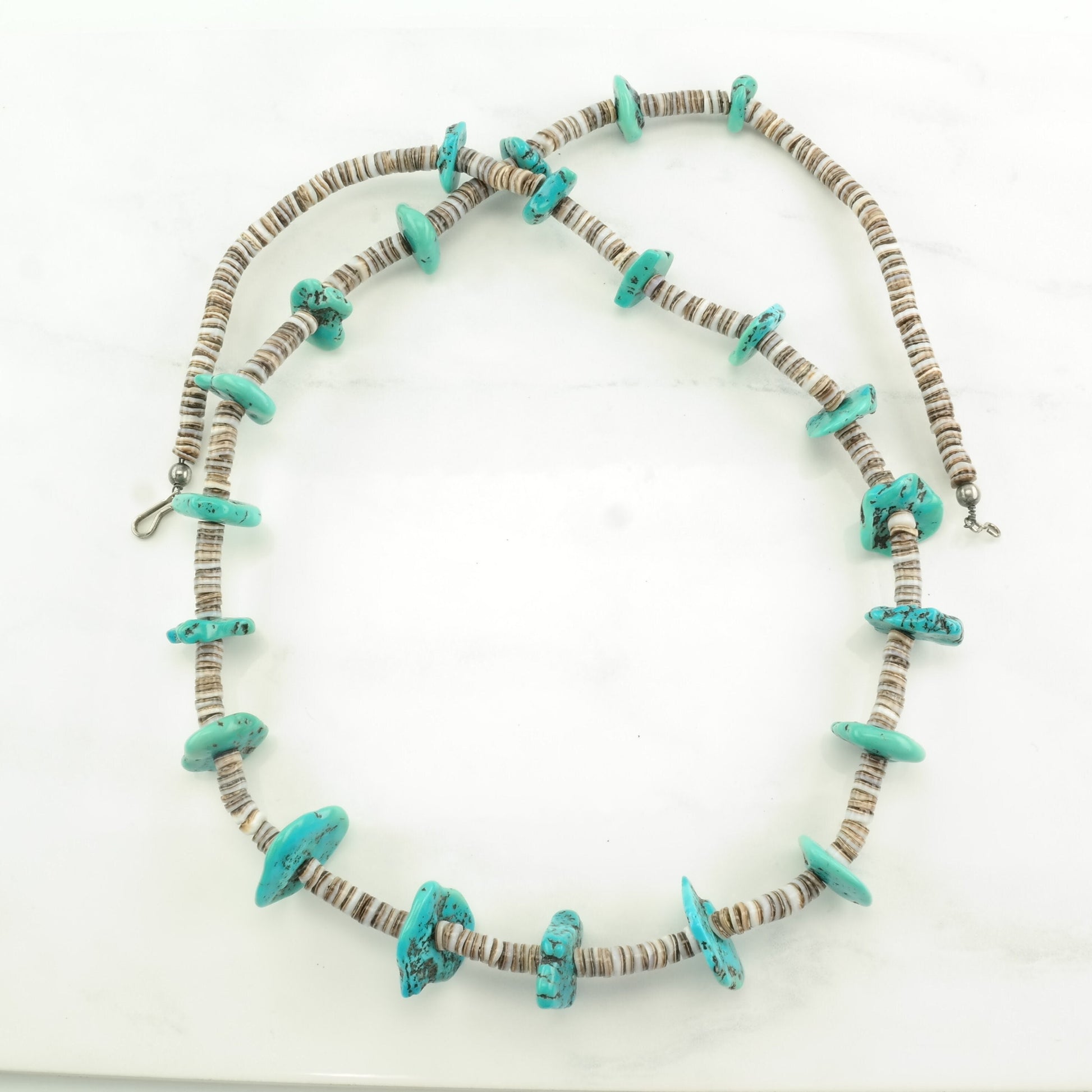 Vintage Santo Domingo Sterling Silver Blue Turquoise Shell, Heishi Necklace