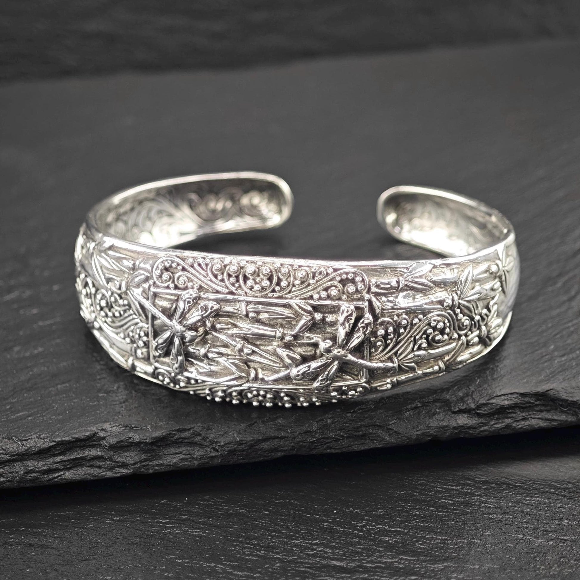 Vintage Sarada, Dragonfly Cuff Bracelet Sterling Silver
