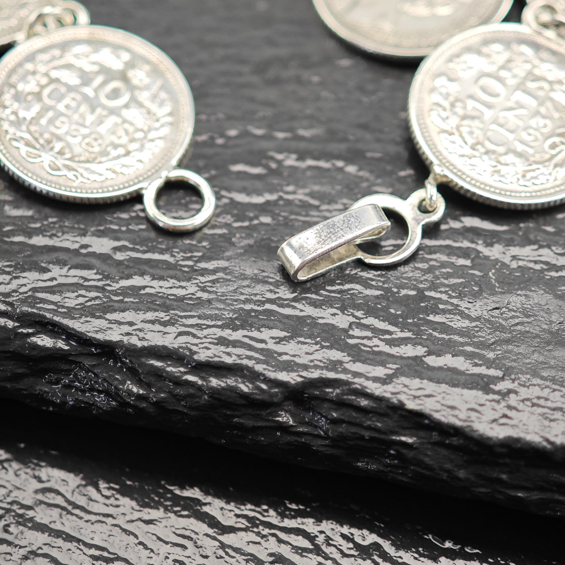Vintage Silver Dime Bracelet - Canada Pre 1944 Coin Jewelry