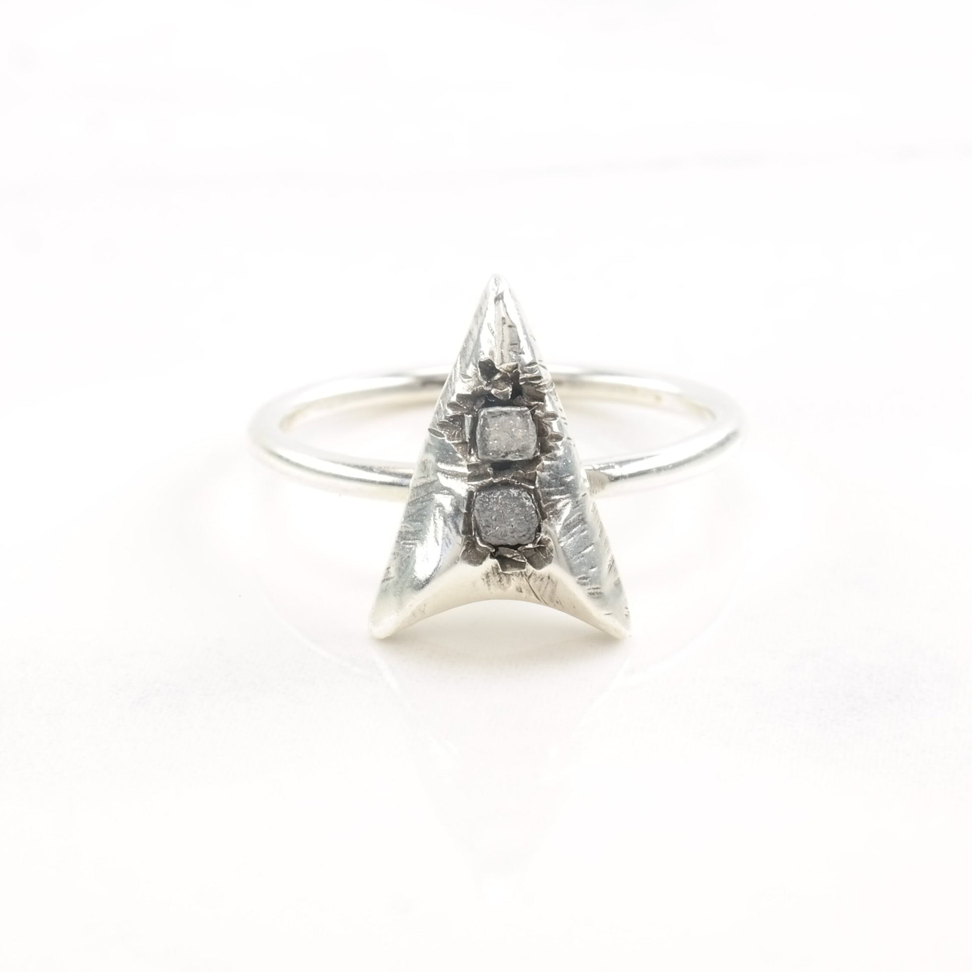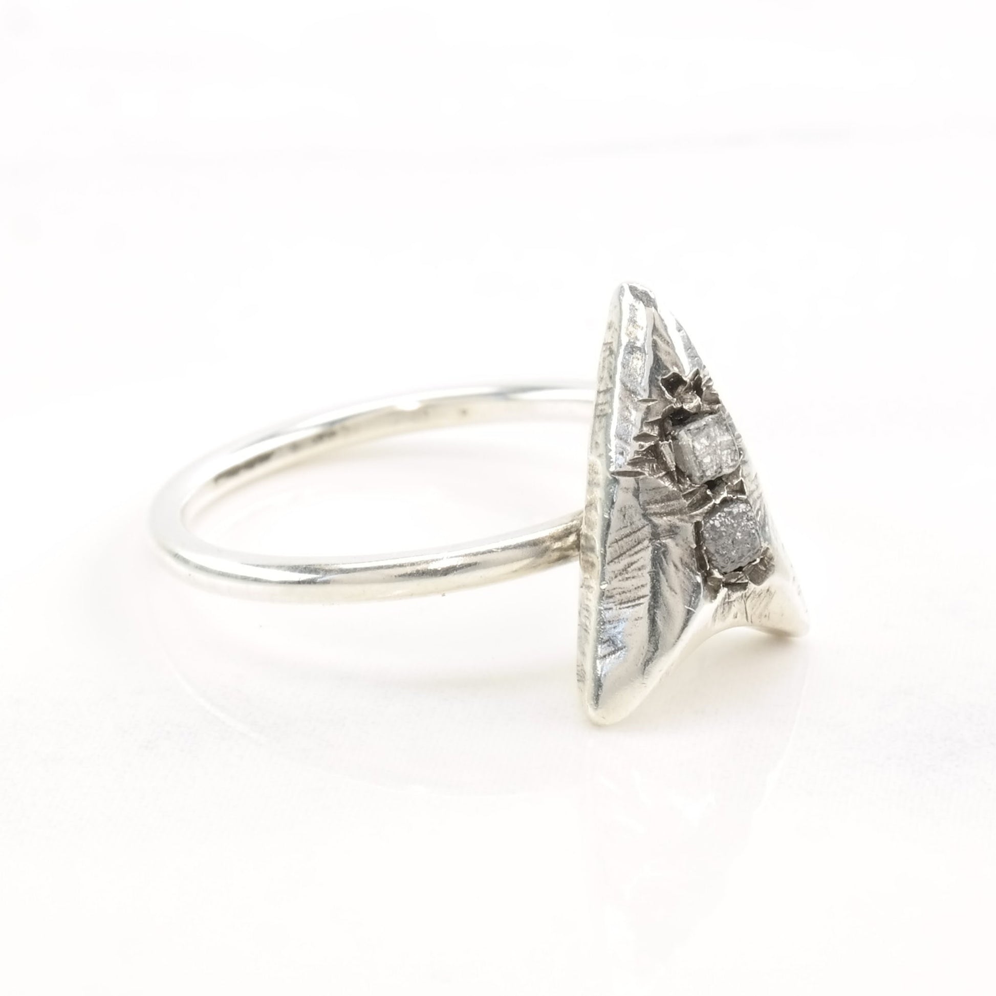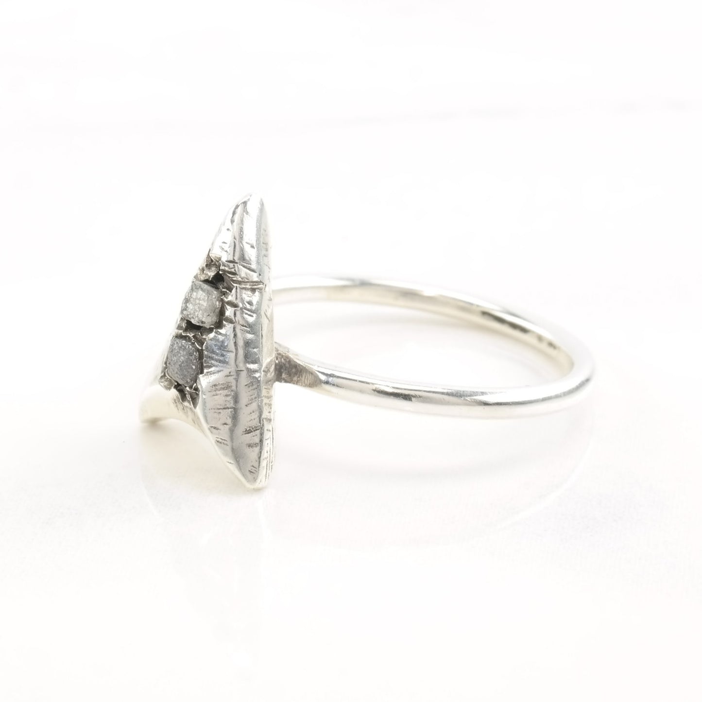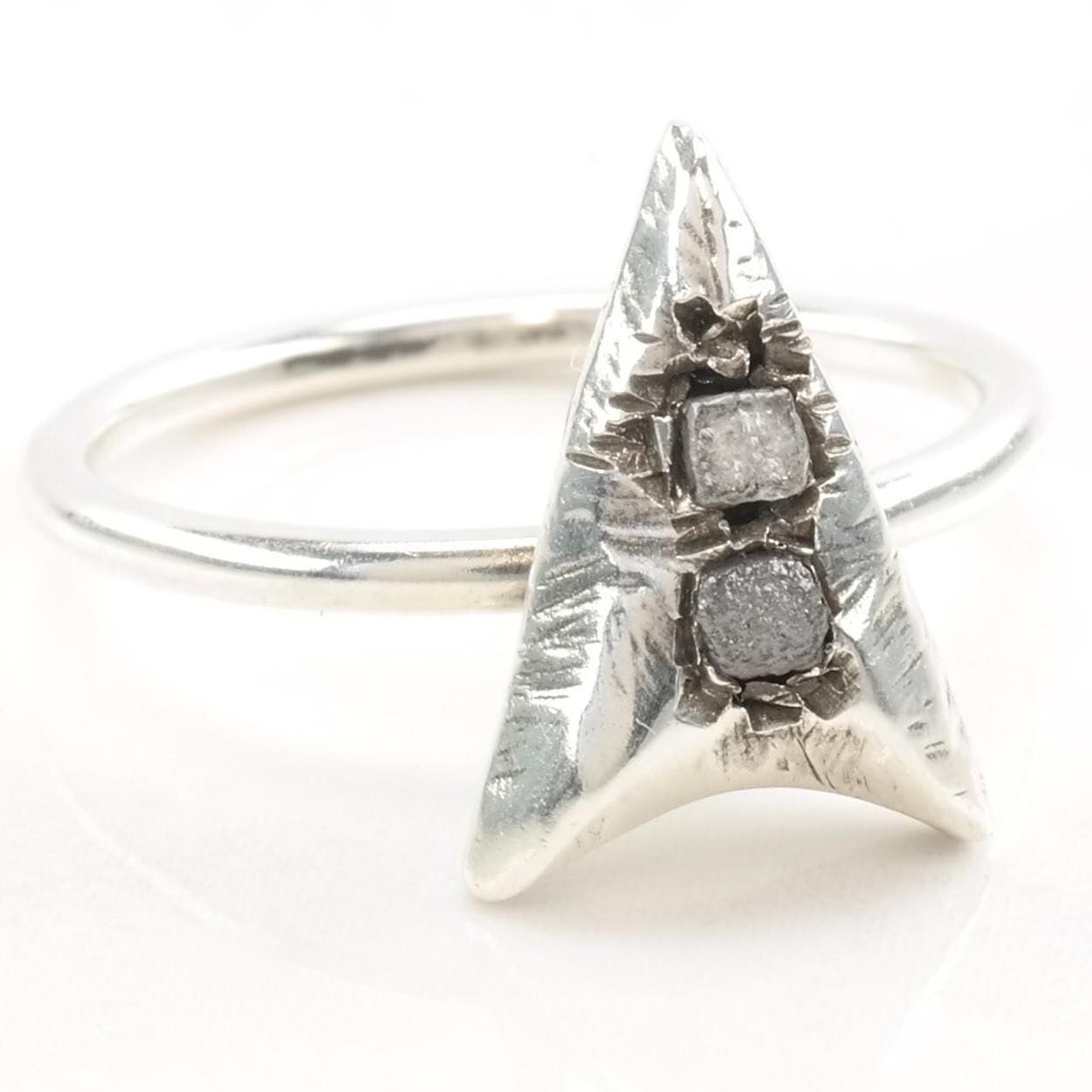 Vintage Silver Ring Raw Uncut Diamonds Arrow Size 8 1/2