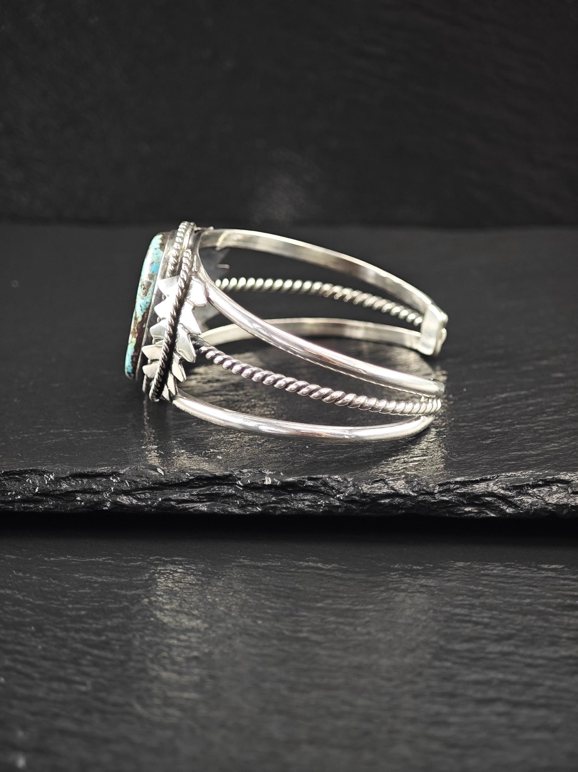 Vintage Southwest, Natural Turquoise Cuff Bracelet Sterling Silver