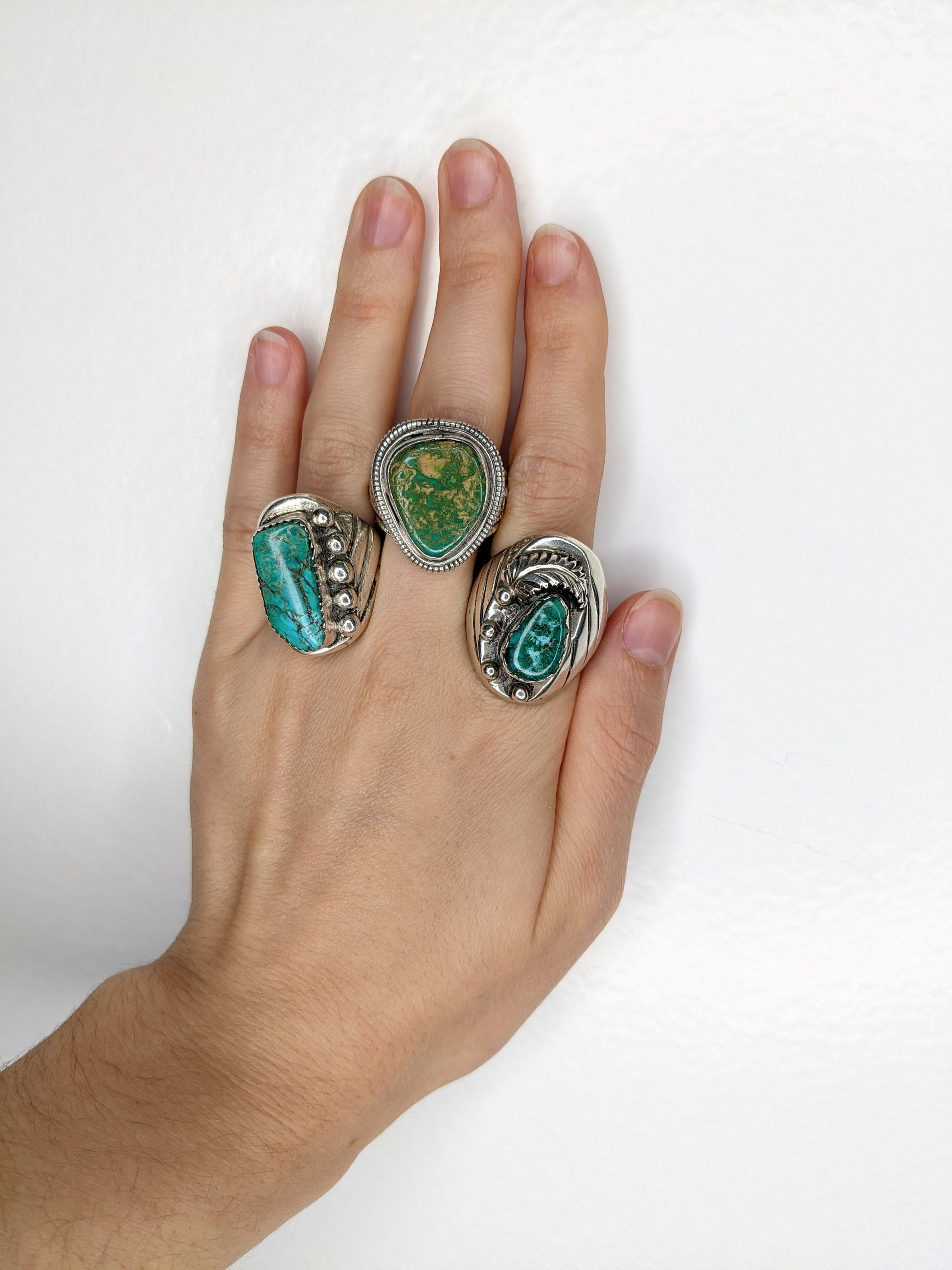 Vintage Southwest Ring Turquoise Leaf Sterling Silver Size 10