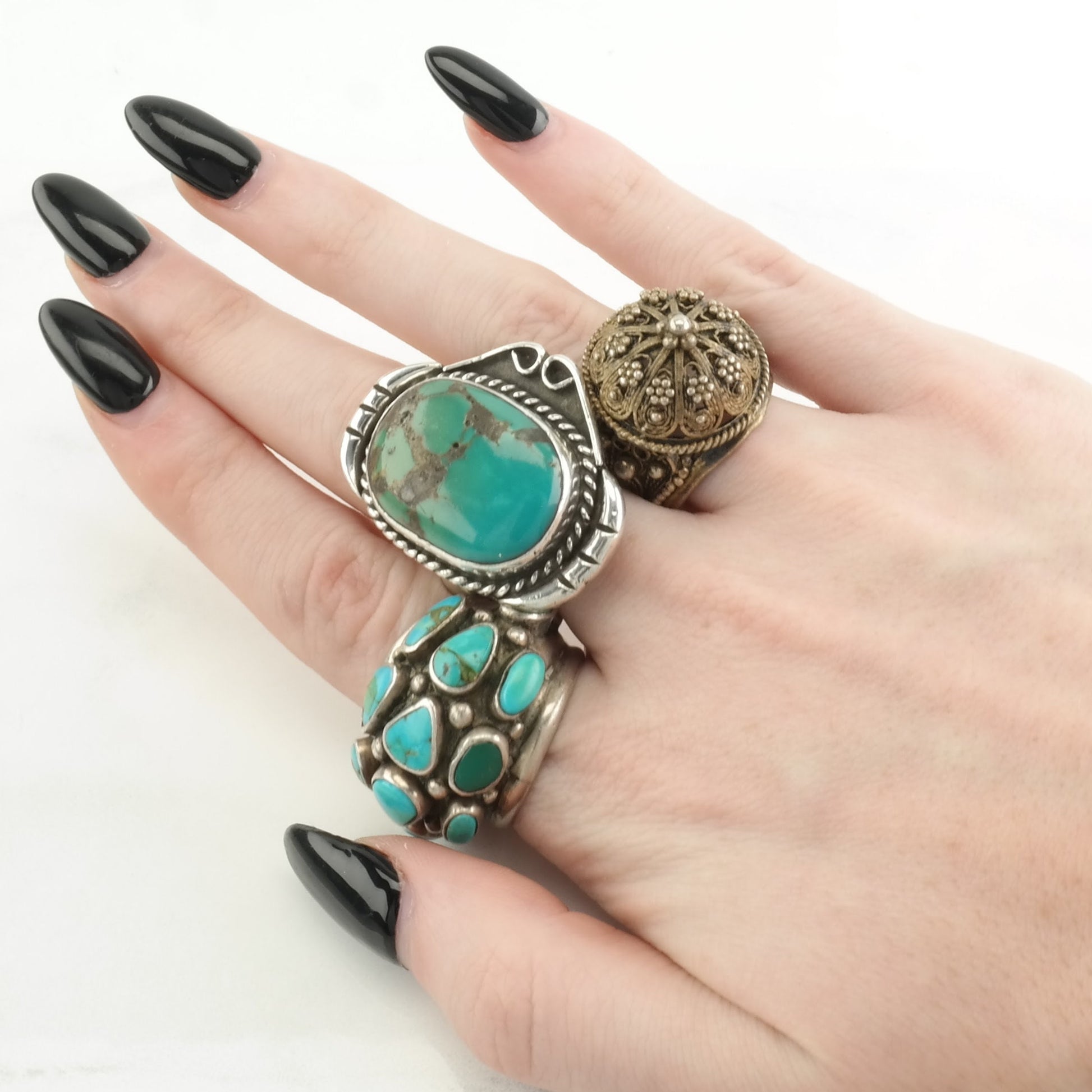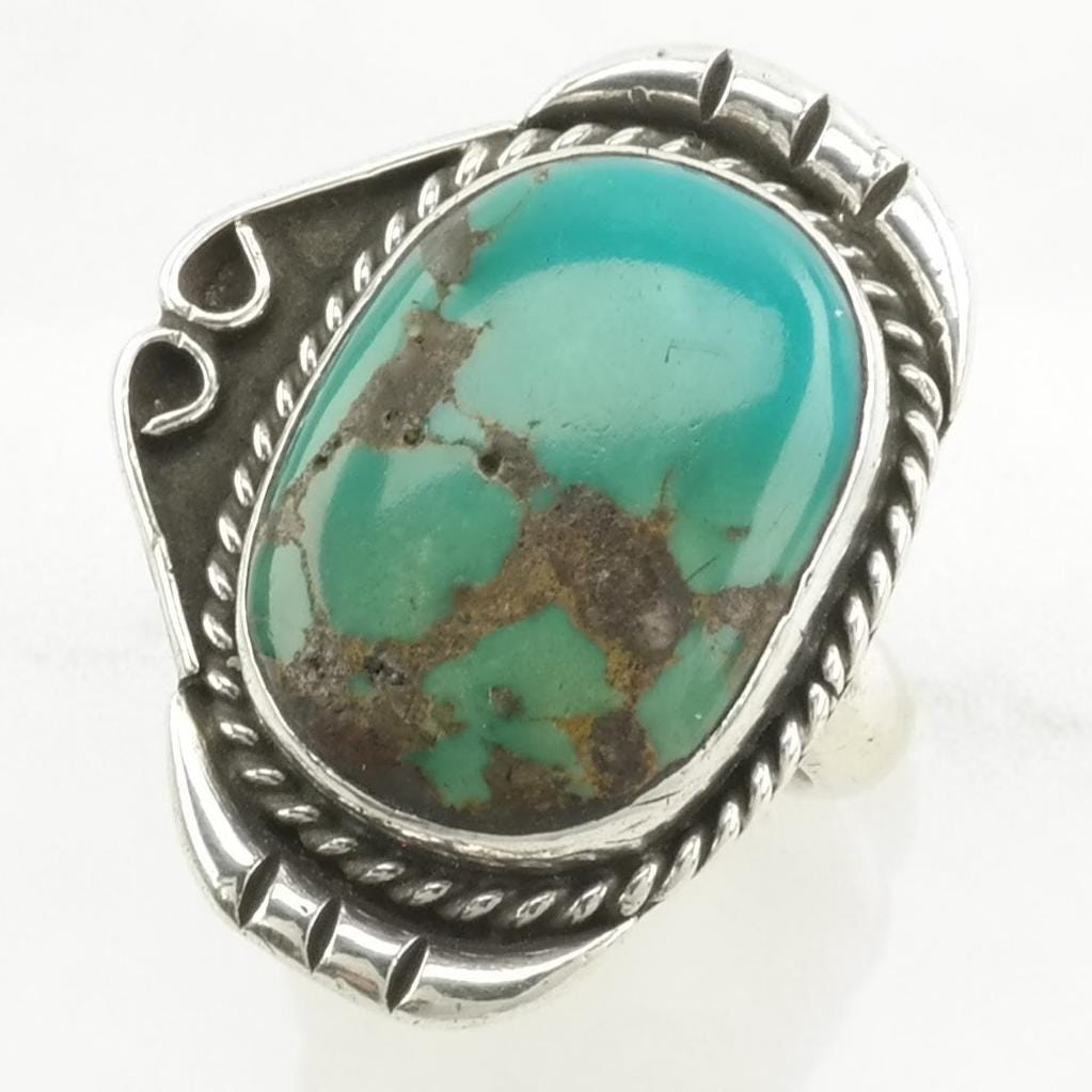 Vintage Southwest Silver Ring Turquoise Large Sterling Blue Size 8 1/2
