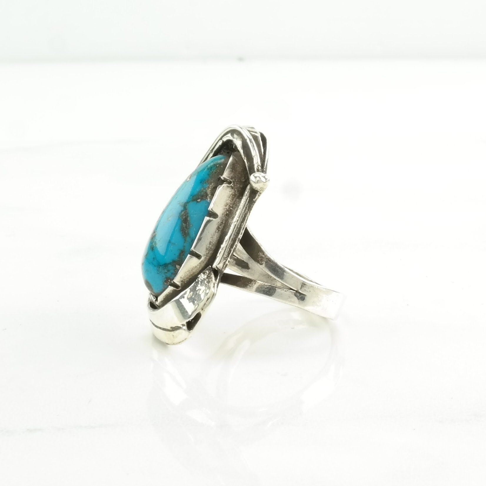Vintage Southwest Silver Ring Turquoise Leaf Sterling Blue Size 7 1/2