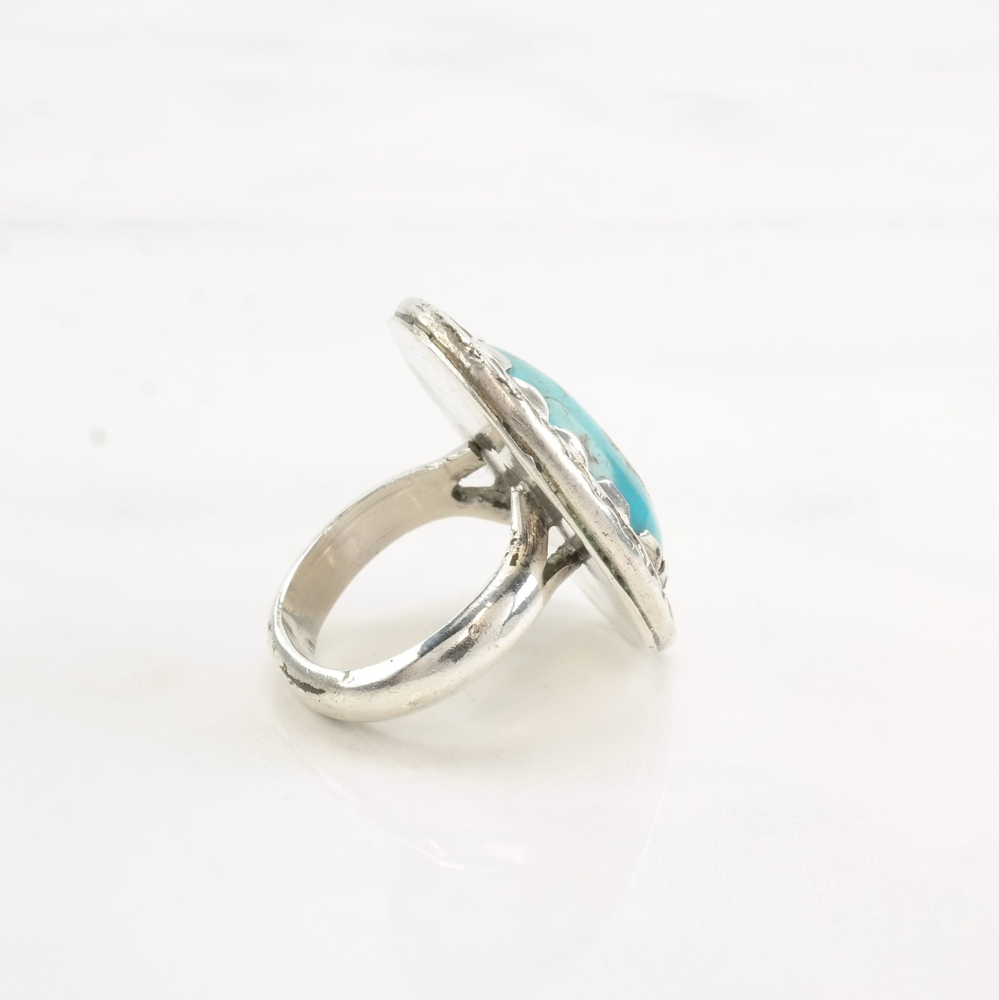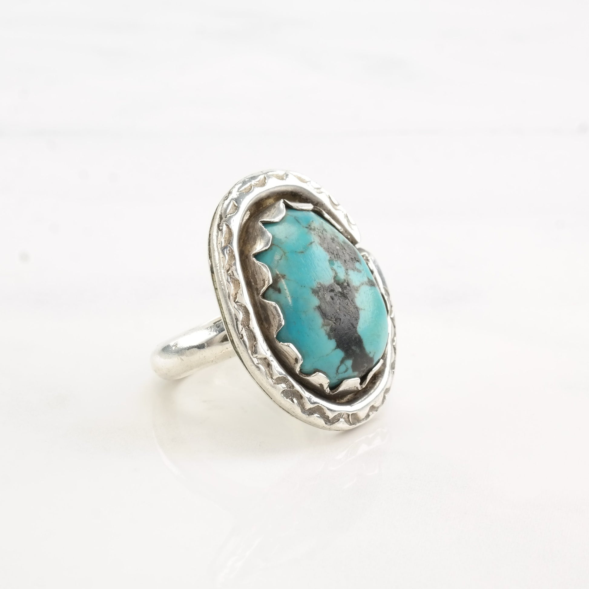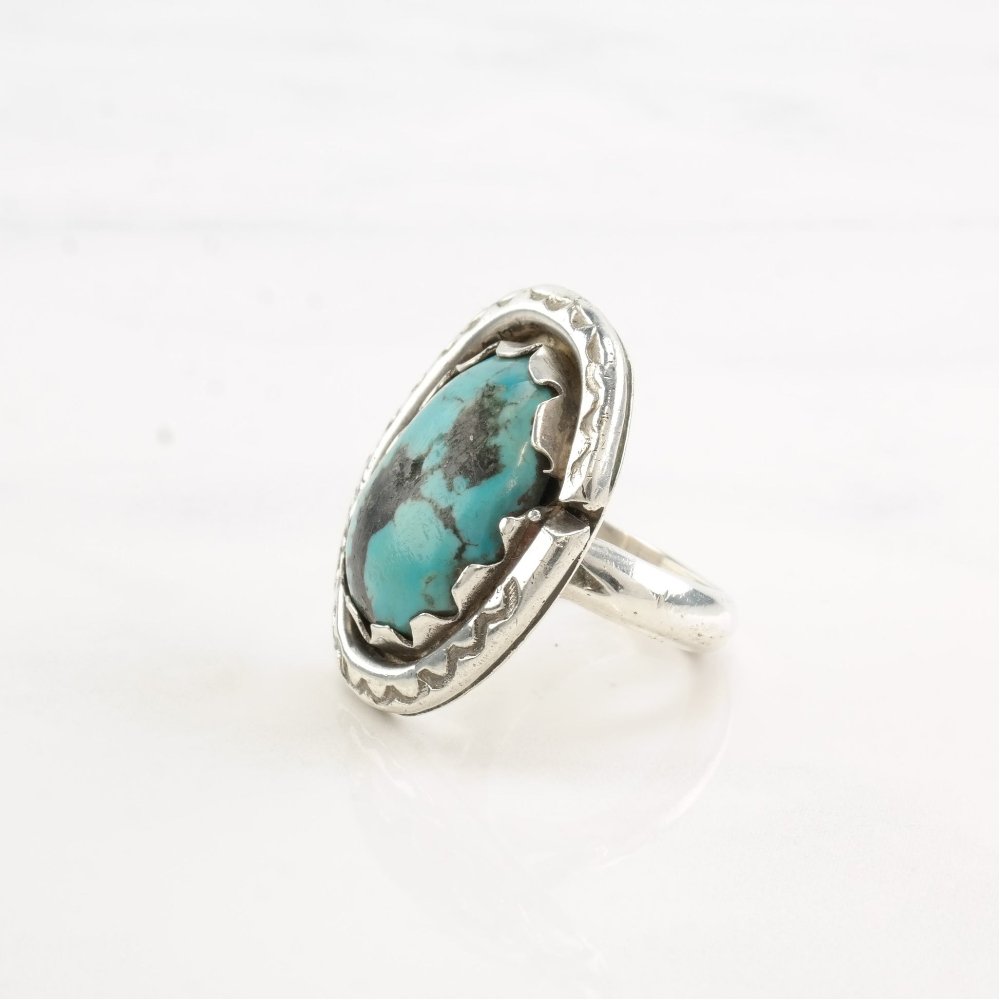 Vintage Southwest Silver Ring Turquoise Oval Sterling Size 6