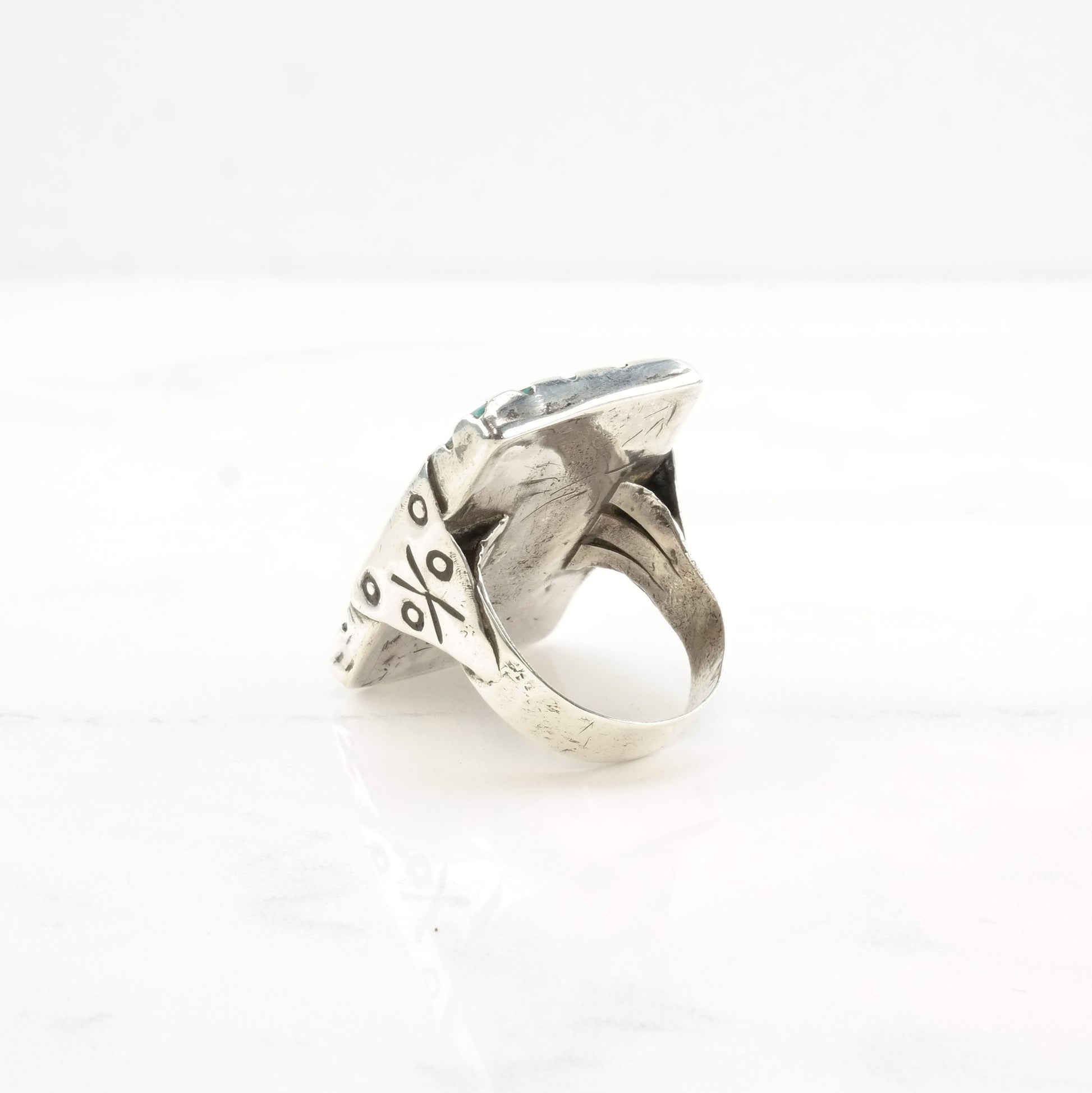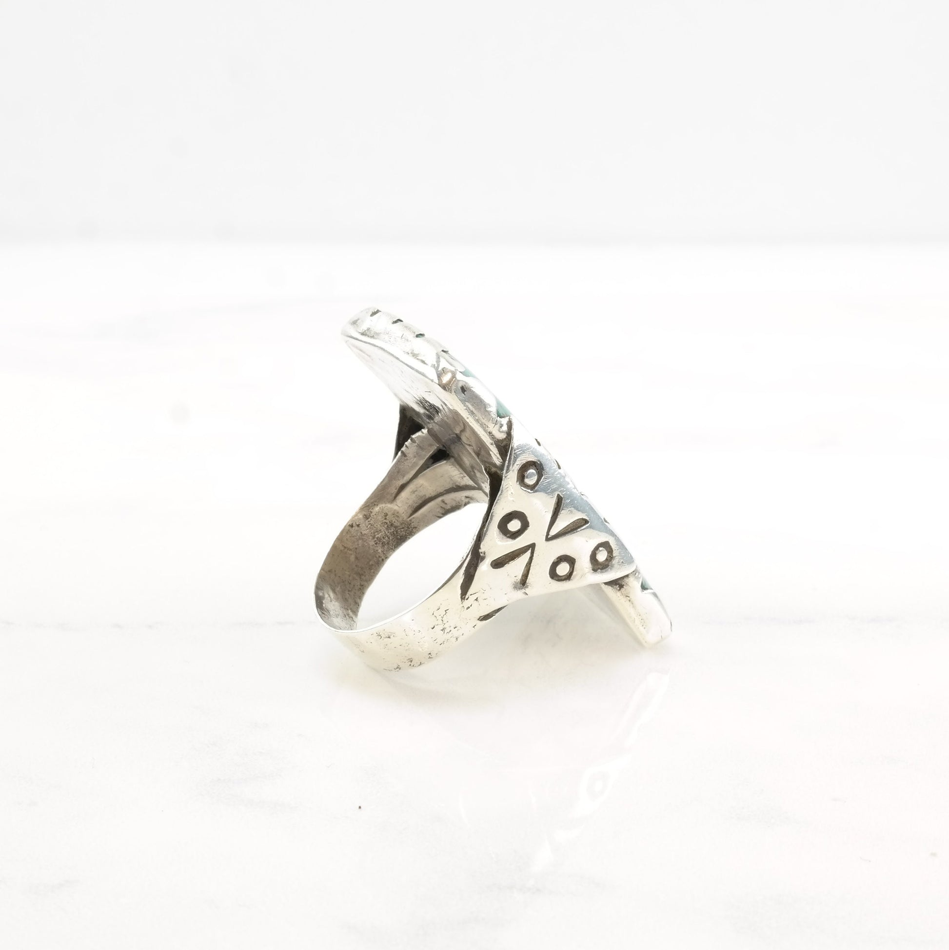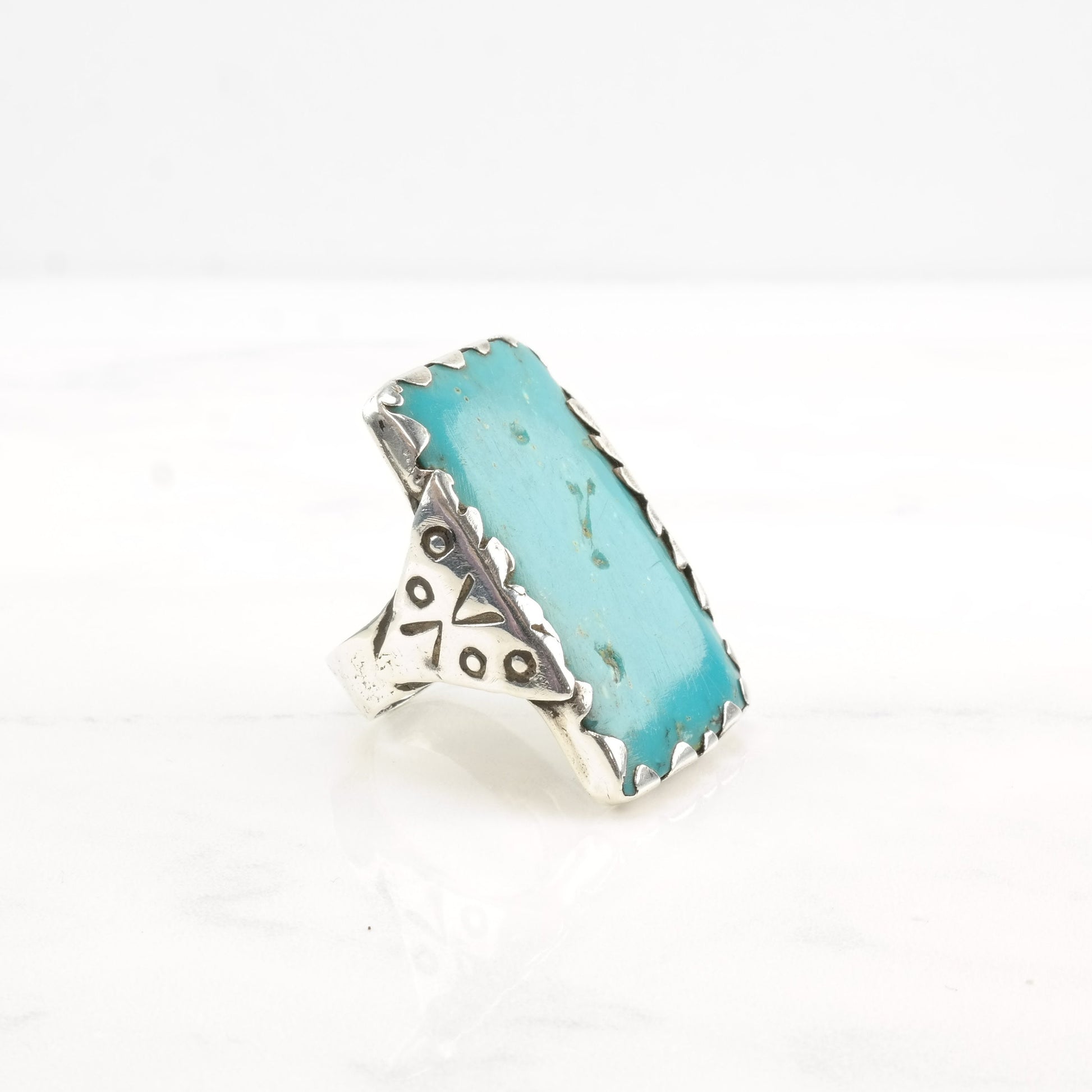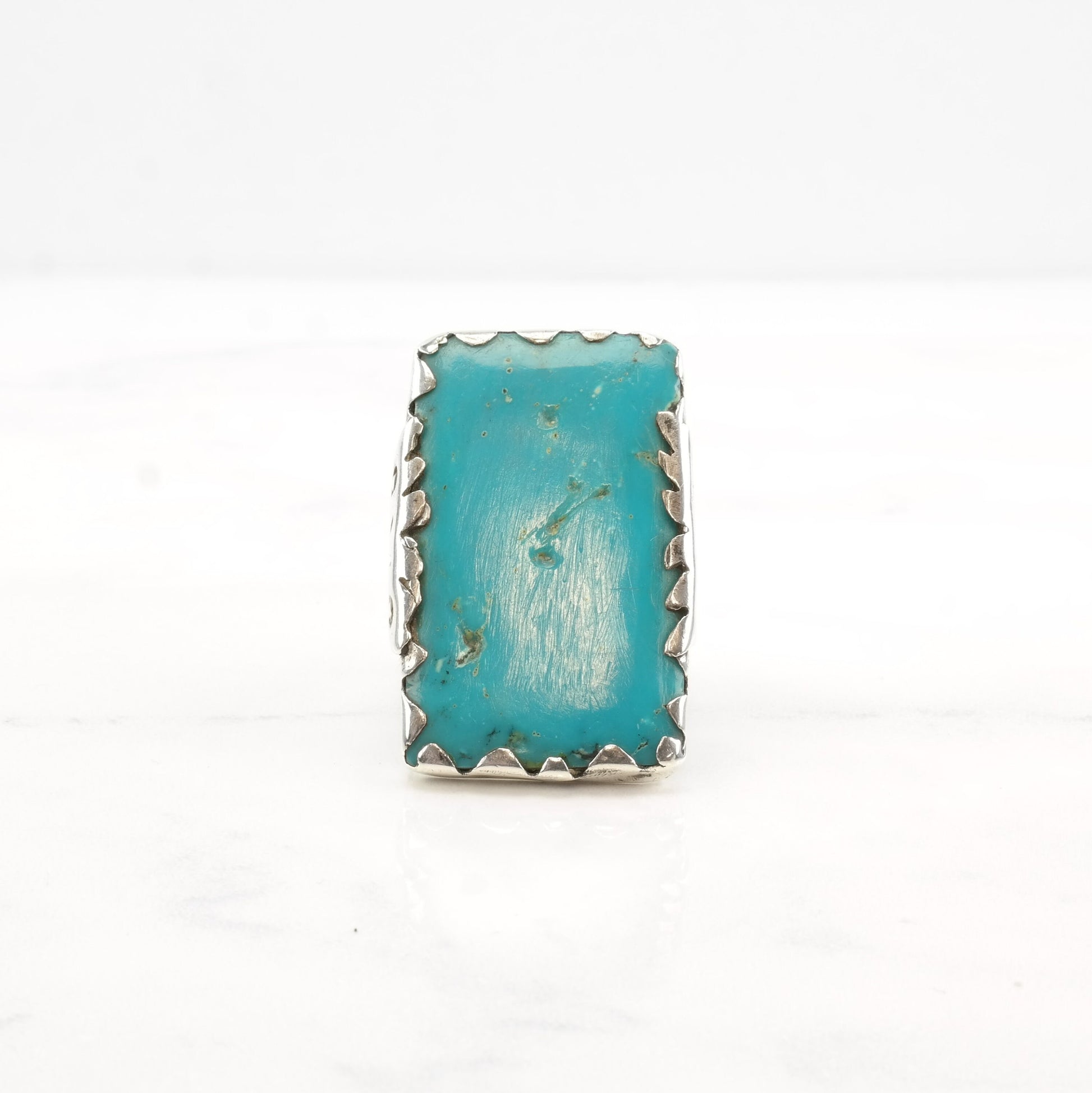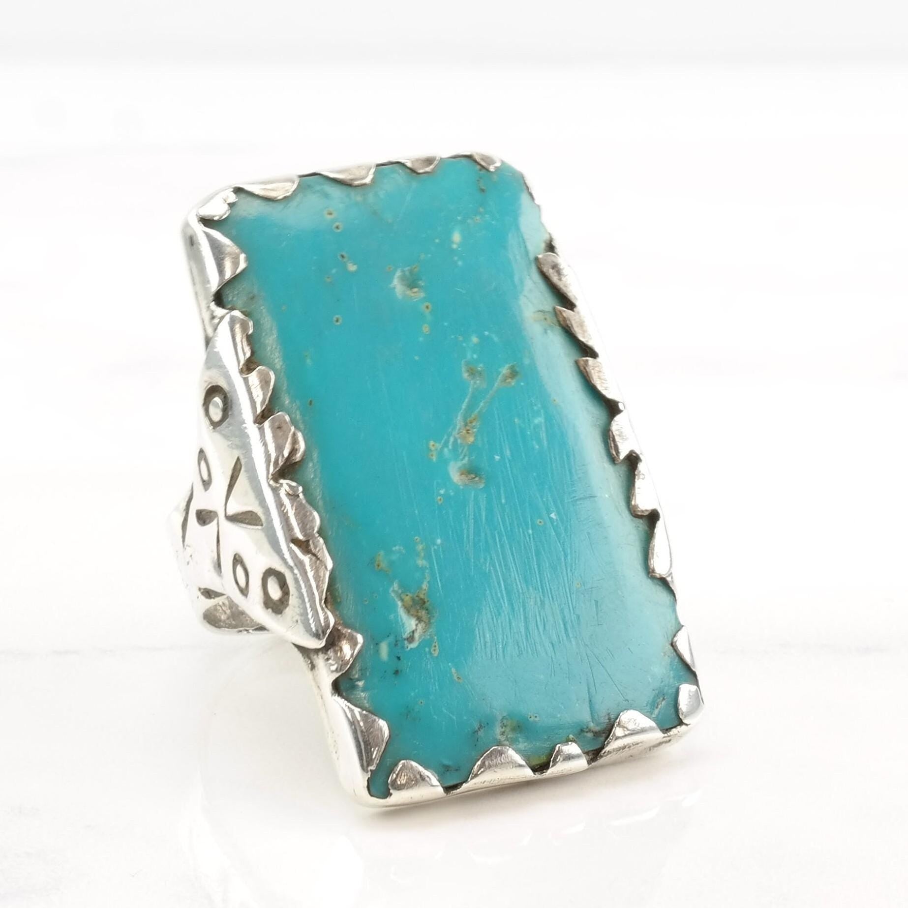 Vintage Southwest Silver Ring Turquoise Rectangle Large Sterling Size 11
