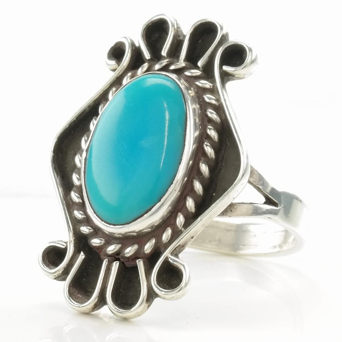 Vintage Southwest Silver Ring Turquoise Shadowbox Sterling Size 8