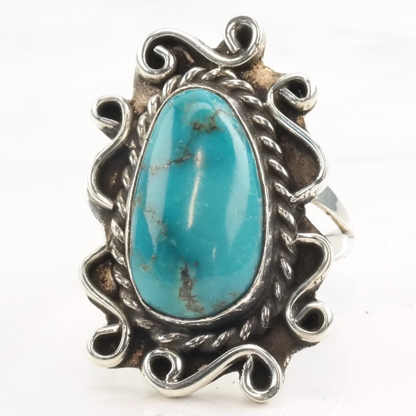Vintage Southwest Silver Ring Turquoise Size 8 1/4