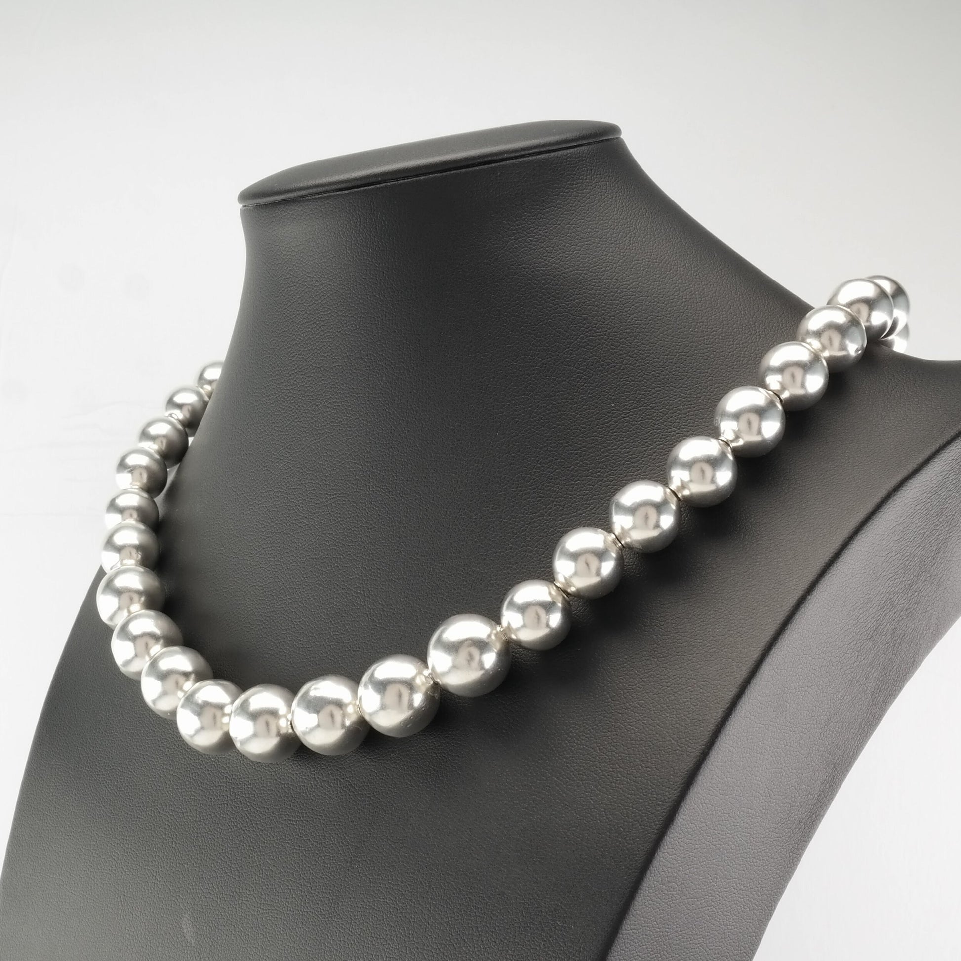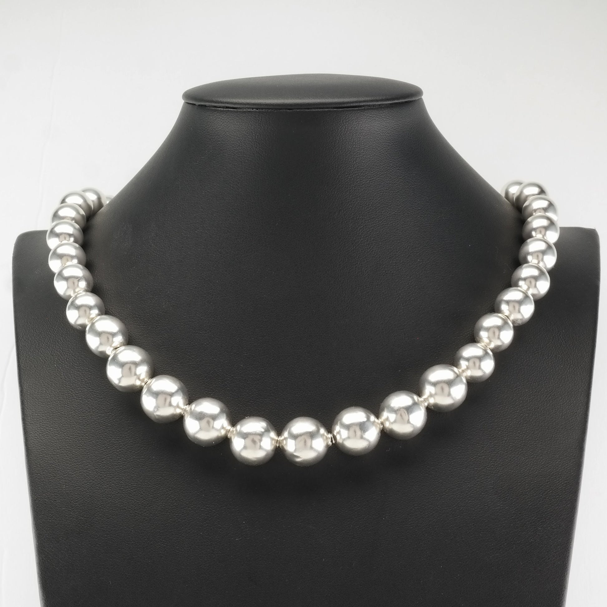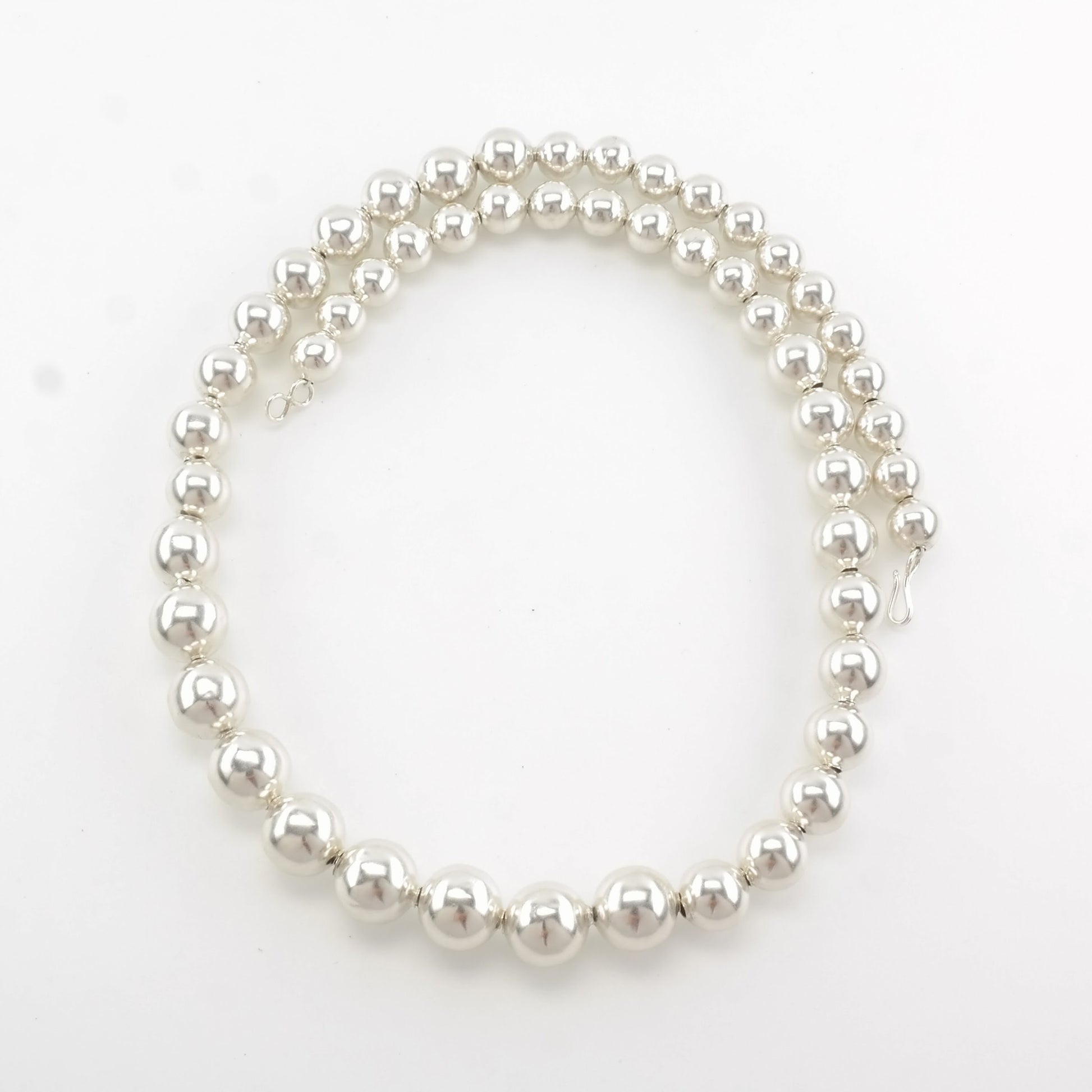 Vintage Southwest Sterling Silver 14 - 10mm Graduating Bead Necklace