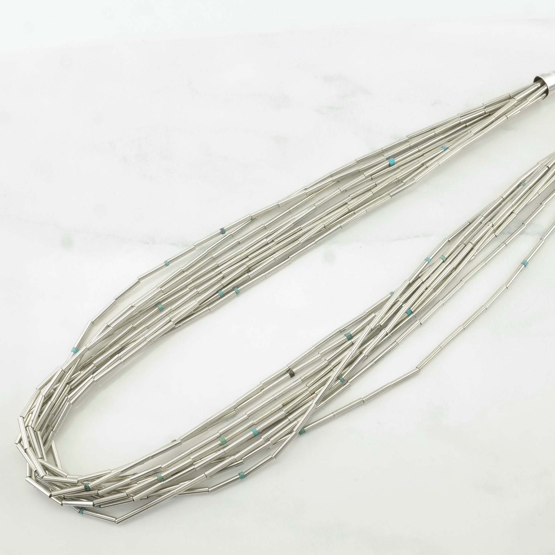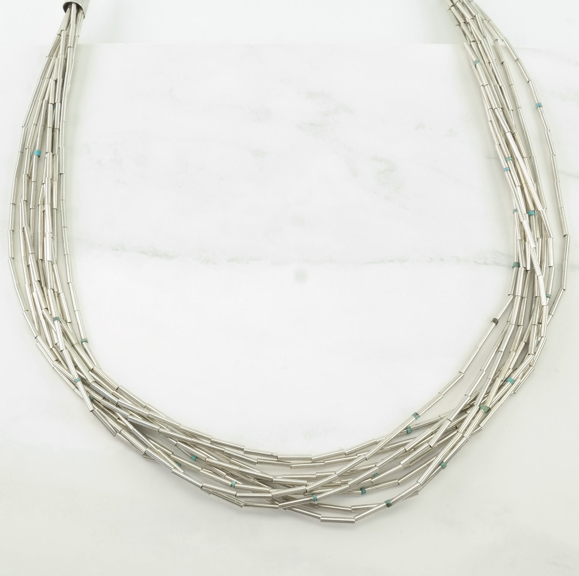 Vintage Southwest Sterling Silver Blue Turquoise Liquid Silver Necklace
