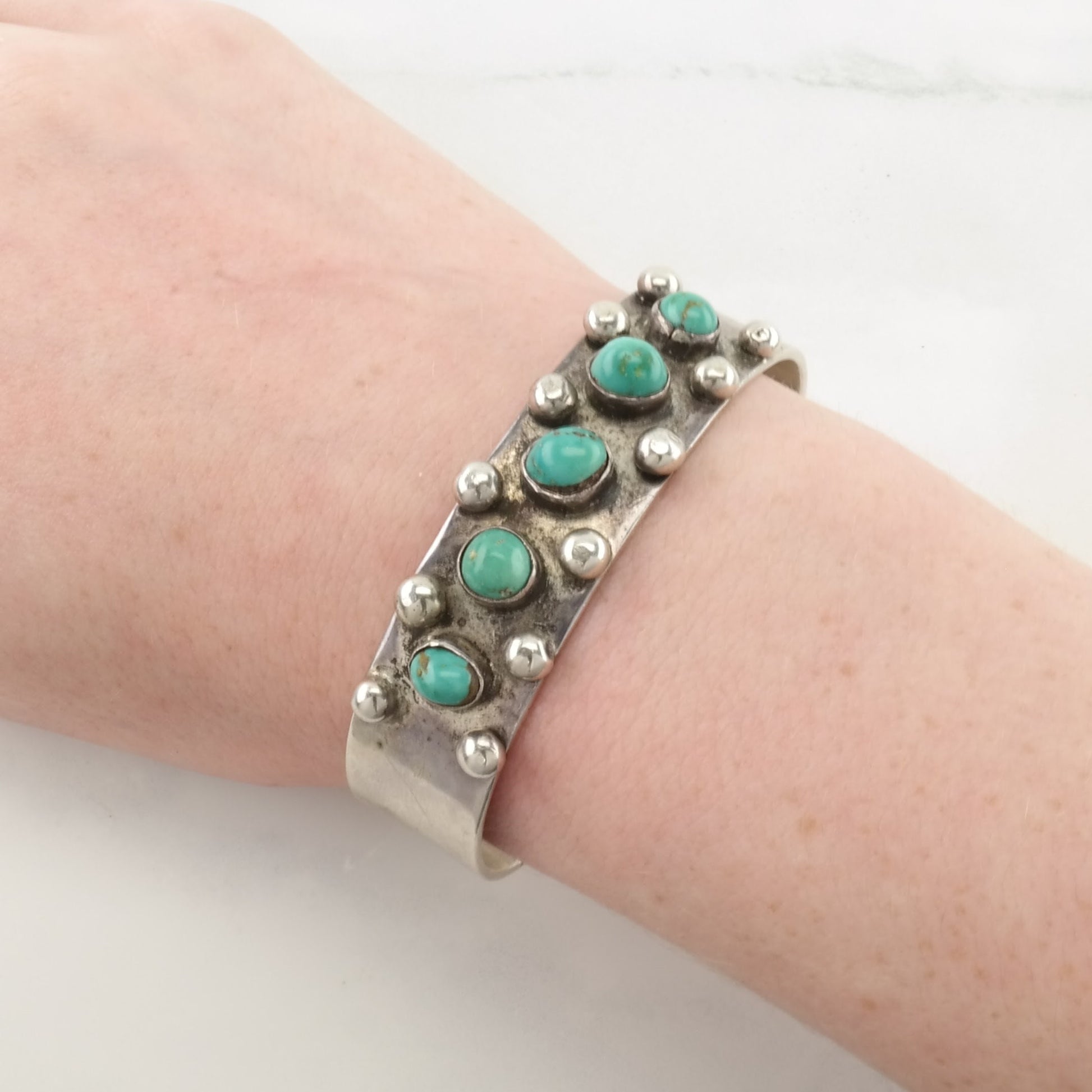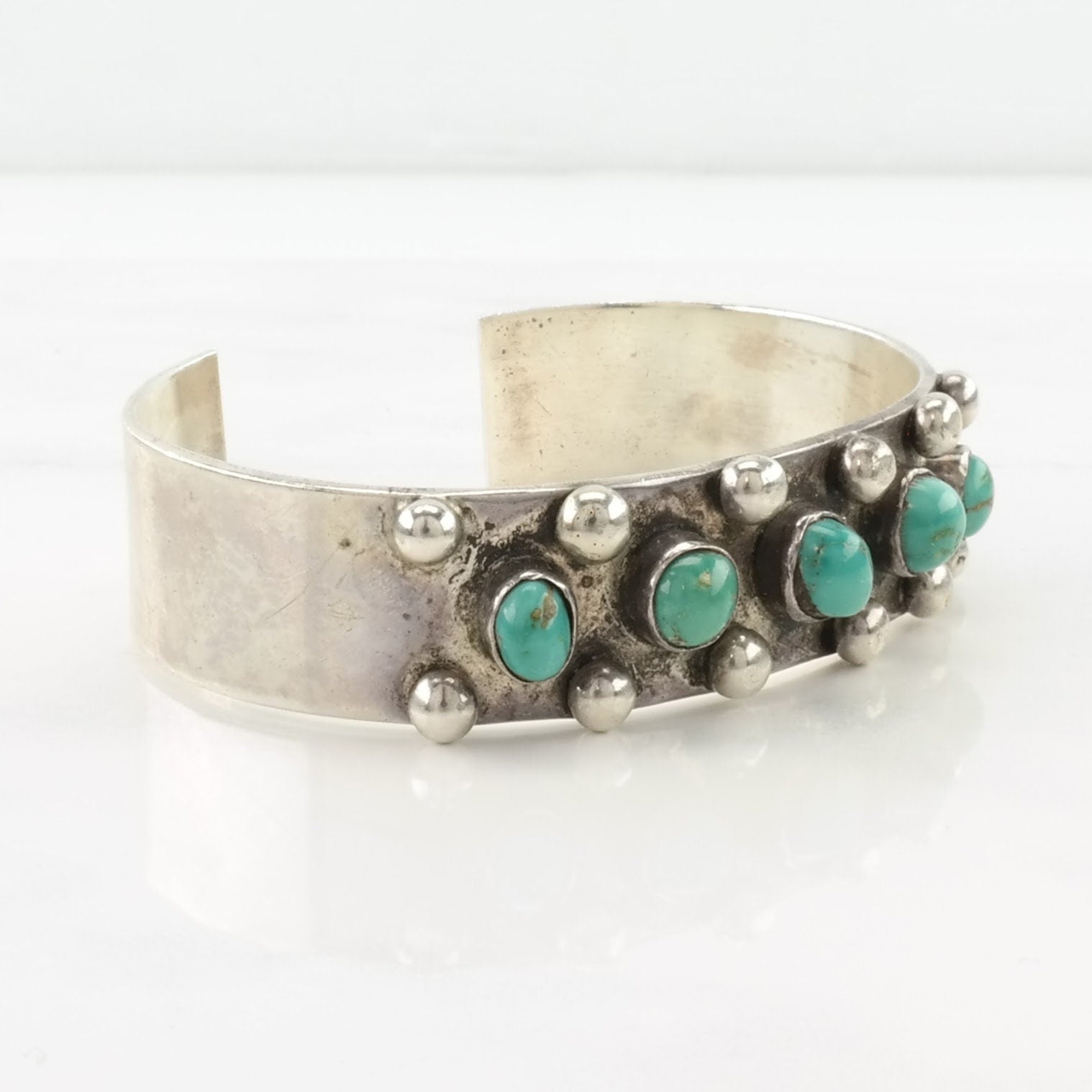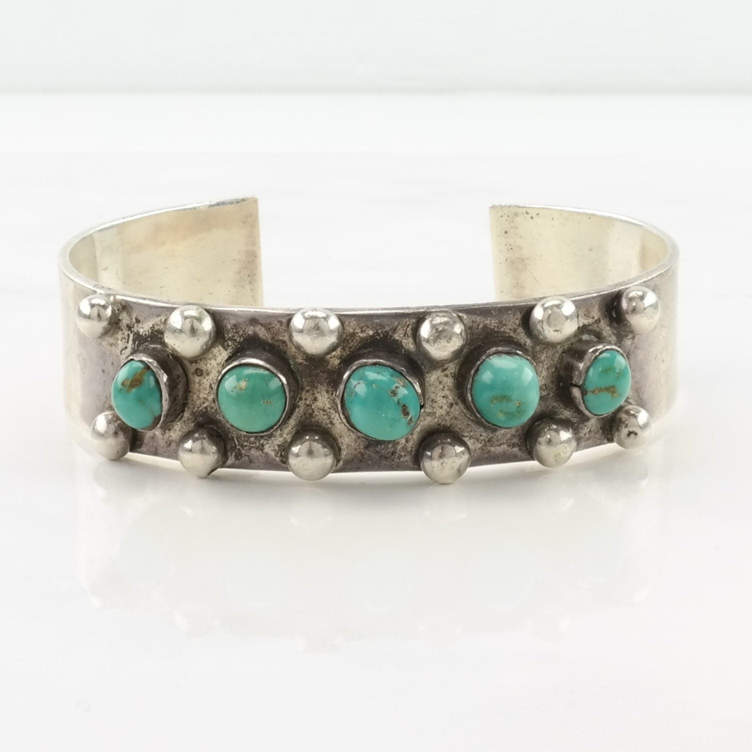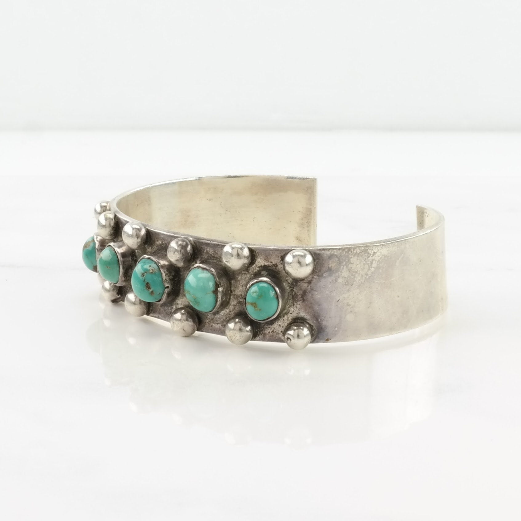 Vintage Southwest Sterling Silver Cuff Bracelet Blue Turquoise 5 Stone