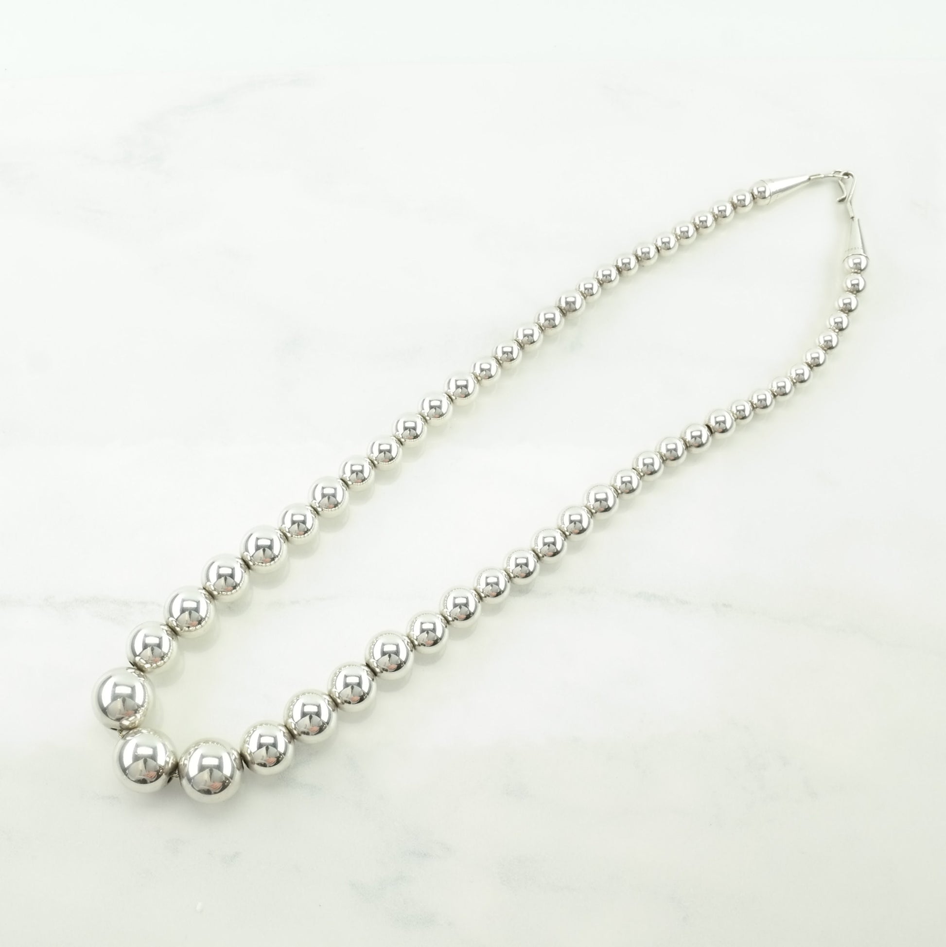 Vintage Southwest Sterling Silver Graduated Beads Seamless Beaded Necklace