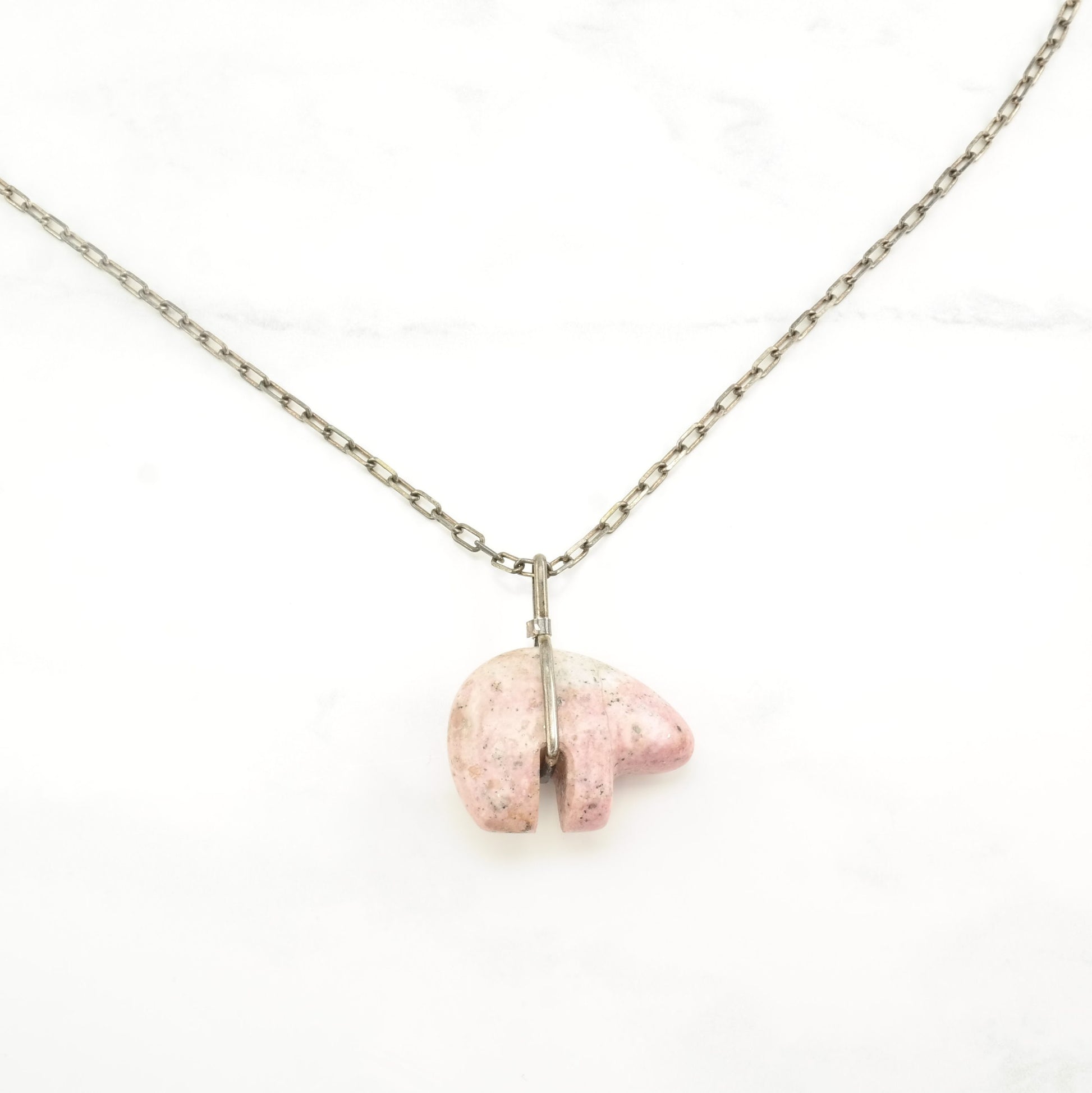 Vintage Southwest Sterling Silver Pink Rhodonite Bear, Fetish Necklace