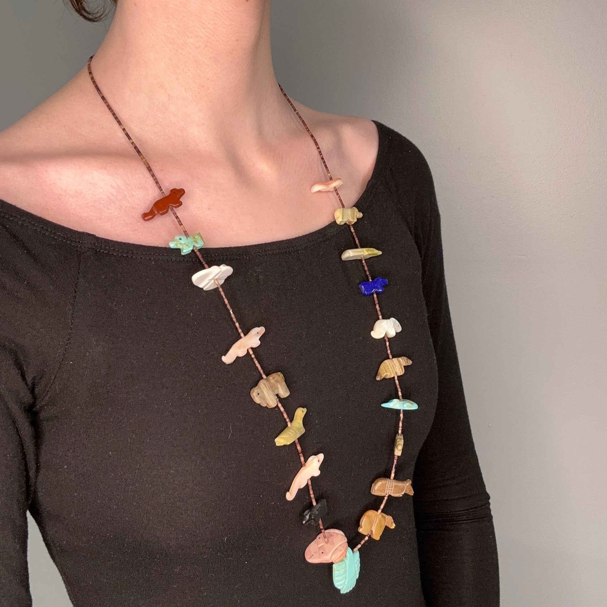 The stone/design of this necklace is Turquoise, MOP, Lapis Lazuli Animal, Heishi Natural, industry standard treatment if any