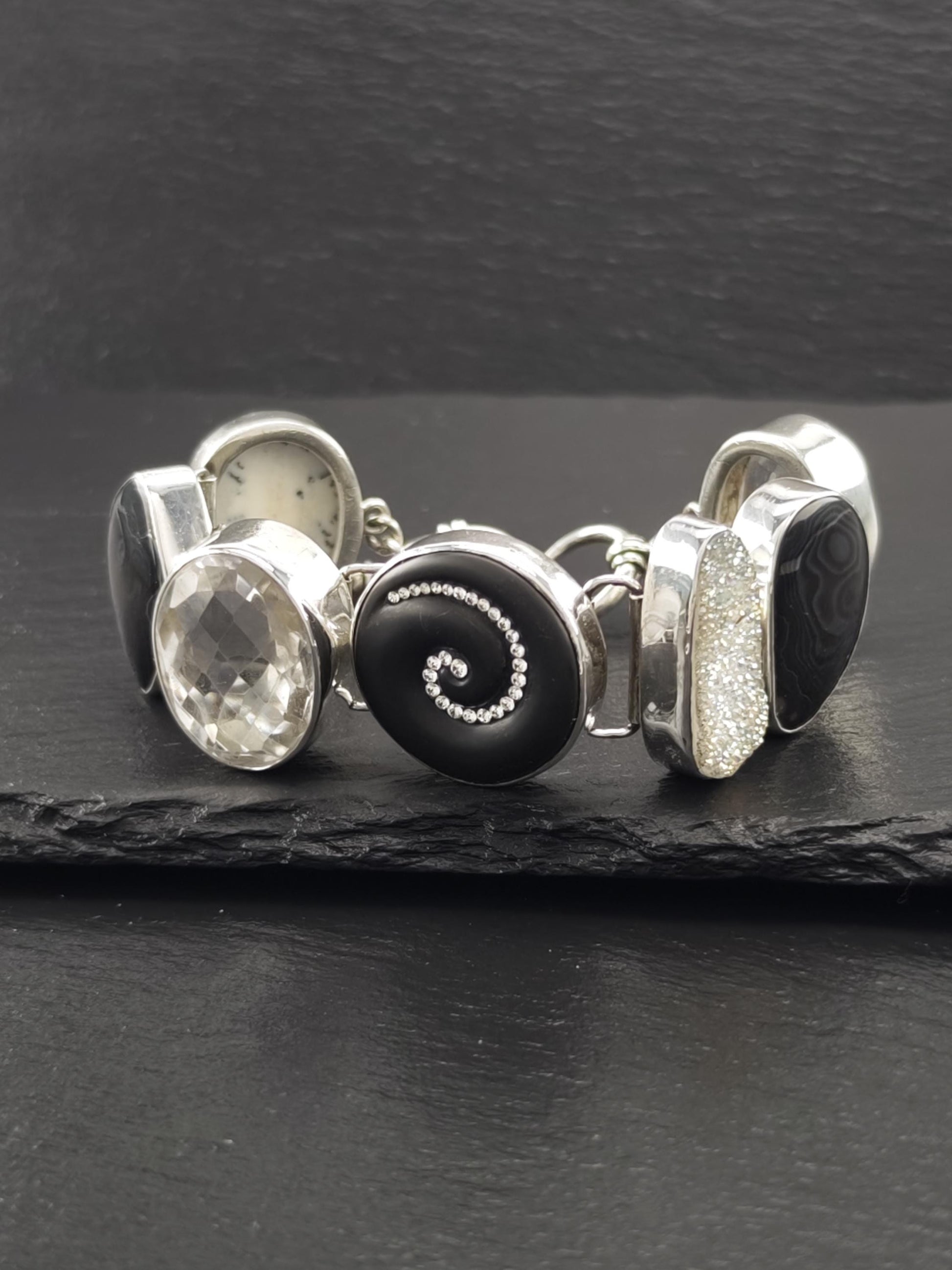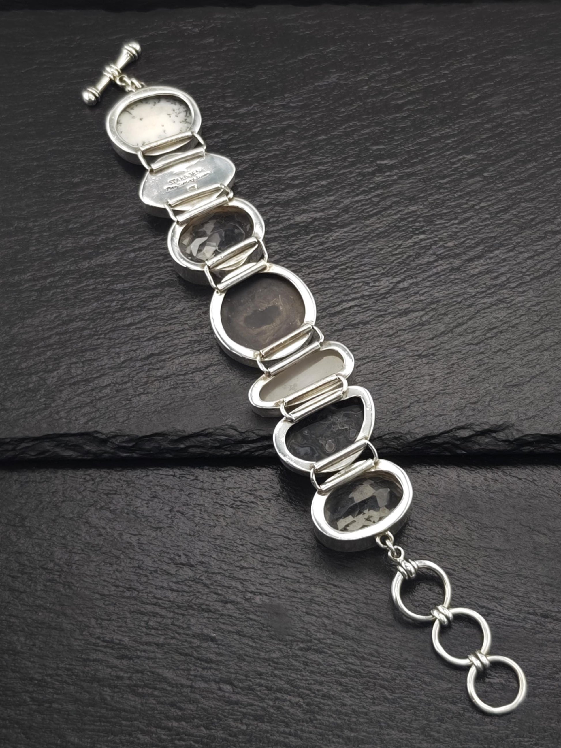 Condition is Good, cleaned/polished, some patina exits, age appropriate wear if any, Dendric Agate stone appears to have a natural fracture in it from the left side on the edge of the bezel.