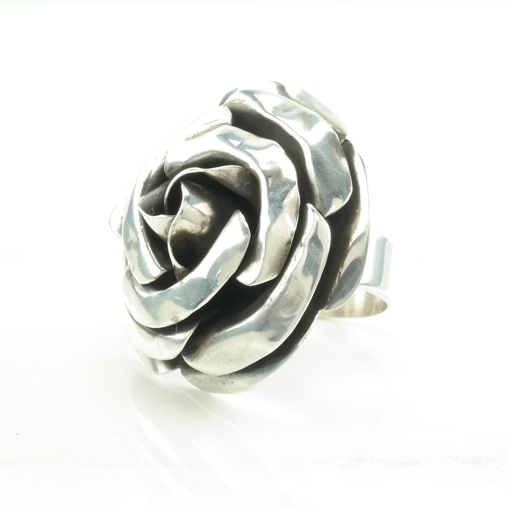 Vintage Statement Silver Ring Rose Large Sterling Size 11 1/2