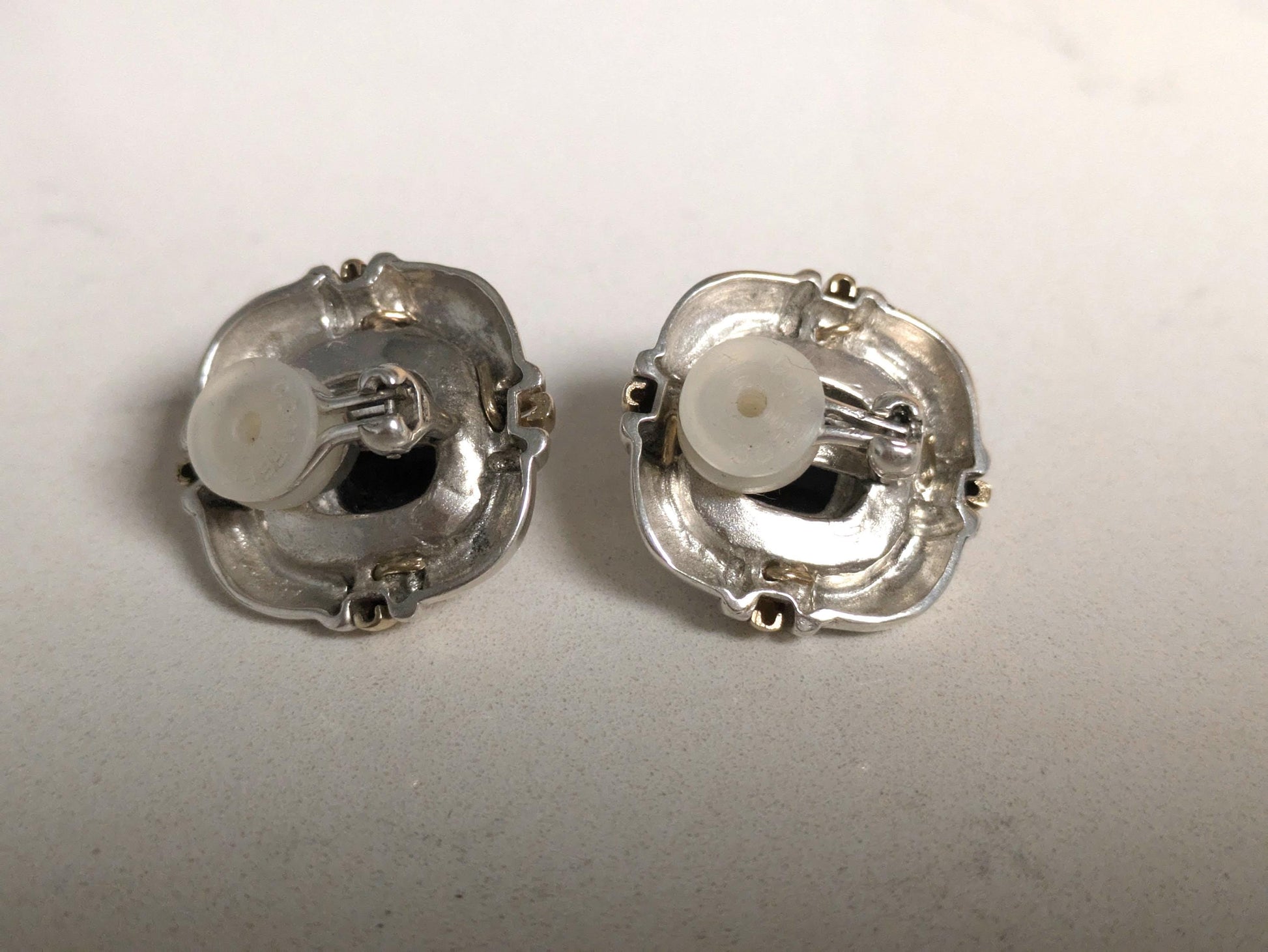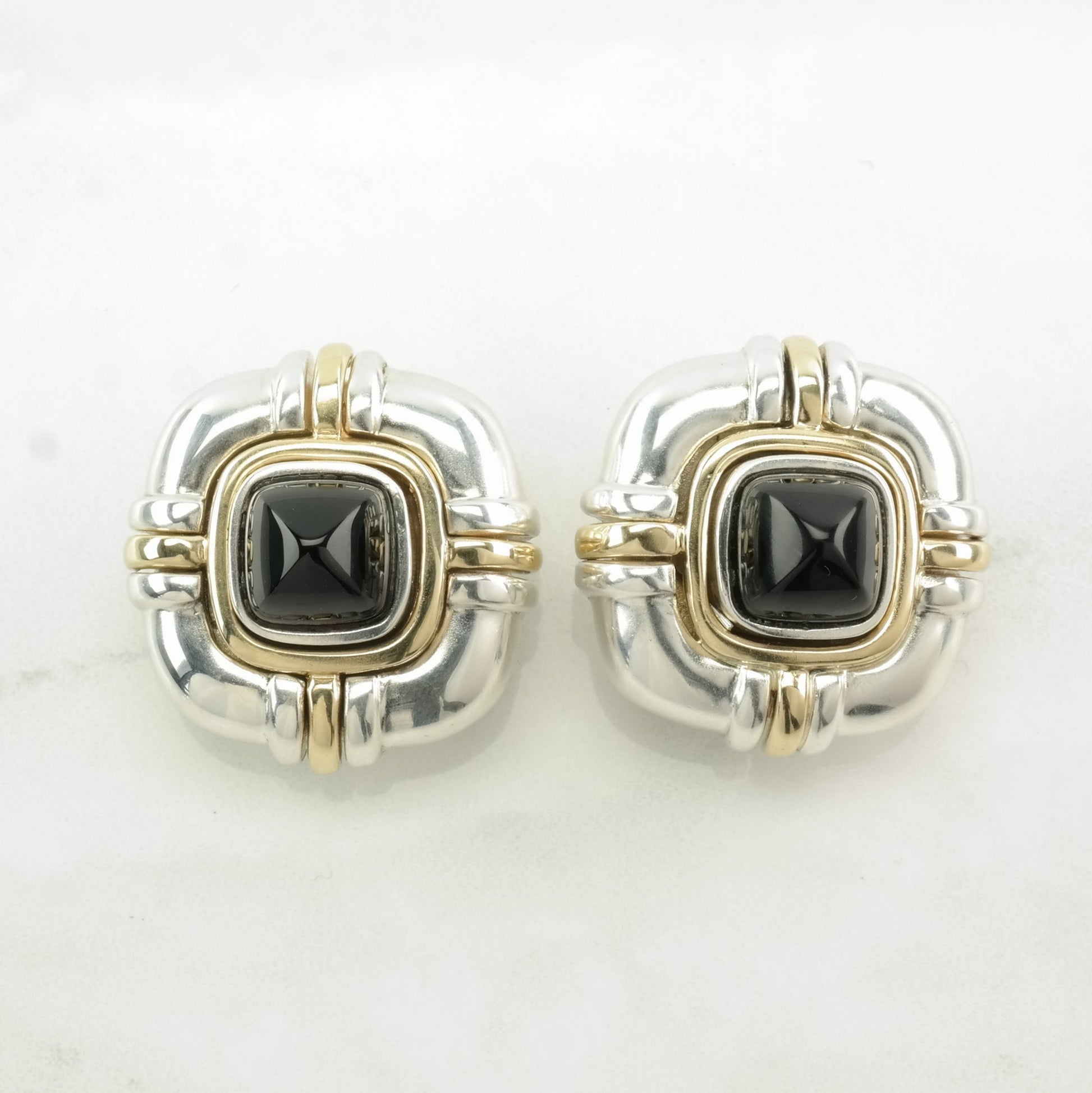 Make a statement with these striking vintage earrings from the 1990s. Crafted from luxurious sterling silver and accented with gleaming 18k gold, these earrings feature bold square black onyx gemstones that exude elegance and sophistication.