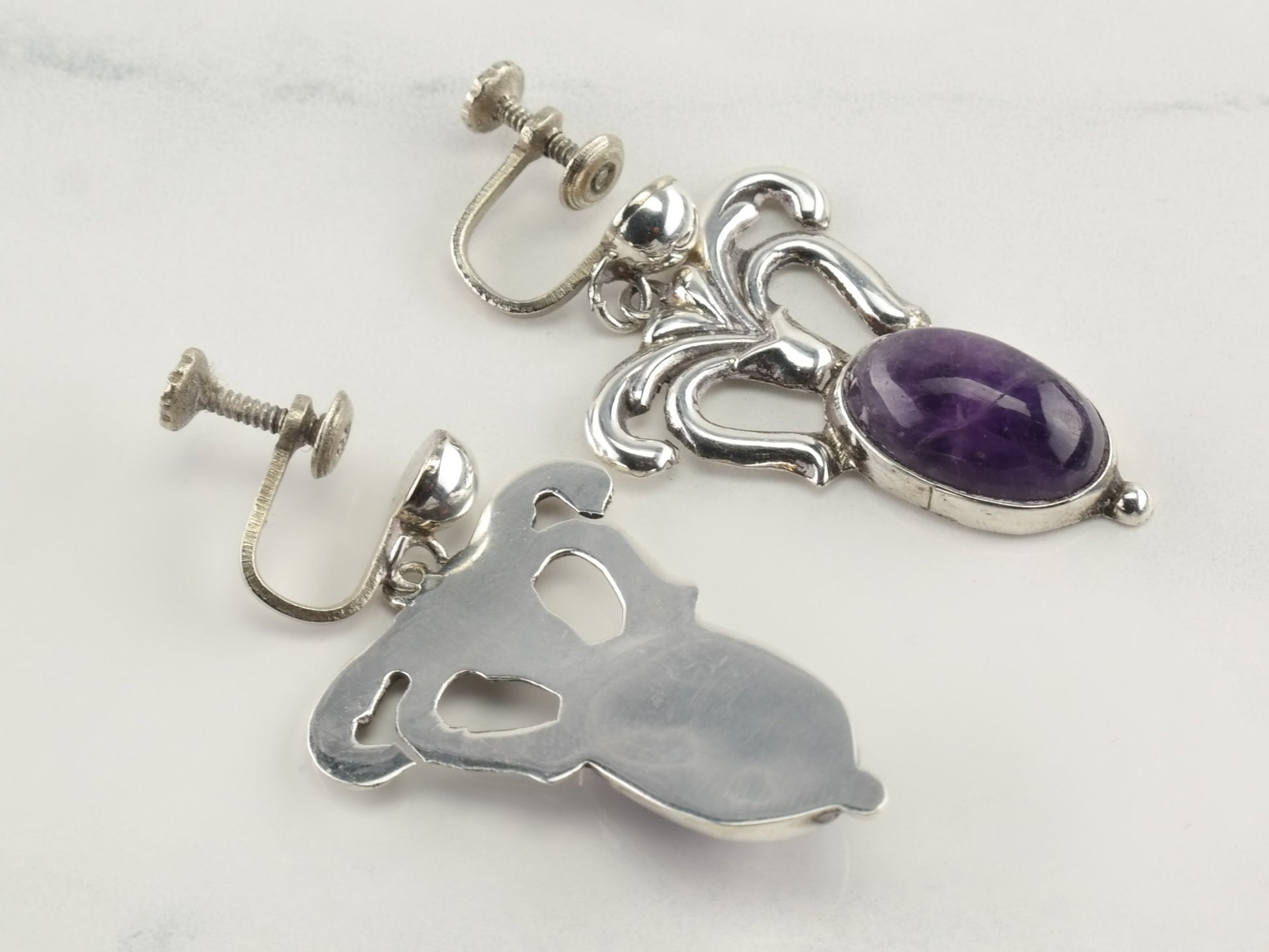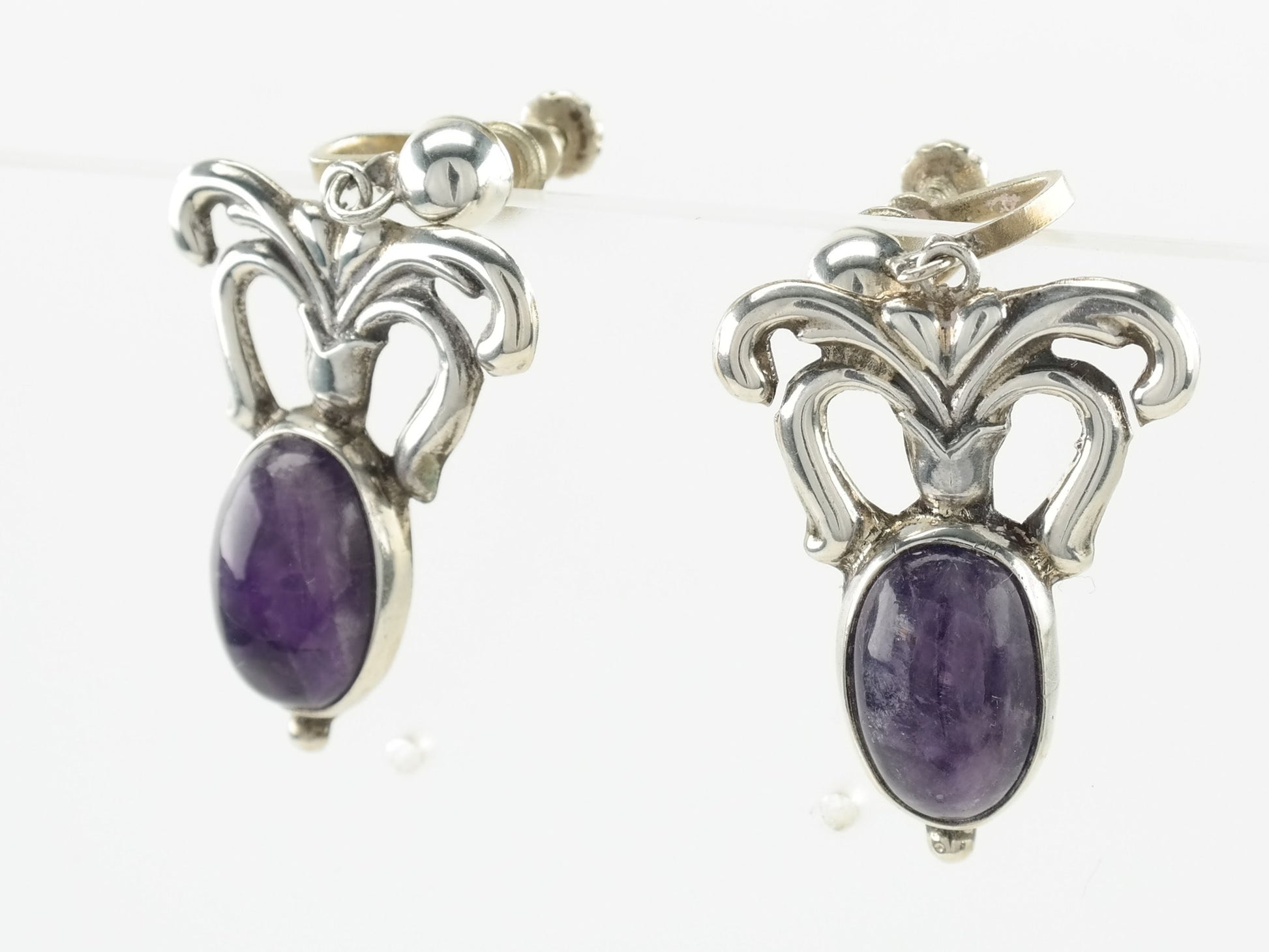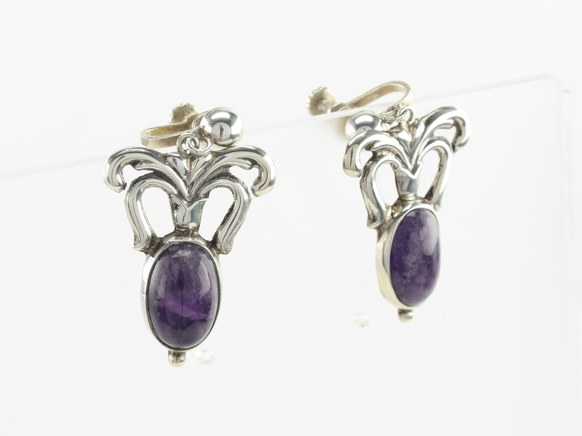 Vintage Sterling Silver Amethyst Earrings Screw Back