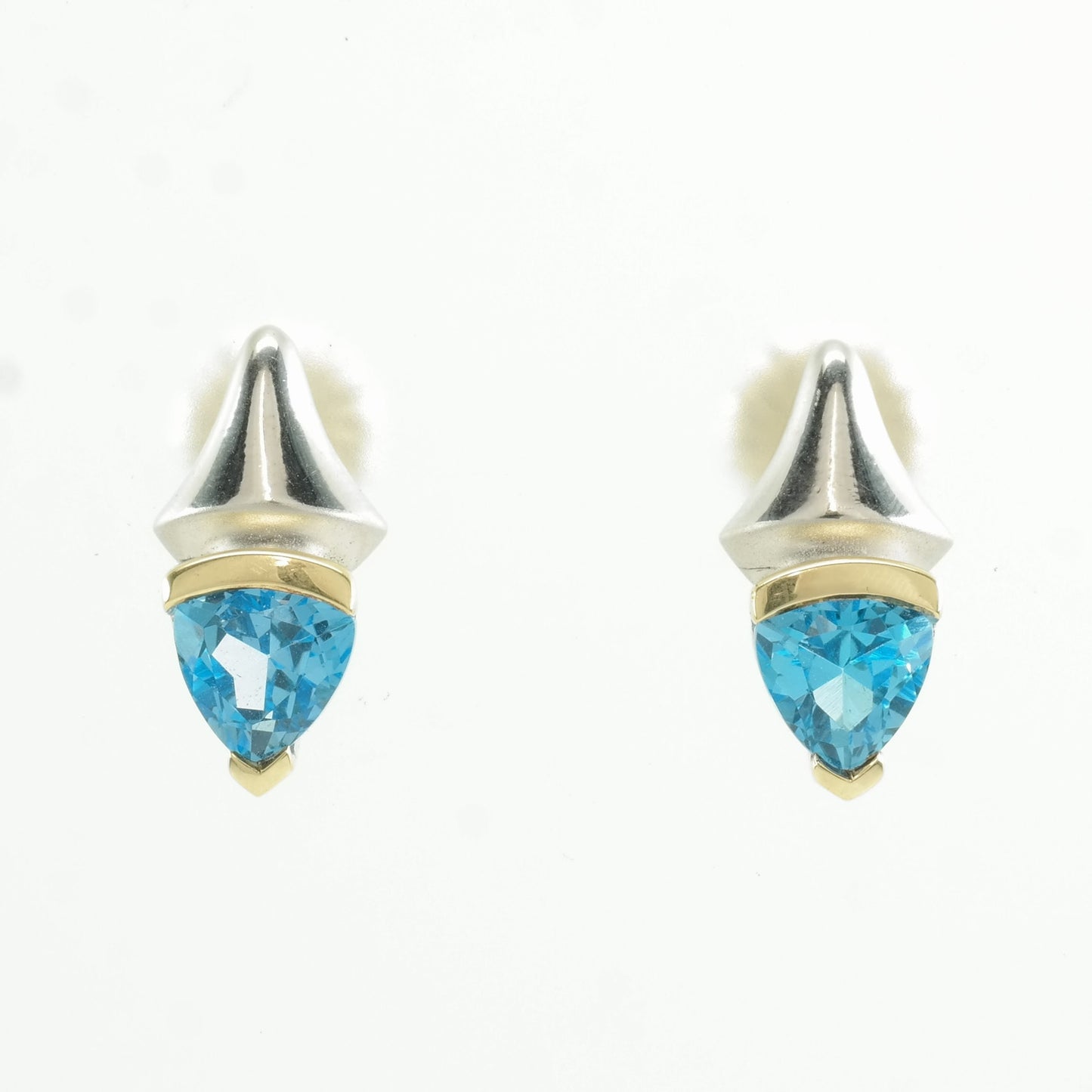 Sterling Silver Blue Topaz 18K Gold Accent Earrings Stud ER2288
