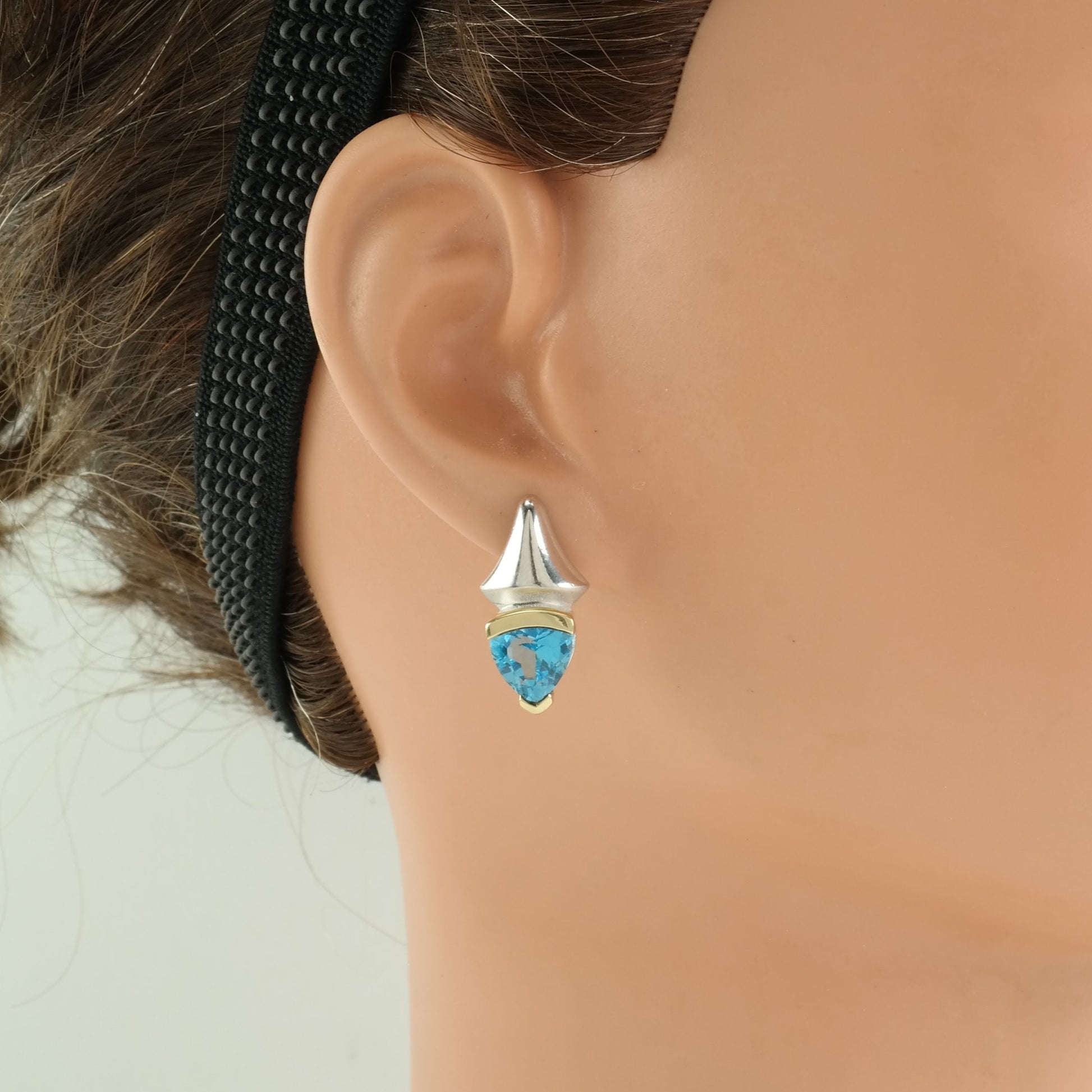 Vintage Sterling Silver Blue Topaz 18K Gold Accent Earrings Stud