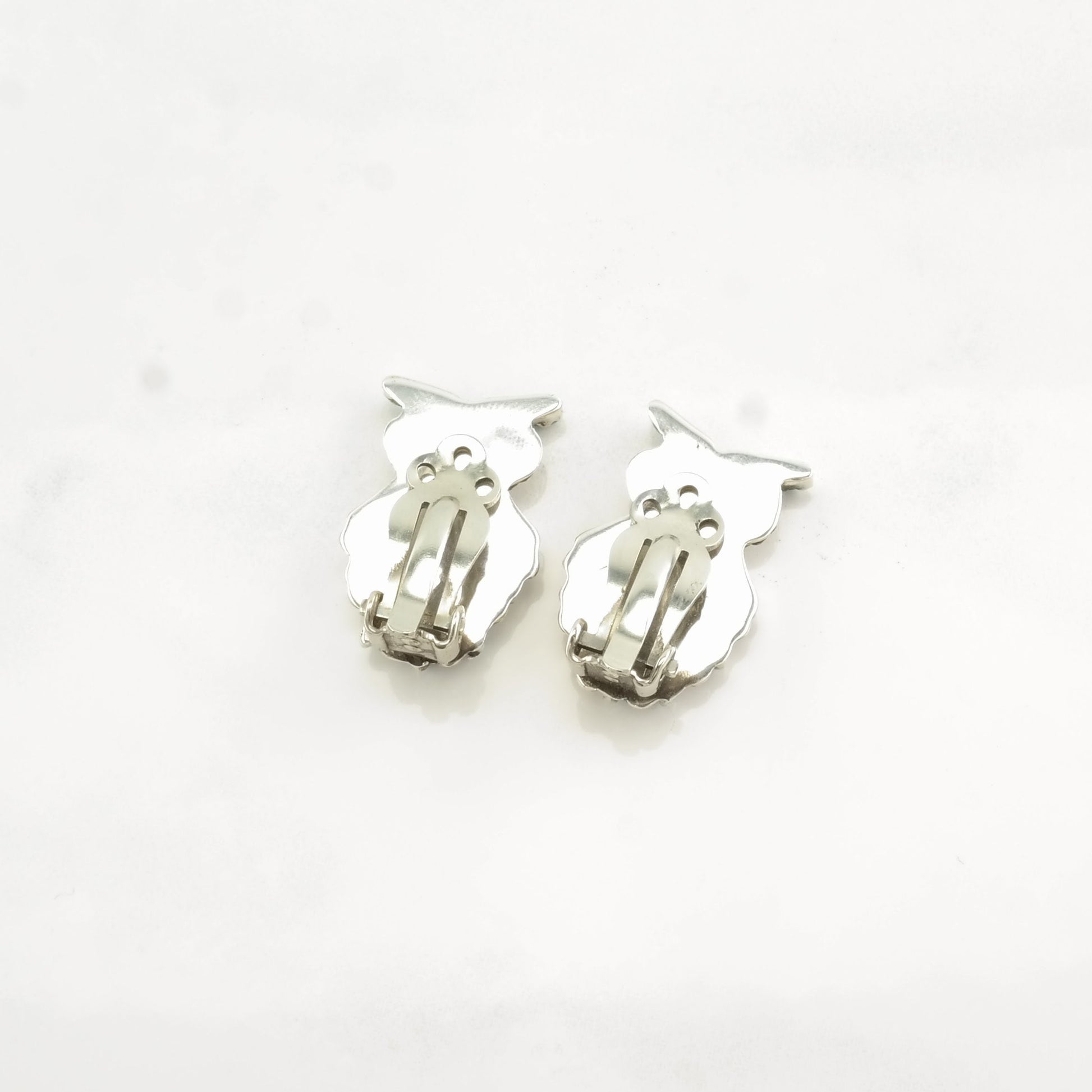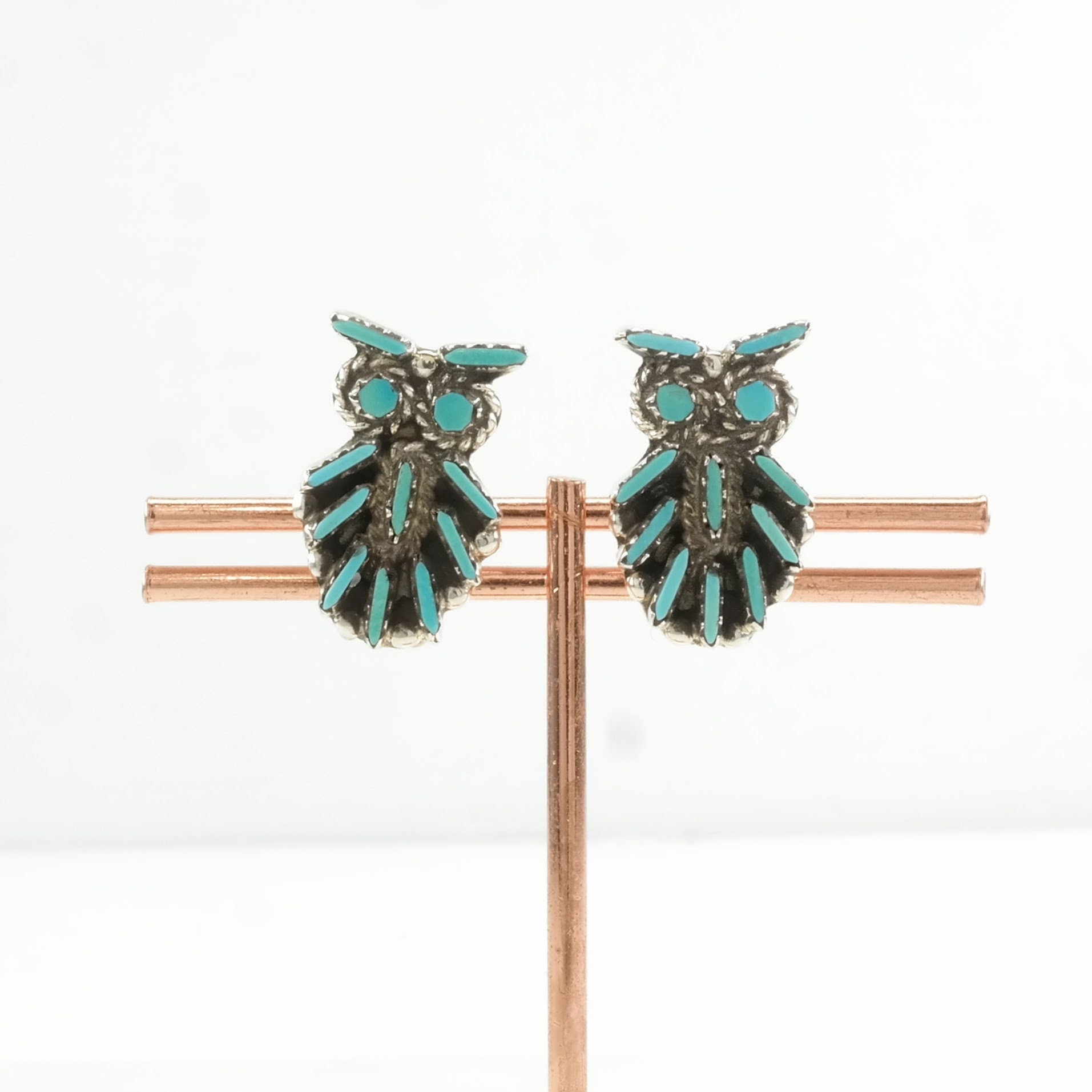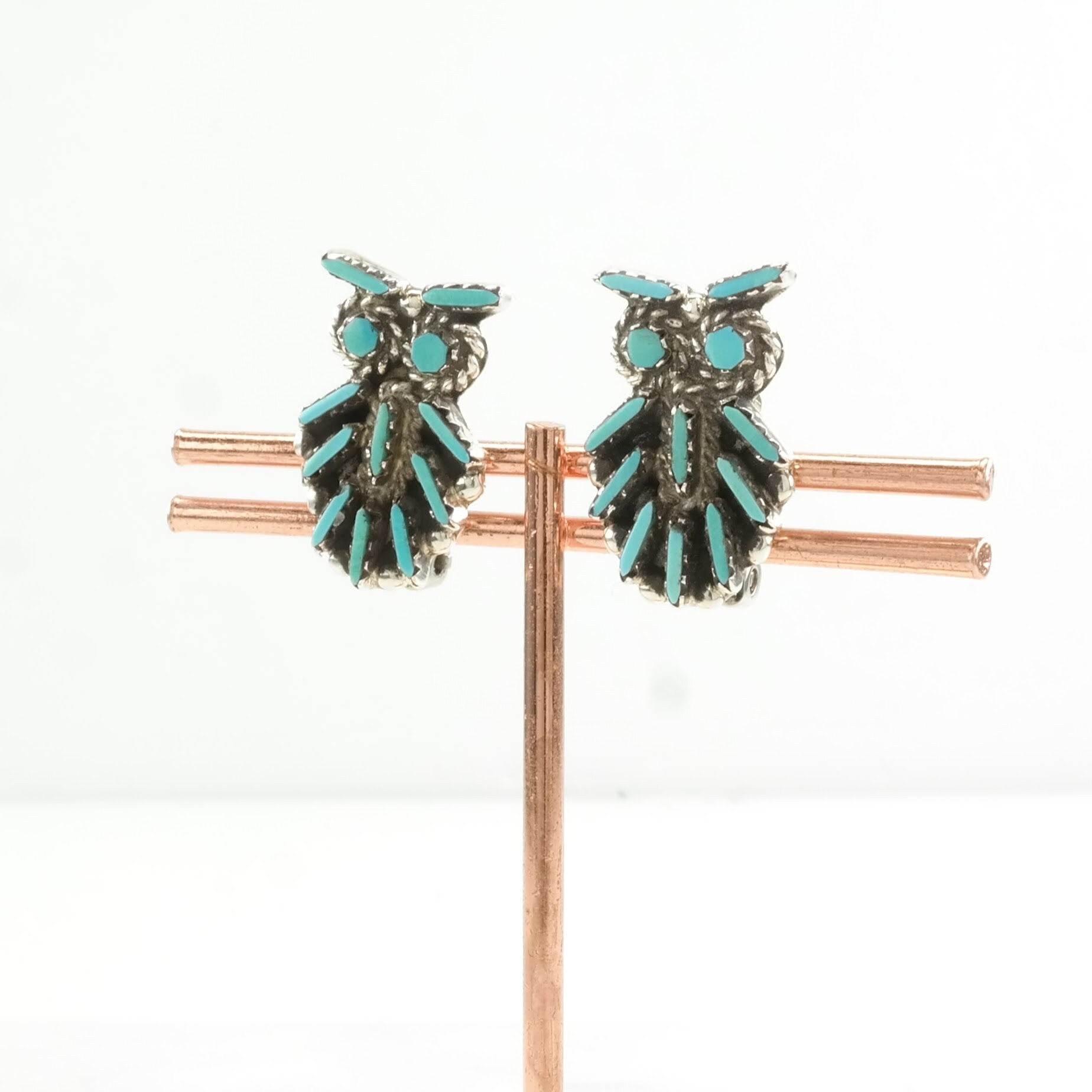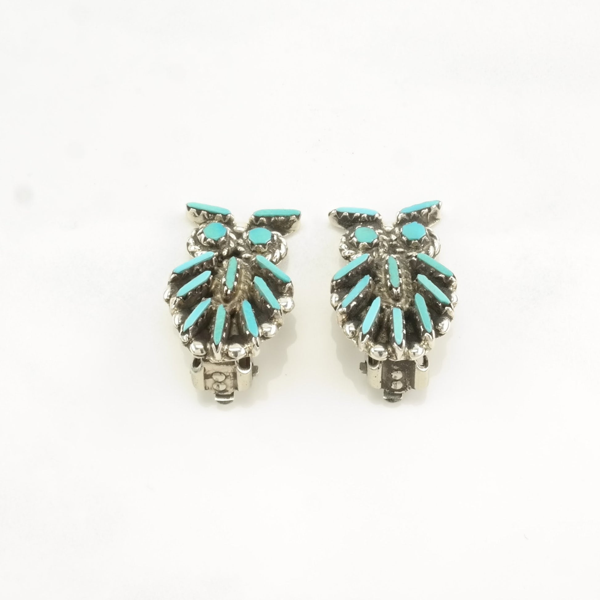 Vintage Sterling Silver Clip on Earrings Native American Blue Needle point Turquoise Owl