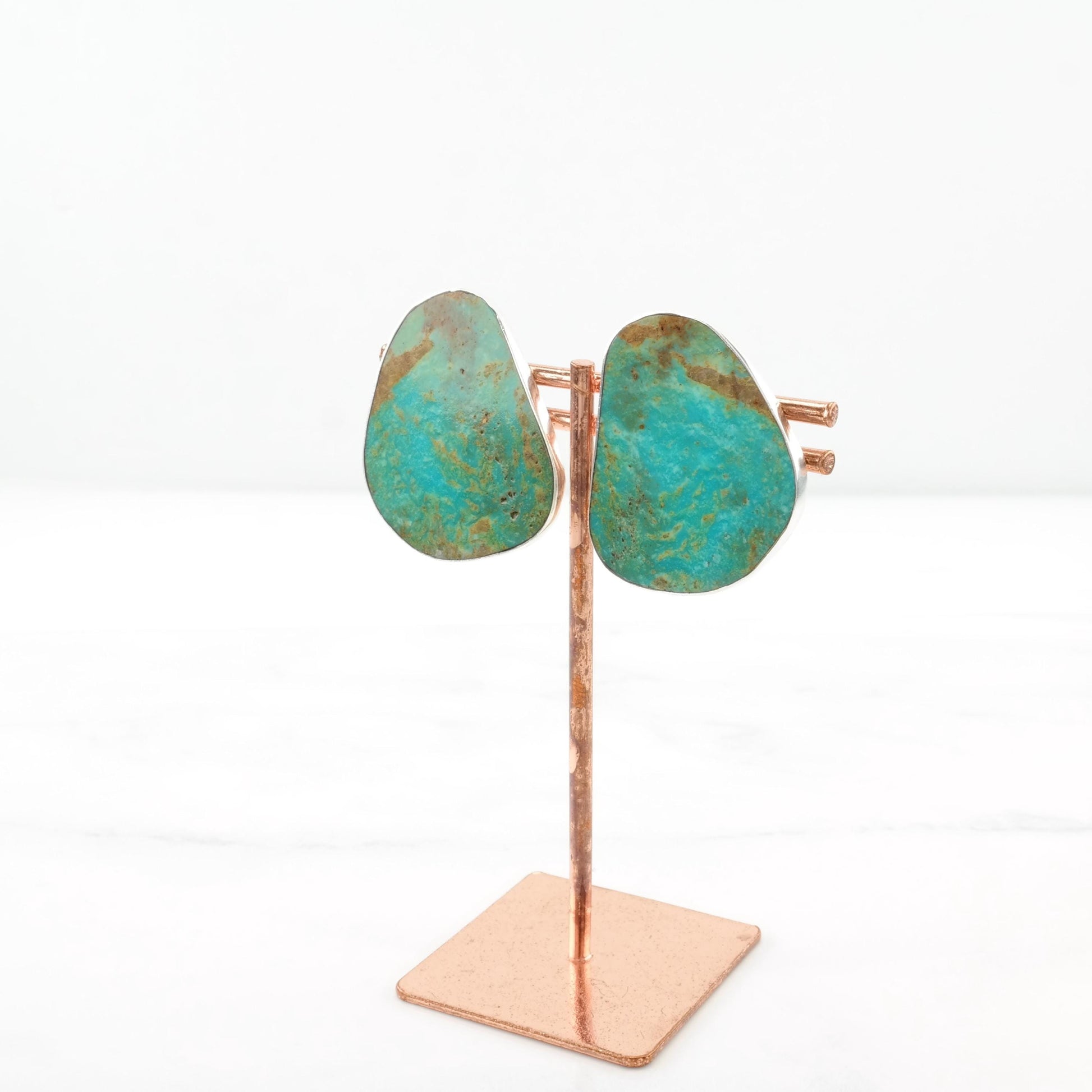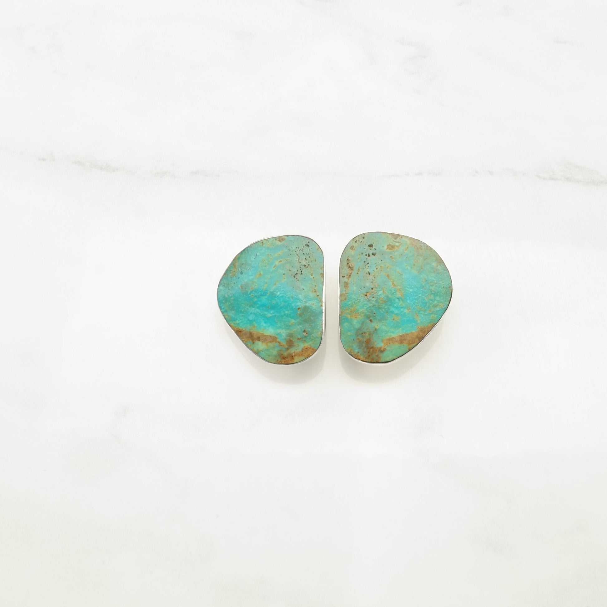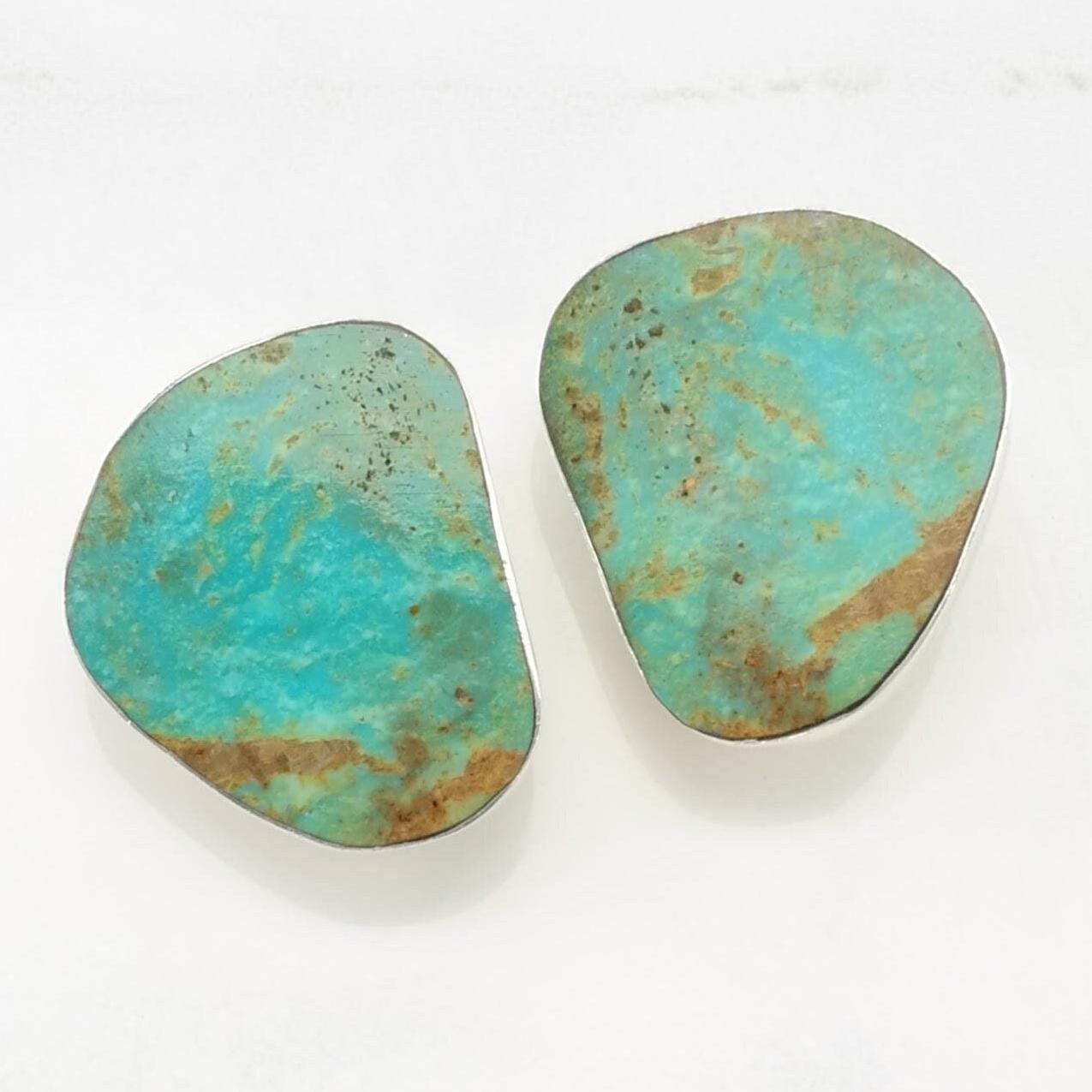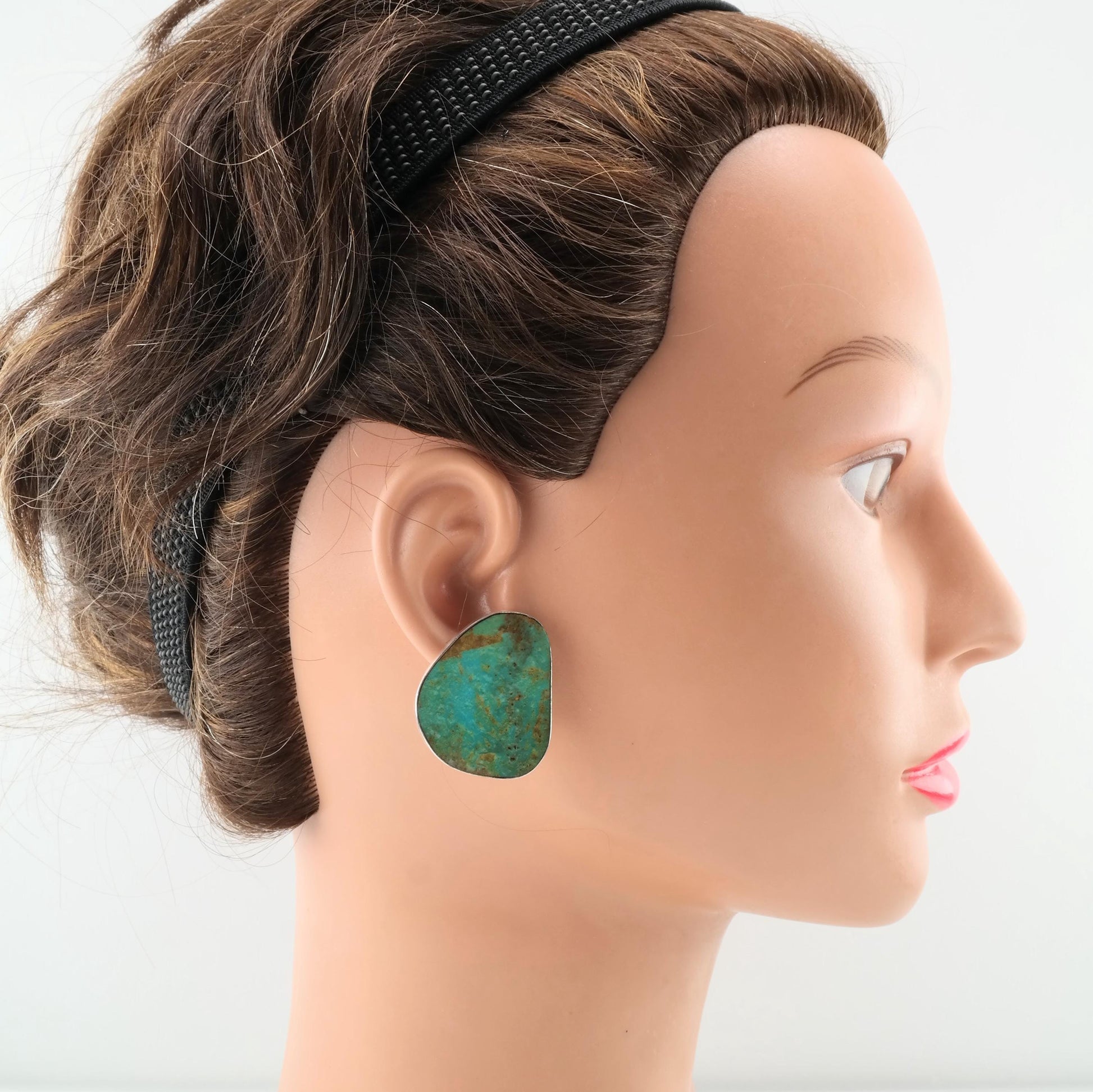 Vintage Sterling Silver Clip On Earrings Native American Blue Turquoise Large