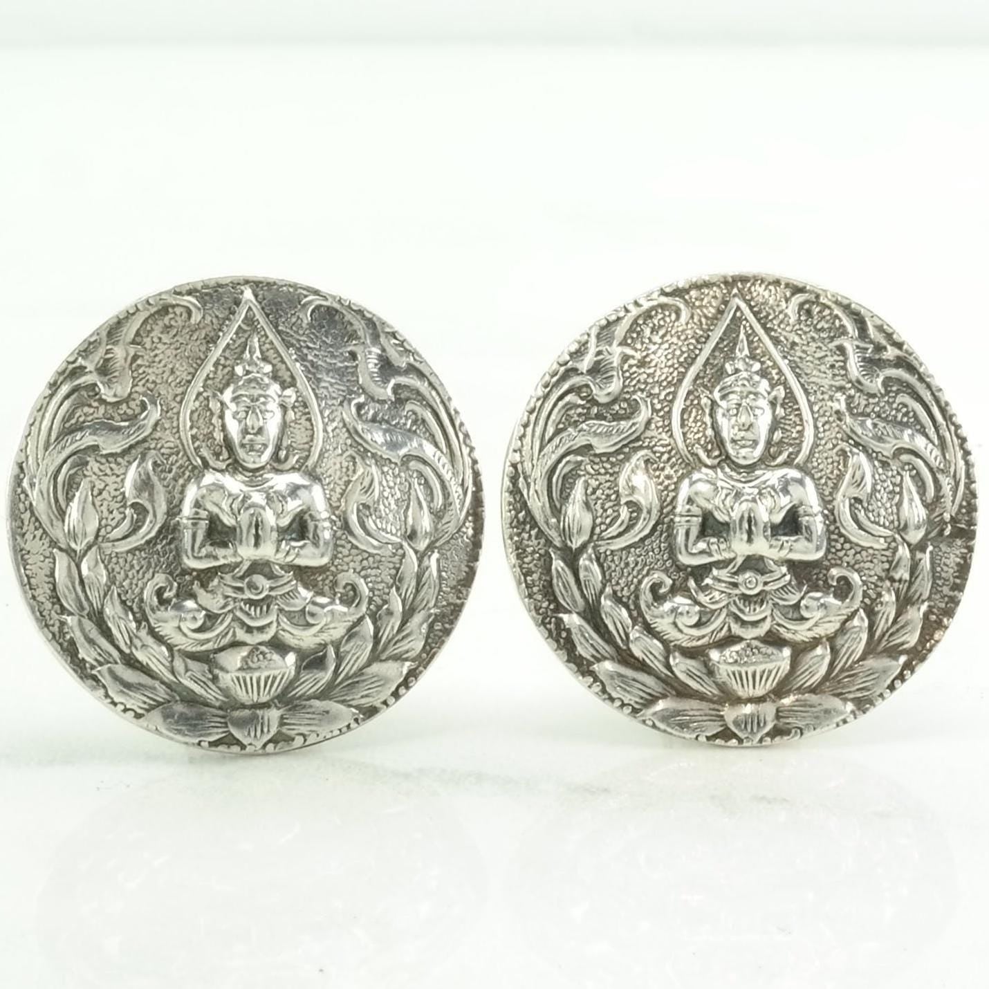 Vintage Sterling Silver Clip on Earrings Siam, God Ethnic