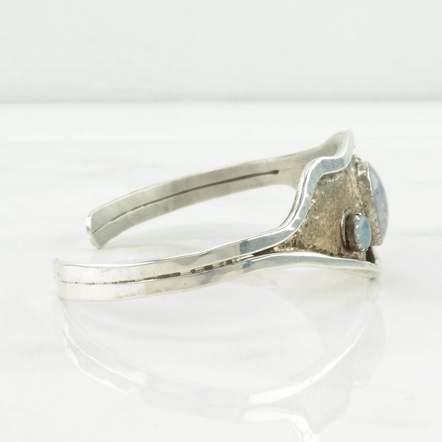 Vintage Sterling Silver Cuff Bracelet Purple Black Opal Triplet