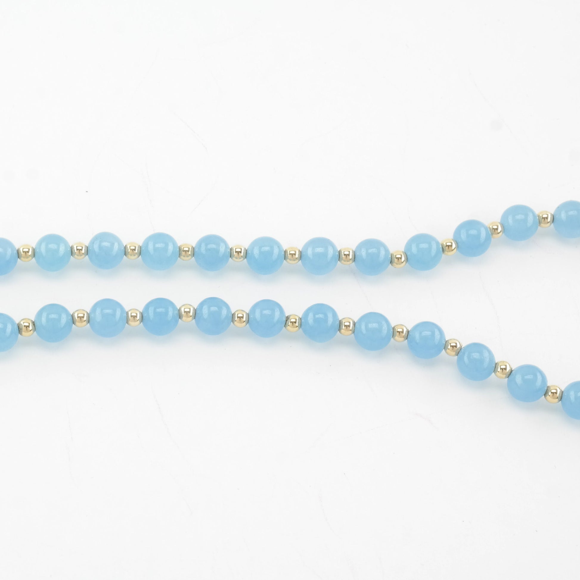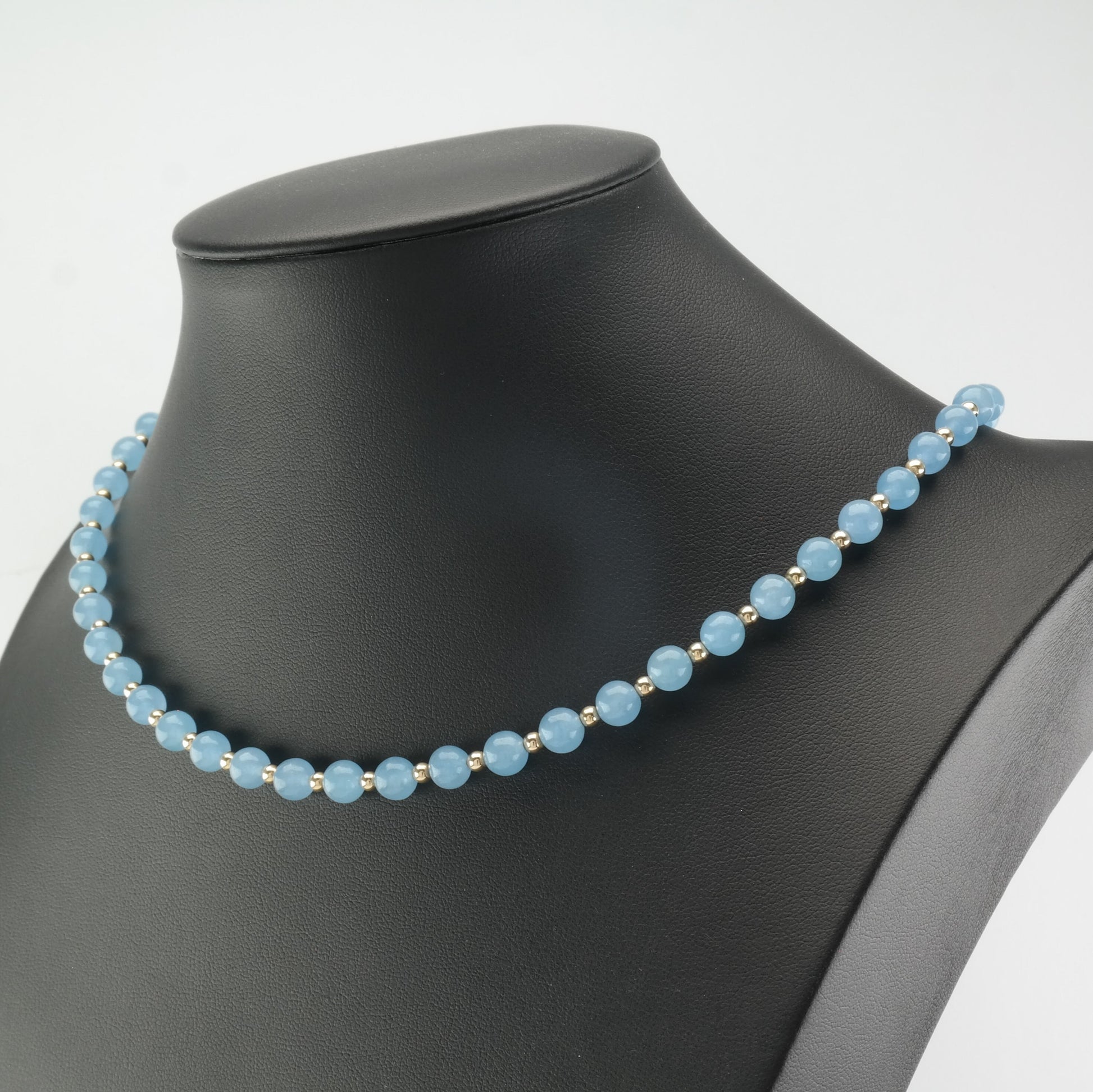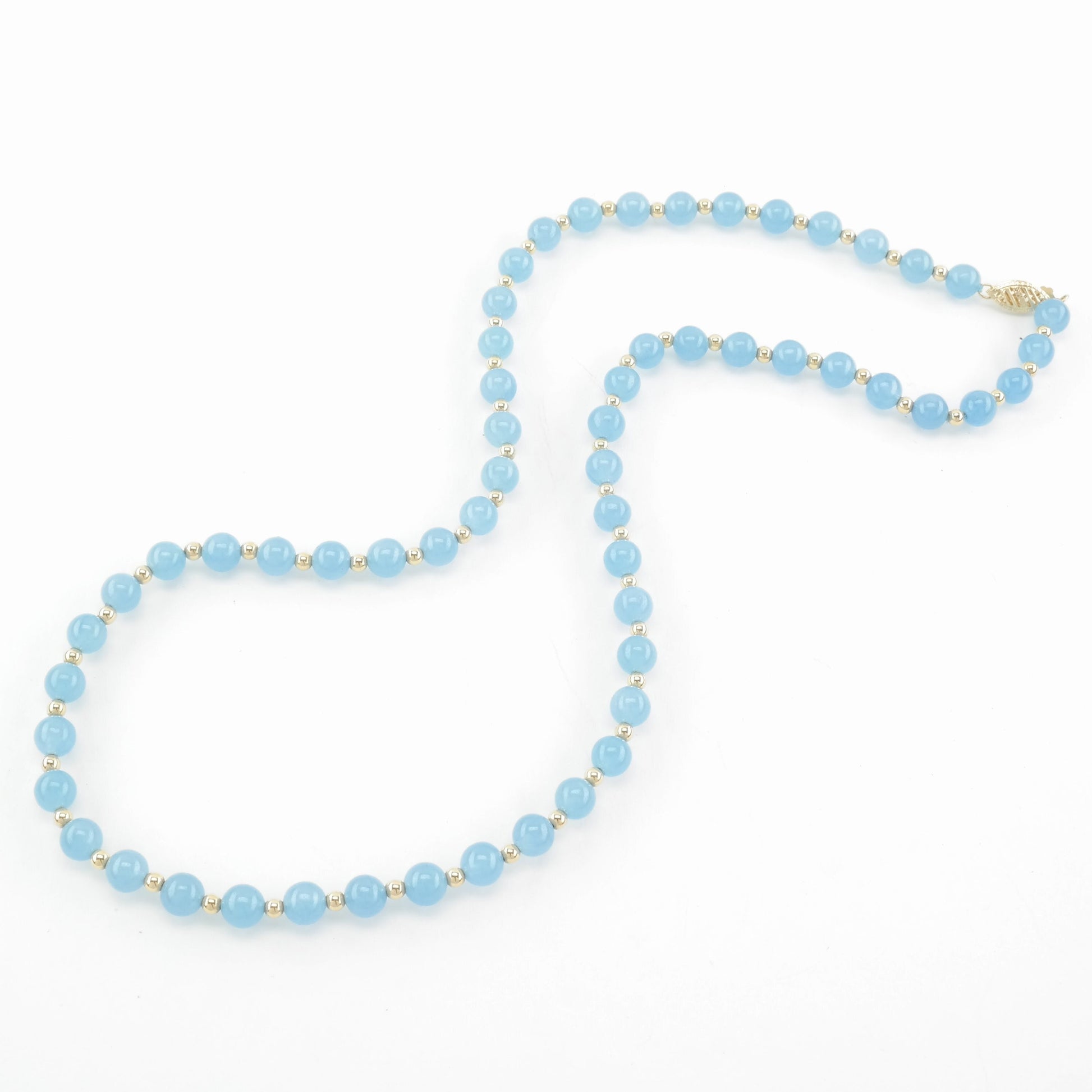 Vintage Blue Dyed Quartz, 6mm Bead, 14K Gold Necklace