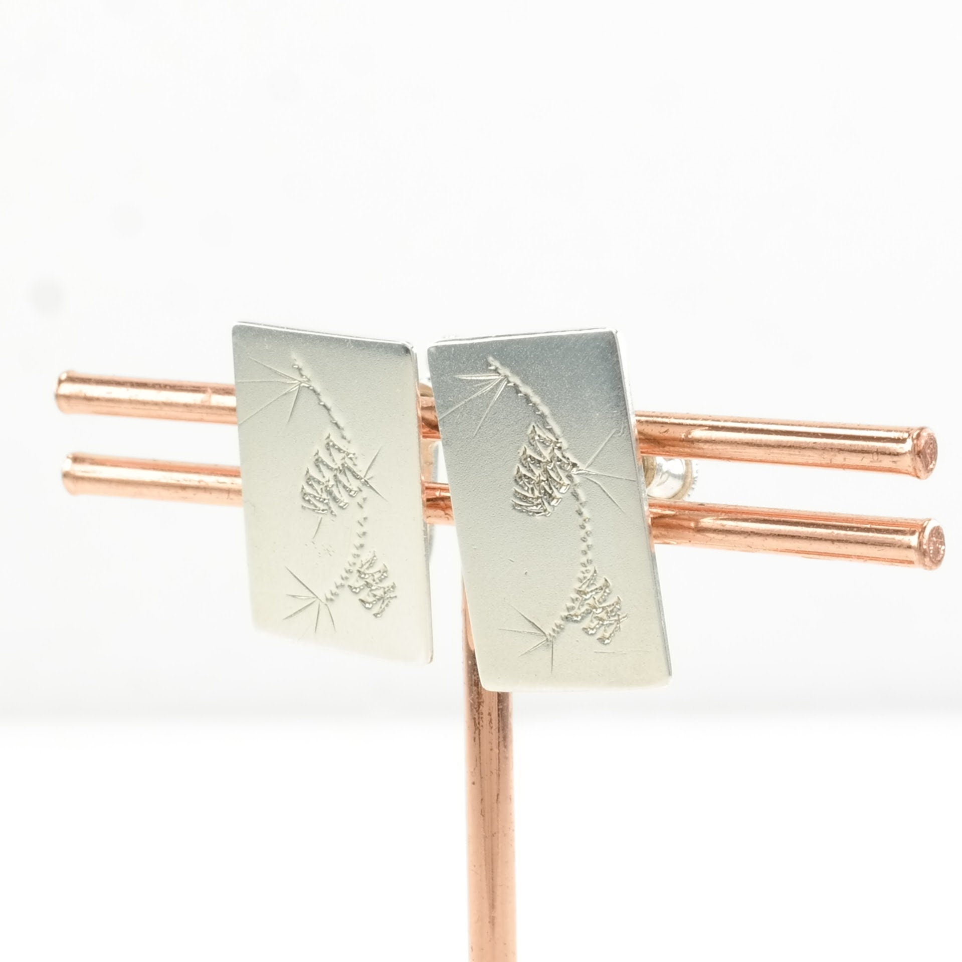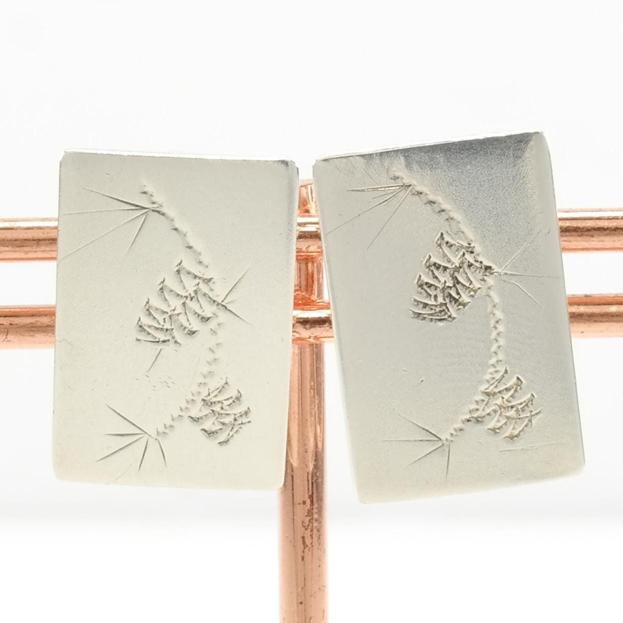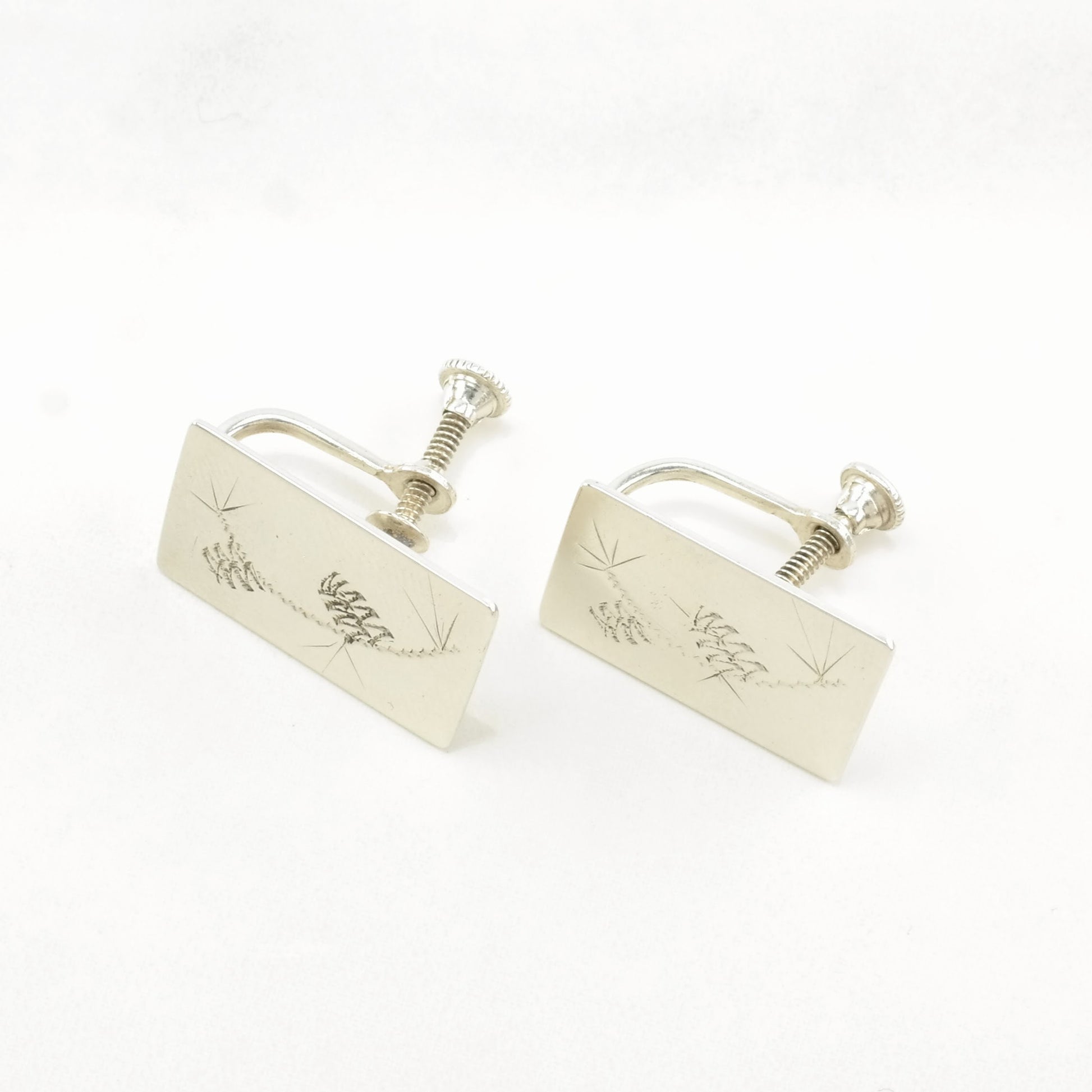Vintage Sterling Silver Engraved Earrings Screw Back